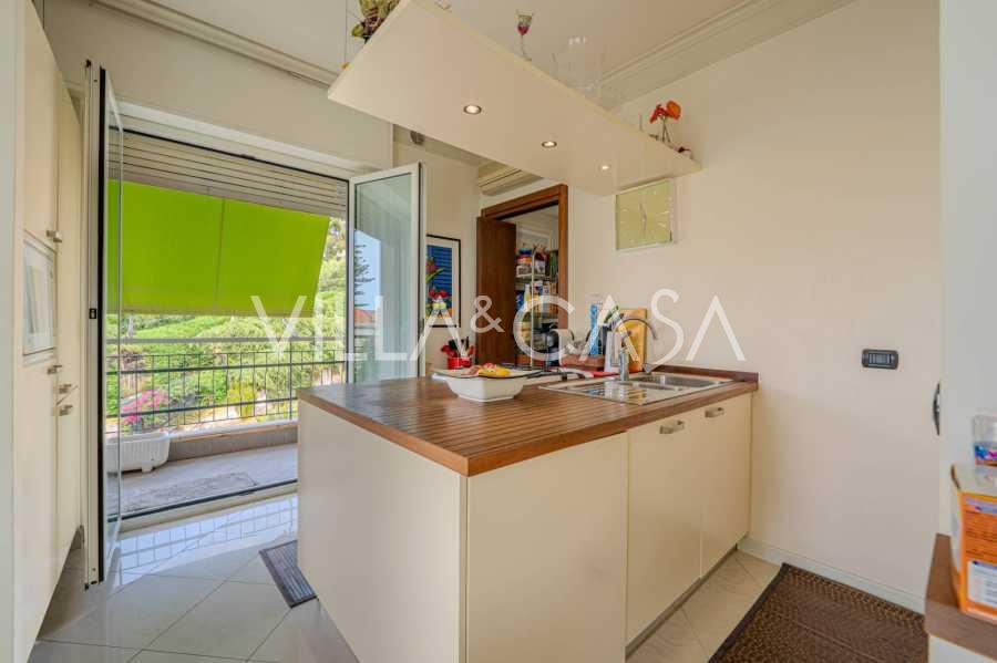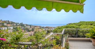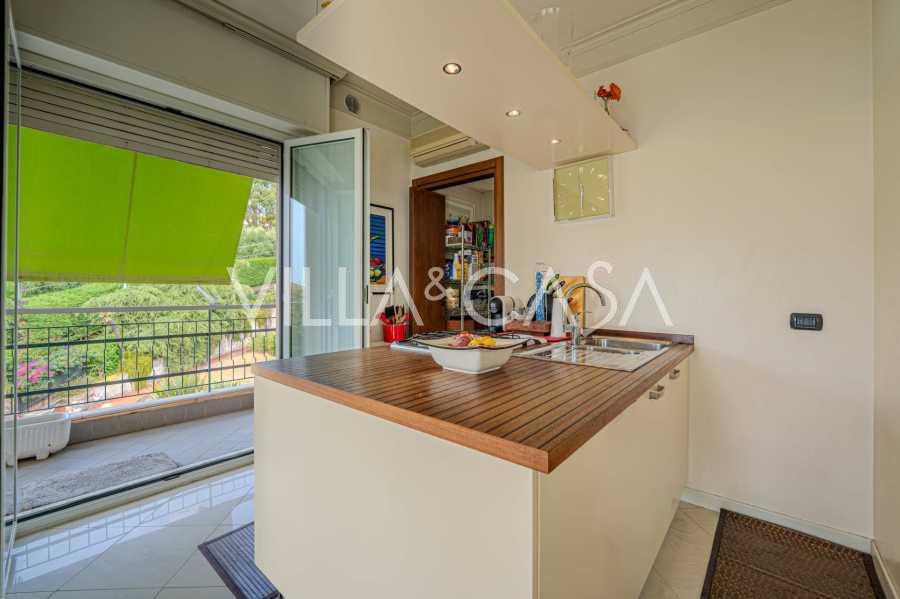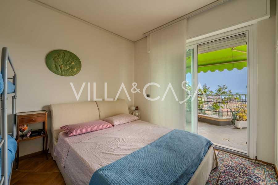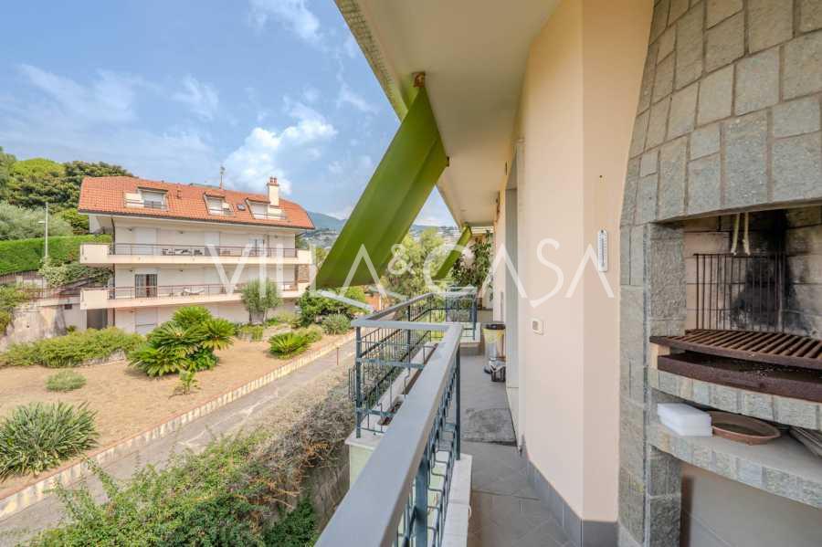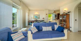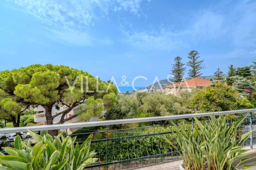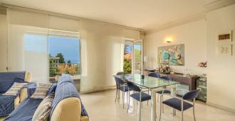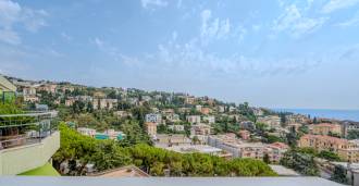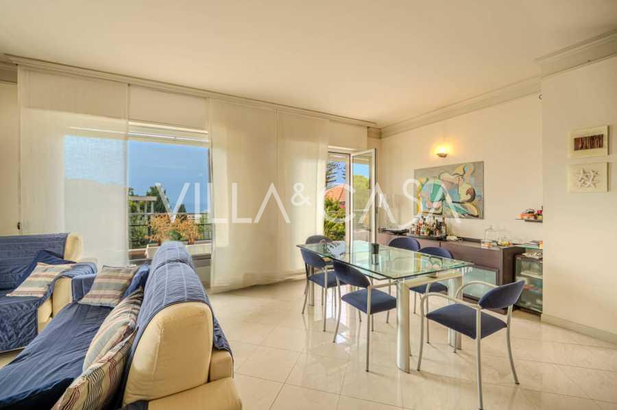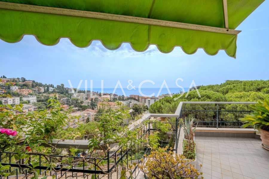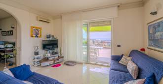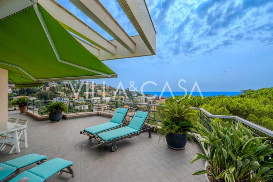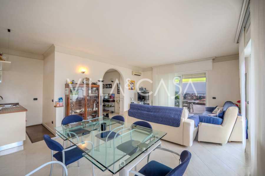 In vendita attico a Sanremo, a 10 minuti a piedi dal mare, con una superficie totale di circa 146 m². L'appartamento si trova al 5° piano di un edificio con ascensore e comprende: