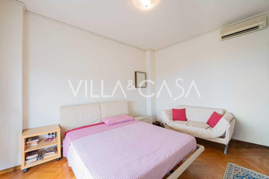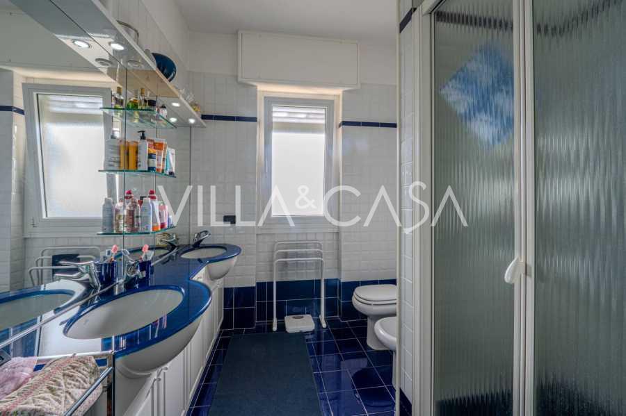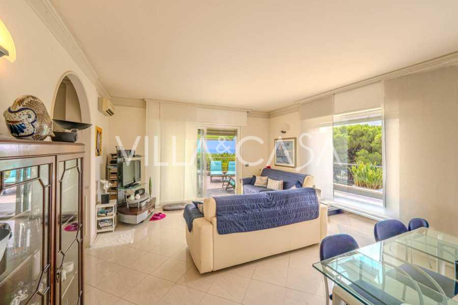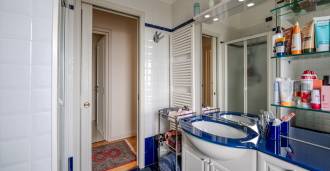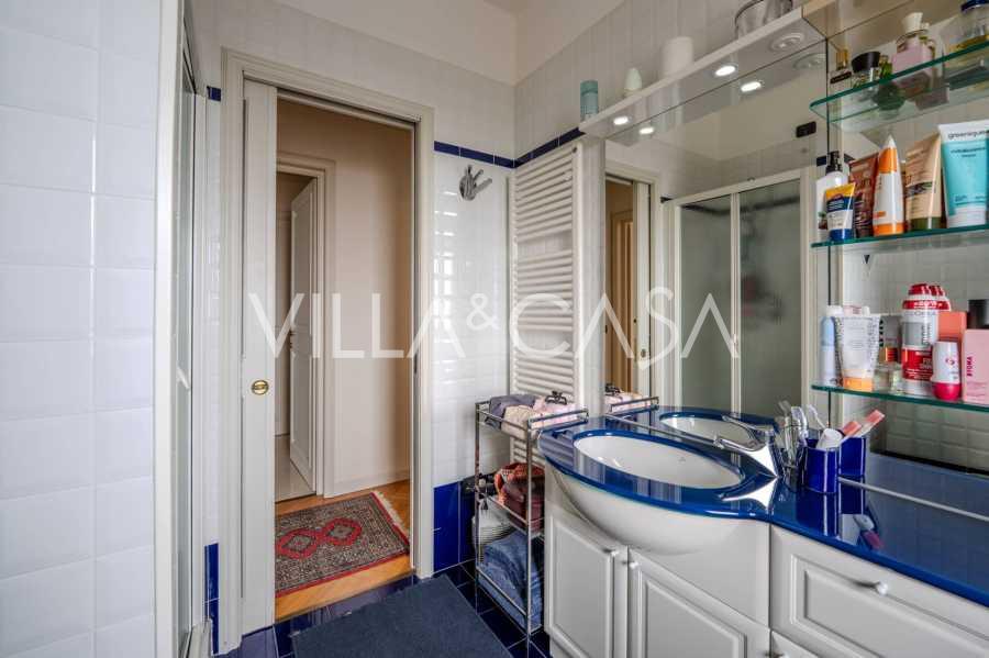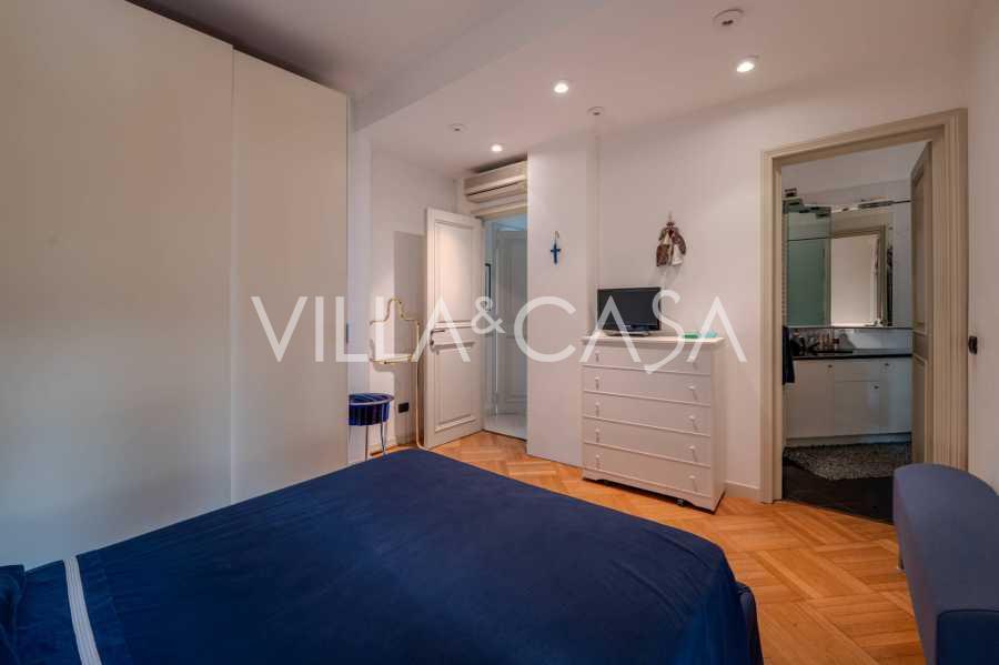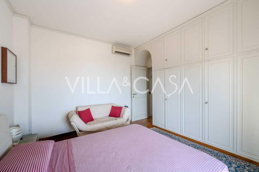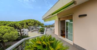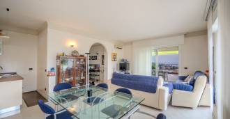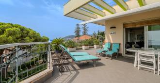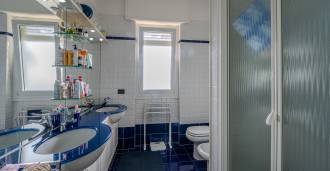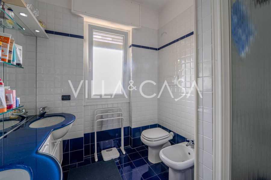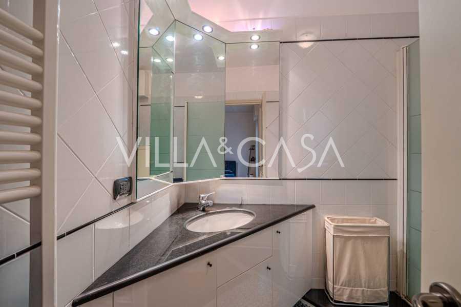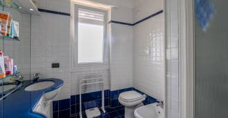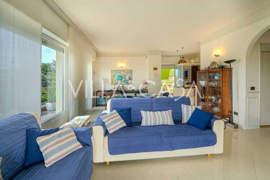 In vendita attico a Sanremo, a 10 minuti a piedi dal mare, con una superficie totale di circa 146 m². L'appartamento si trova al 5° piano di un edificio con ascensore e comprende: