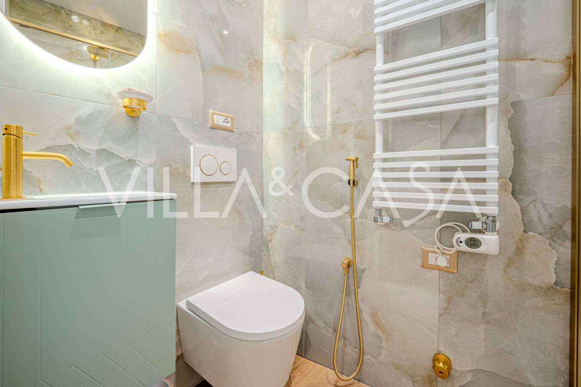 L'appartamento è completamente ristrutturato: sono stati sostituiti gli impianti idraulici ed elettrici. Gli interni sono dotati di nuovi arredi di design e elettrodomestici di fascia alta, aria condizionata in ogni stanza, oltre a un sistema di allarme e riscaldamento autonomo.