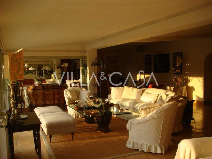 Ampio soggiorno con camini e accesso alla terrazza con vista sul golf club, sala da pranzo, tre camere da letto, tre bagni con vasca e doccia, cucina completamente attrezzata con accesso al cortile interno, lavanderia.