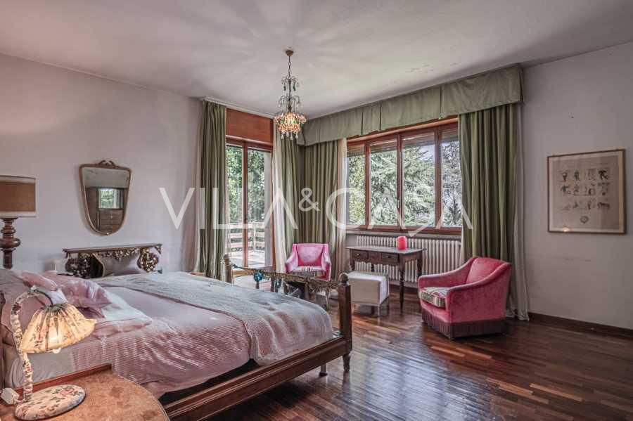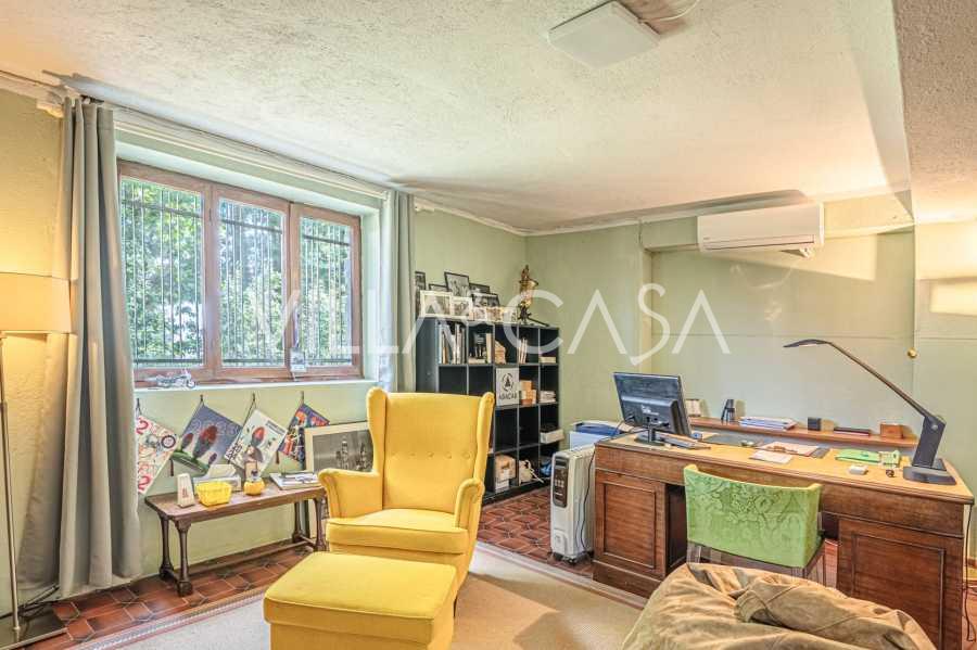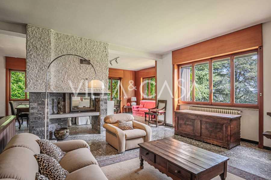 Costruita nei primi anni '60, la villa è immersa nel verde di un parco privato di circa 4 ettari, offrendo completa privacy e tranquillità. Allo stesso tempo, la sua posizione è molto conveniente: a solo un chilometro si trova l'uscita dell'autostrada, che garantisce un rapido accesso a Milano e agli aeroporti, mentre il pittoresco lungolago di Arona e il lago stesso sono a soli 10 minuti di auto.