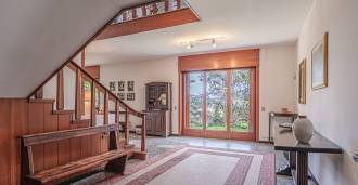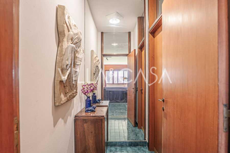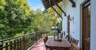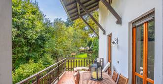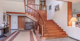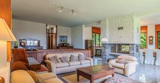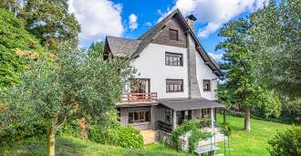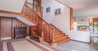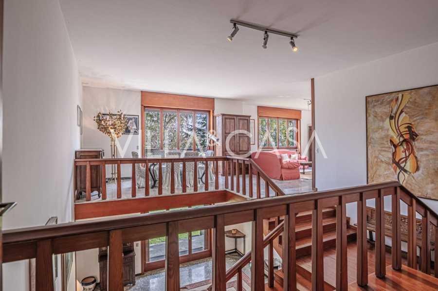 La villa è in ottime condizioni, costruita con materiali di alta qualità e presenta interni spaziosi, luminosi e armoniosi. Un'imponente scala in legno, degna delle residenze hollywoodiane, accoglie gli ospiti in un grande atrio. Magnifici saloni e una sala da pranzo con finestre panoramiche offrono una vista sui paesaggi del proprio parco, creando un'atmosfera di raffinata intimità e nobile tranquillità.