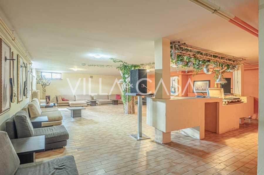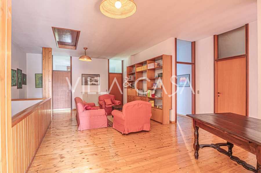 La villa principale ha una superficie totale di 1.200 m², distribuita su tre piani e un livello seminterrato: