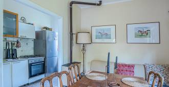 - Piano terra (alto): ampio ingresso, soggiorno con camino, secondo soggiorno con camino e zona pranzo, cucina, bagno per gli ospiti e lavanderia.