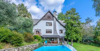Questa raffinata residenza in tradizionale stile Tudor inglese comprende una magnifica villa principale, un edificio separato per la sicurezza e il personale, oltre a un ampio spazio per garage/magazzino (ex scuderia) di circa 400 m².