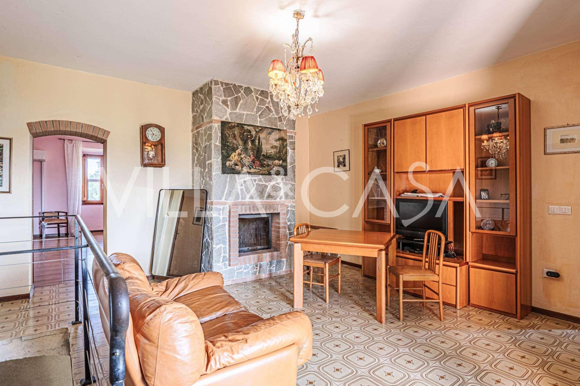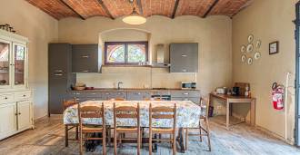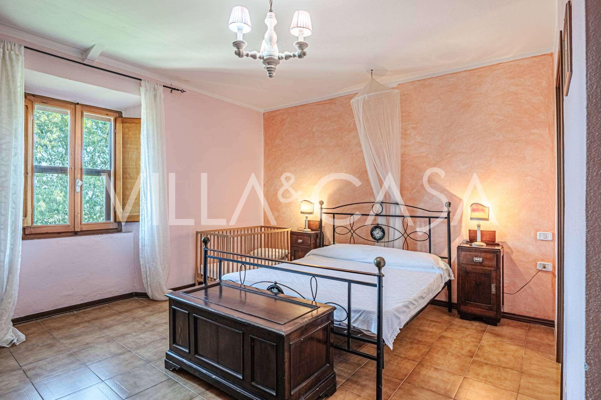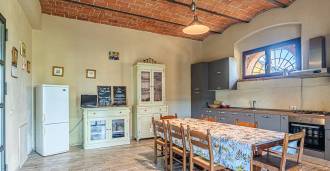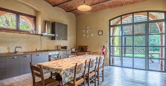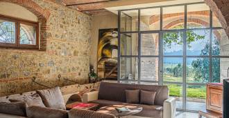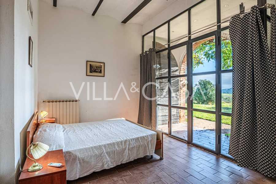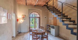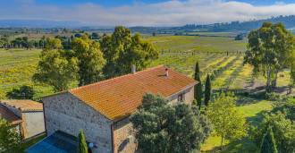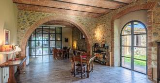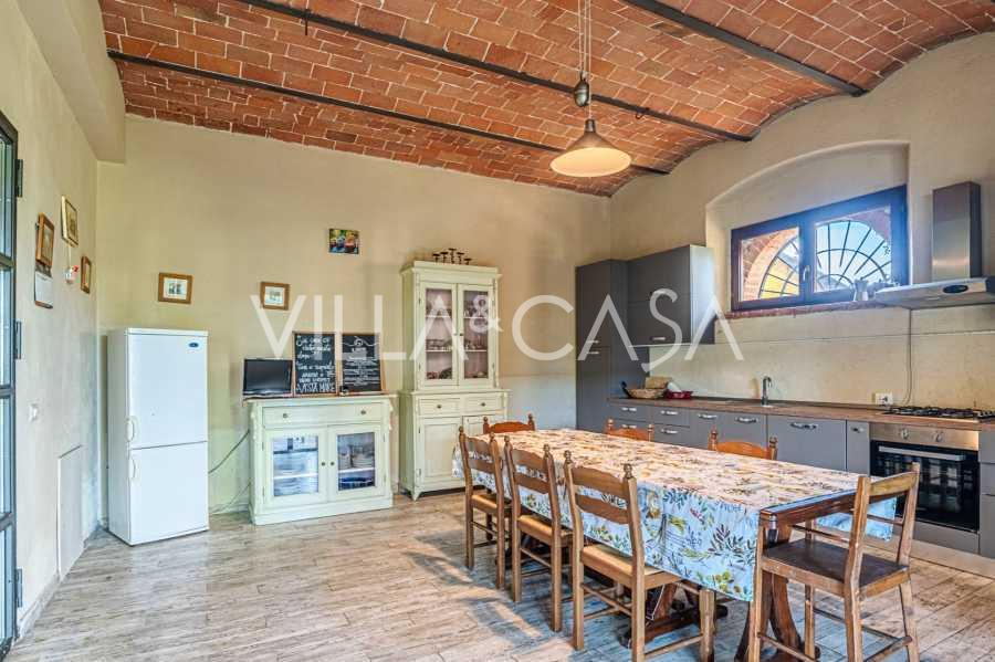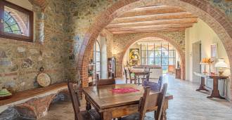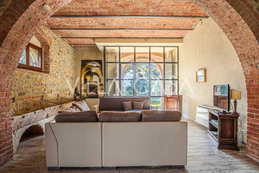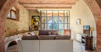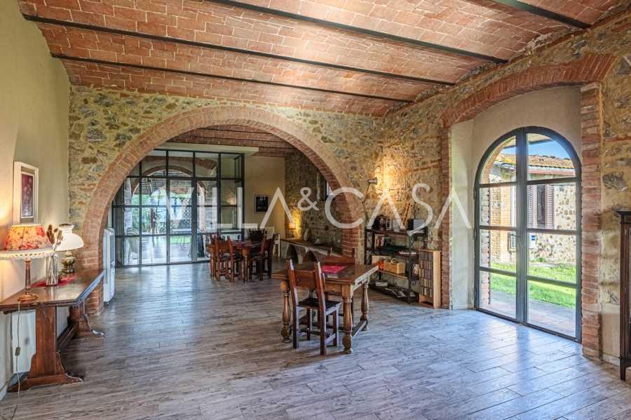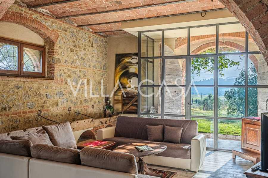 L'interno, con una superficie di 600 m2, è arredato con gusto raffinato. Al piano terra si trovano un ampio soggiorno con camino, una grande cucina e una camera da letto con bagno. Il secondo piano include un accogliente soggiorno e cinque eleganti camere da letto con quattro bagni, con vista sulle colline circostanti e sui vigneti.