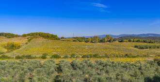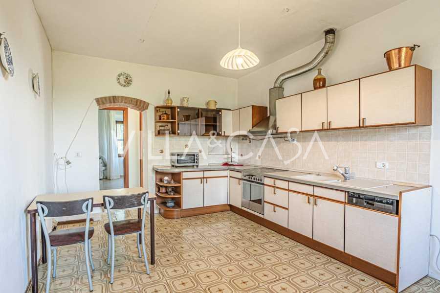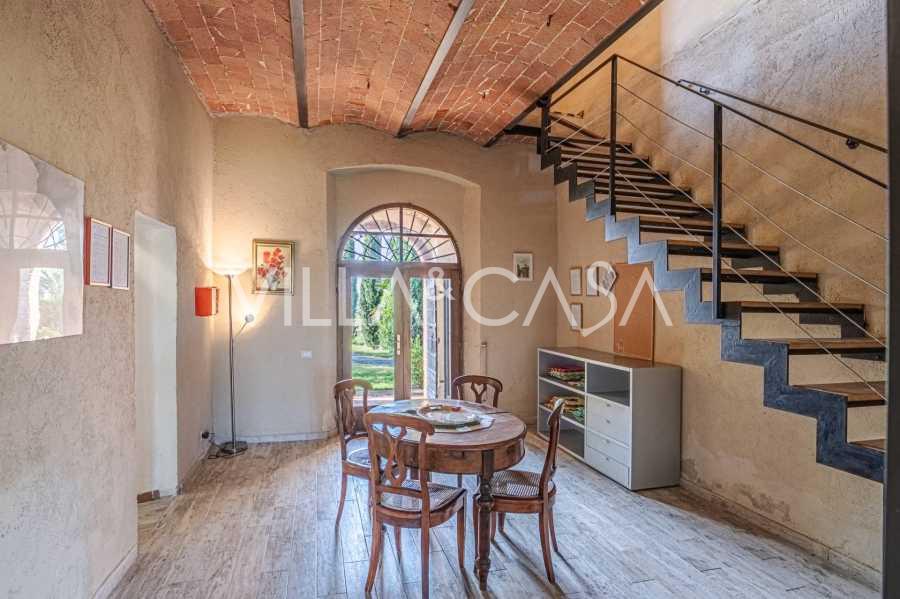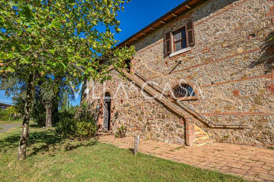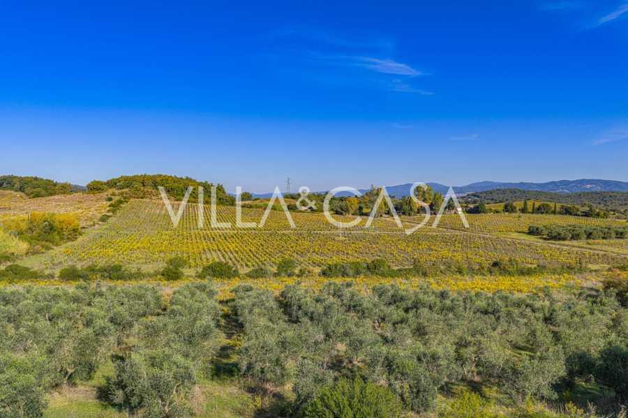 Ai piedi della casa, nel silenzio della natura, si trova una magnifica piscina con zona solarium, circondata da siepi vive e aiuole fiorite. La proprietà comprende anche due ettari di vigneti, un uliveto e campi fertili, creando un'atmosfera toscana unica.