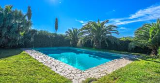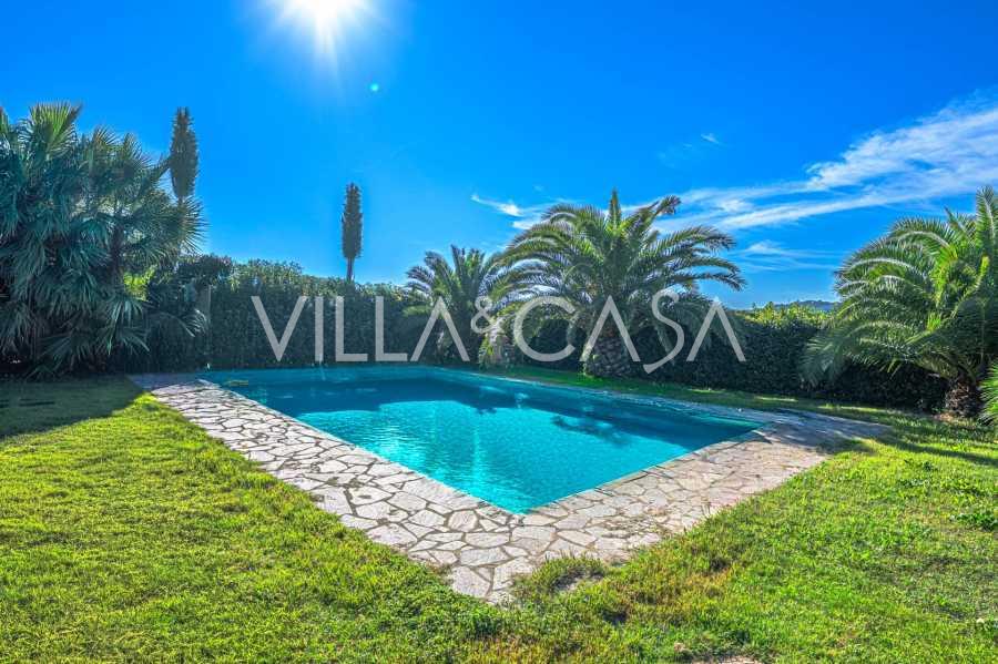 All'esterno, tra prati curati, sono allestite zone relax appartate con eleganti mobili da giardino e un'area barbecue, ideale per cene all'aperto e incontri serali. Dal giardino partono sentieri pittoreschi che conducono ai paesaggi mediterranei, invitando a passeggiate. Gli amanti dello sport apprezzeranno la vicinanza di due prestigiosi golf club, raggiungibili in pochi minuti di auto.