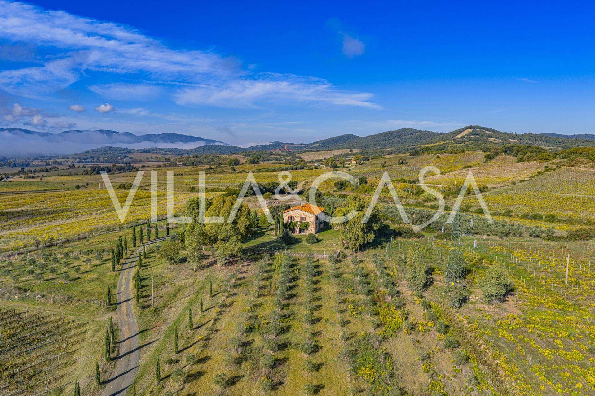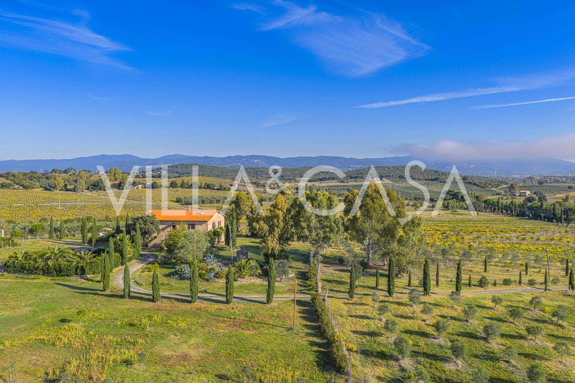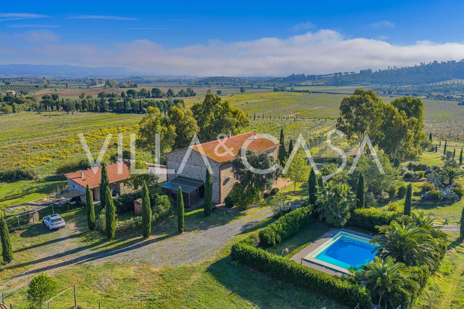 Situata a soli venti chilometri dalle spiagge di Castiglione della Pescaia e Punta Ala, oltre che dal golfo di Follonica, questa proprietà si erge su un'altura con vista sul mare oltre Marina di Grosseto, fino al parco naturale dell'Uccellina. La fresca brezza marina assicura un clima ideale tutto l'anno.