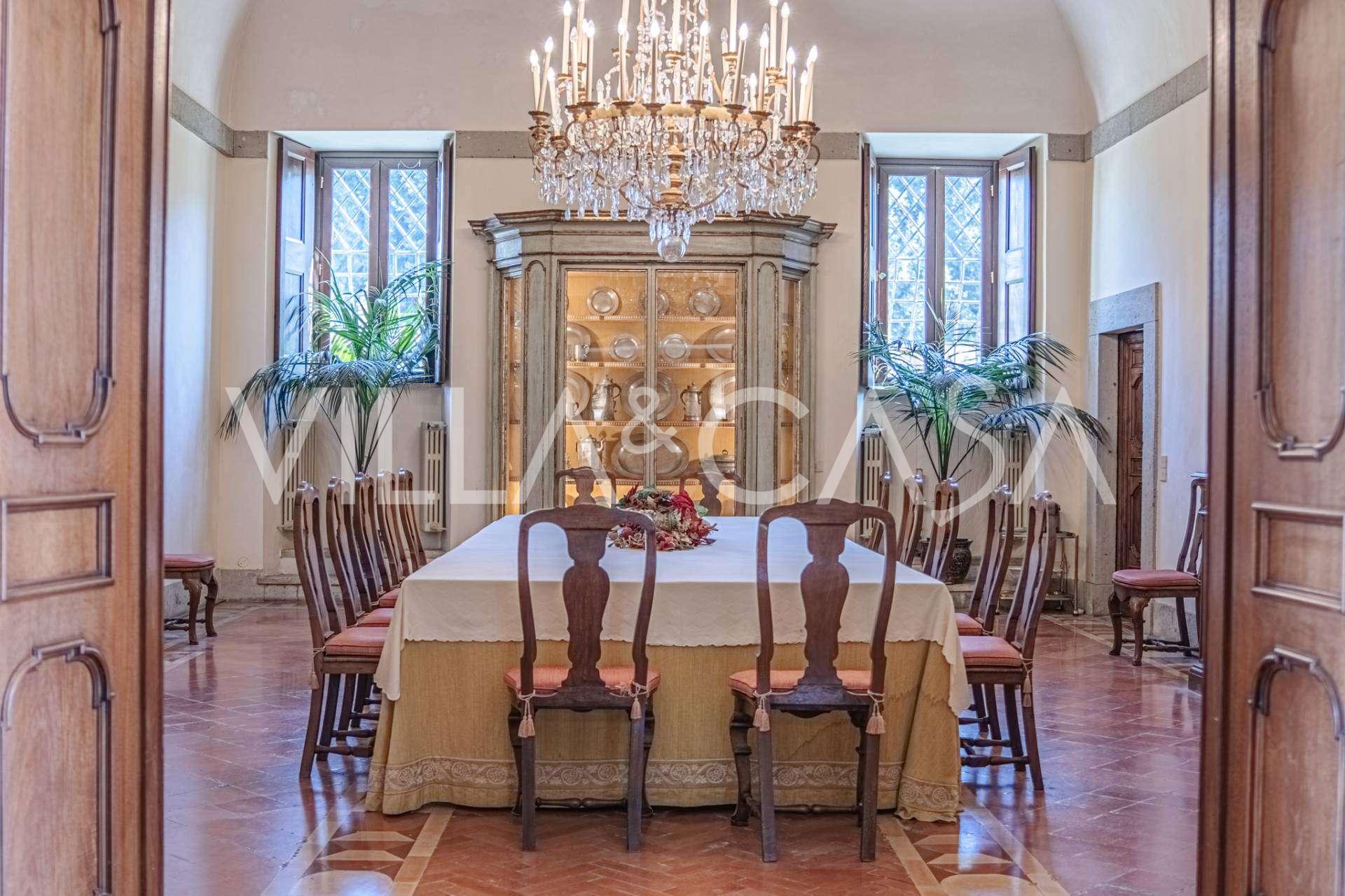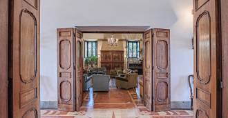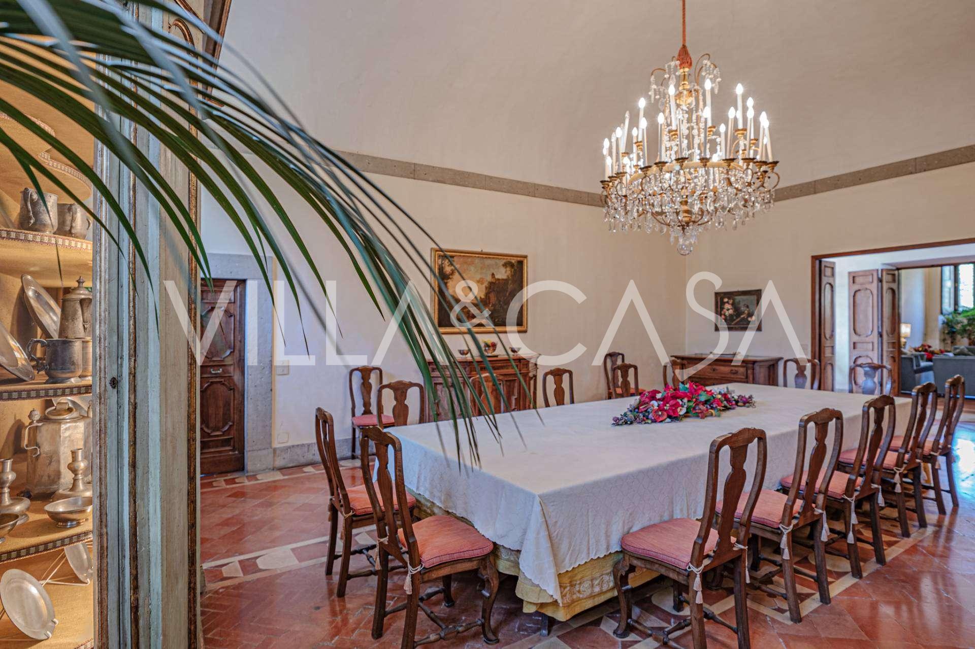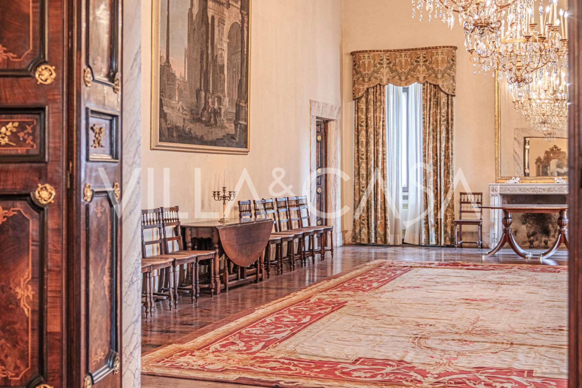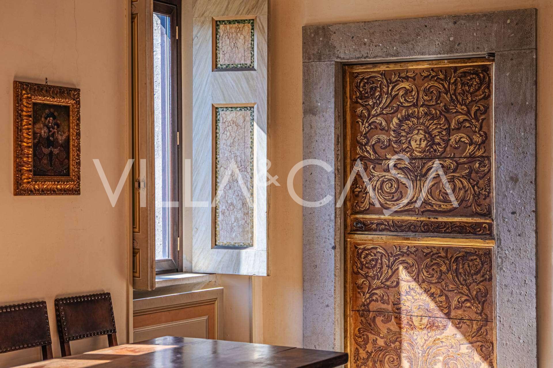 Al piano terra si trovano ampi saloni per ricevimenti, uno studio, una camera da letto, tre bagni, una sala da pranzo raffinata e una grande cucina che si estende al livello inferiore, dove si trova una sala banchetti ideale per eventi solenni.
