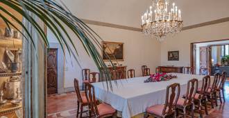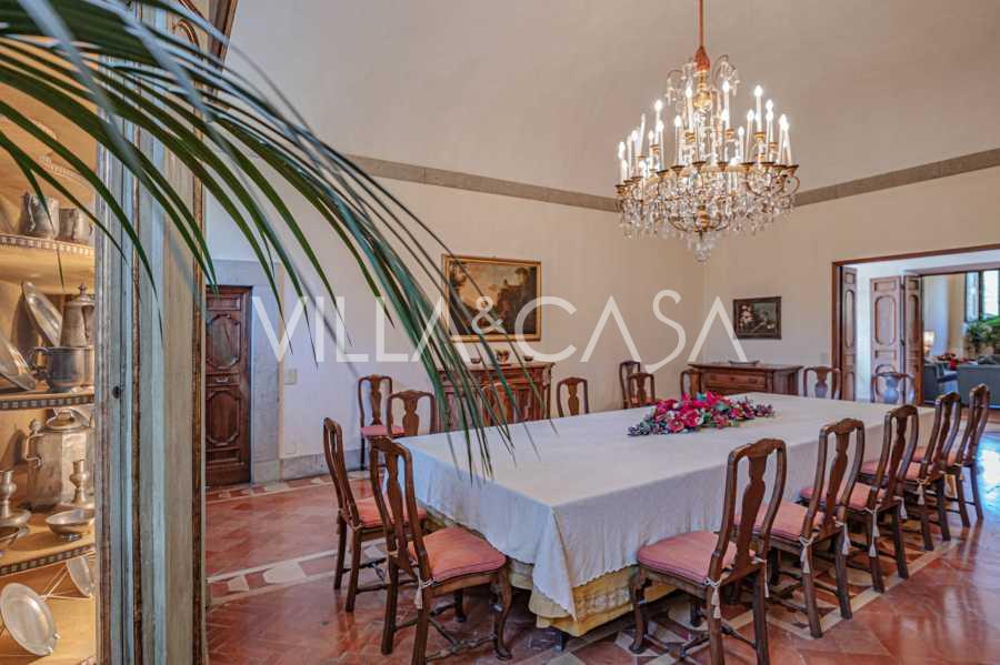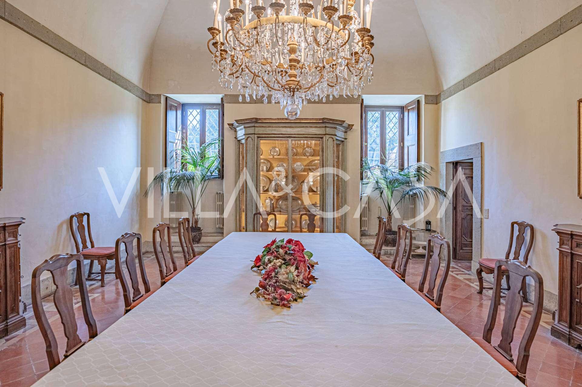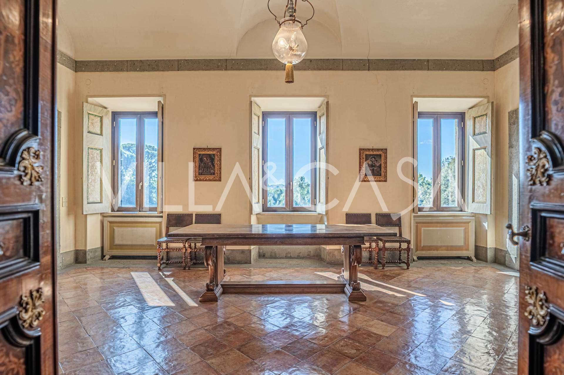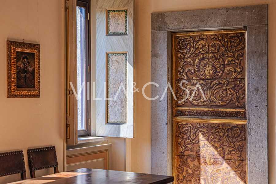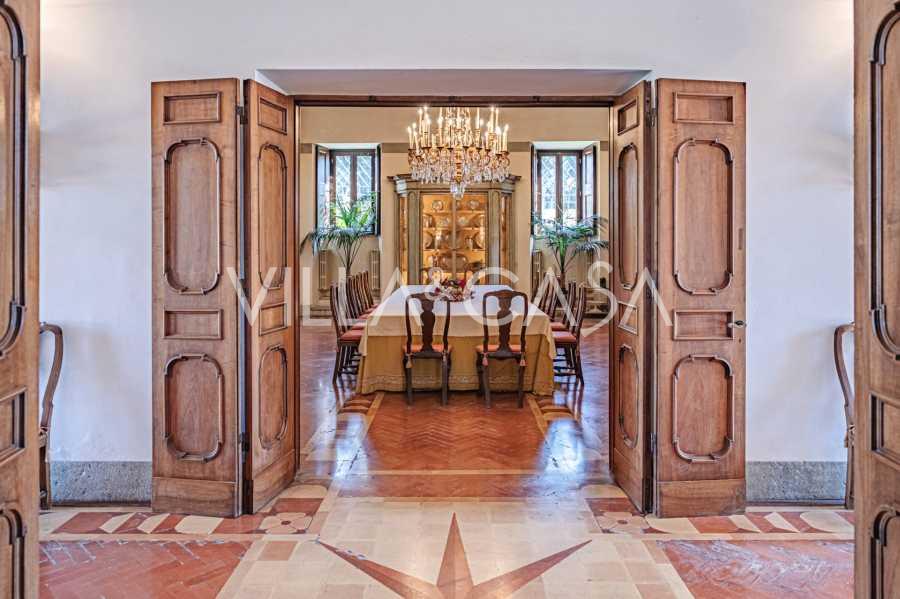 Al piano terra si trovano ampi saloni per ricevimenti, uno studio, una camera da letto, tre bagni, una sala da pranzo raffinata e una grande cucina che si estende al livello inferiore, dove si trova una sala banchetti ideale per eventi solenni.