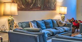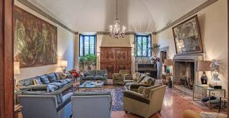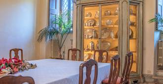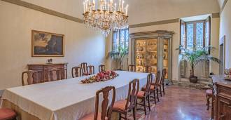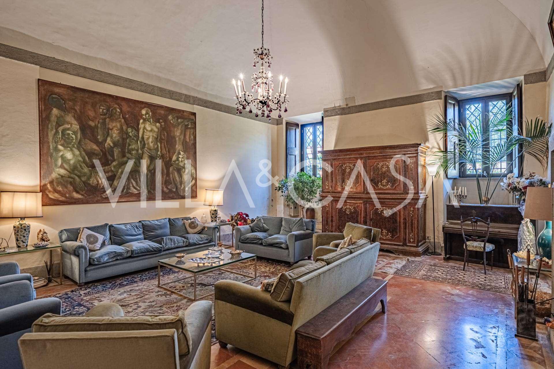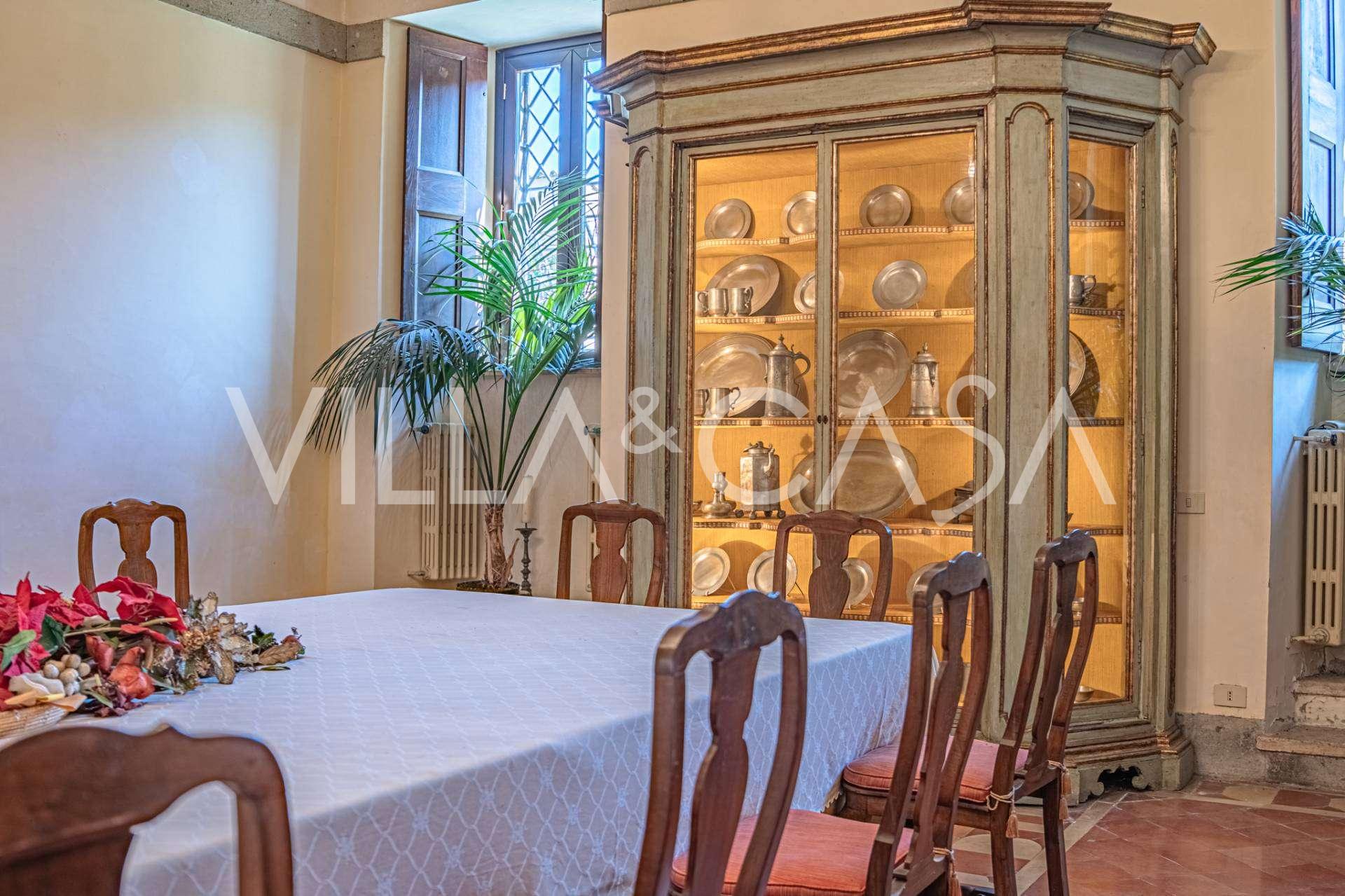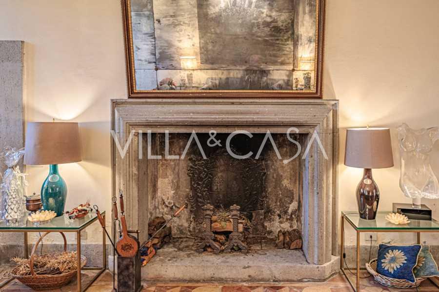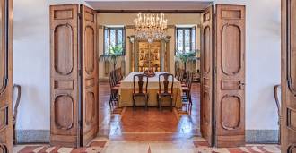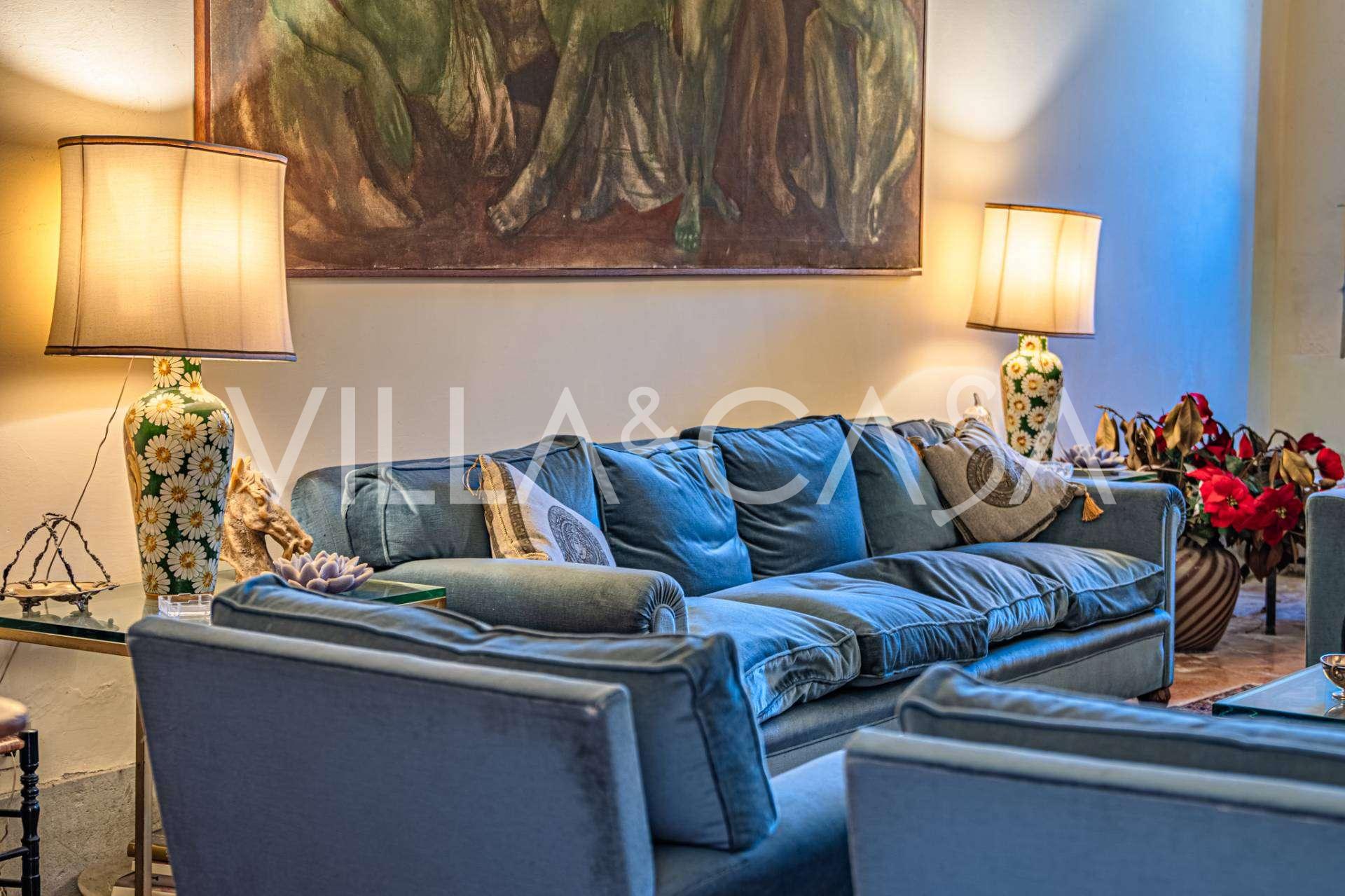 Al piano terra si trovano ampi saloni per ricevimenti, uno studio, una camera da letto, tre bagni, una sala da pranzo raffinata e una grande cucina che si estende al livello inferiore, dove si trova una sala banchetti ideale per eventi solenni.