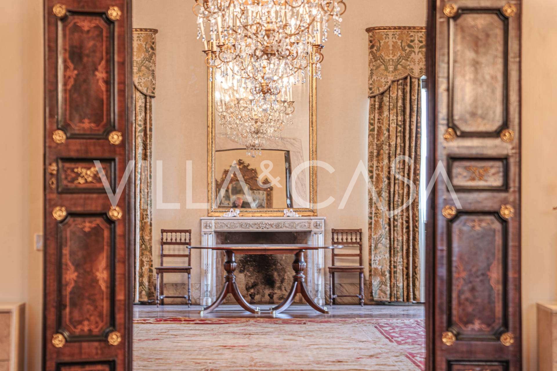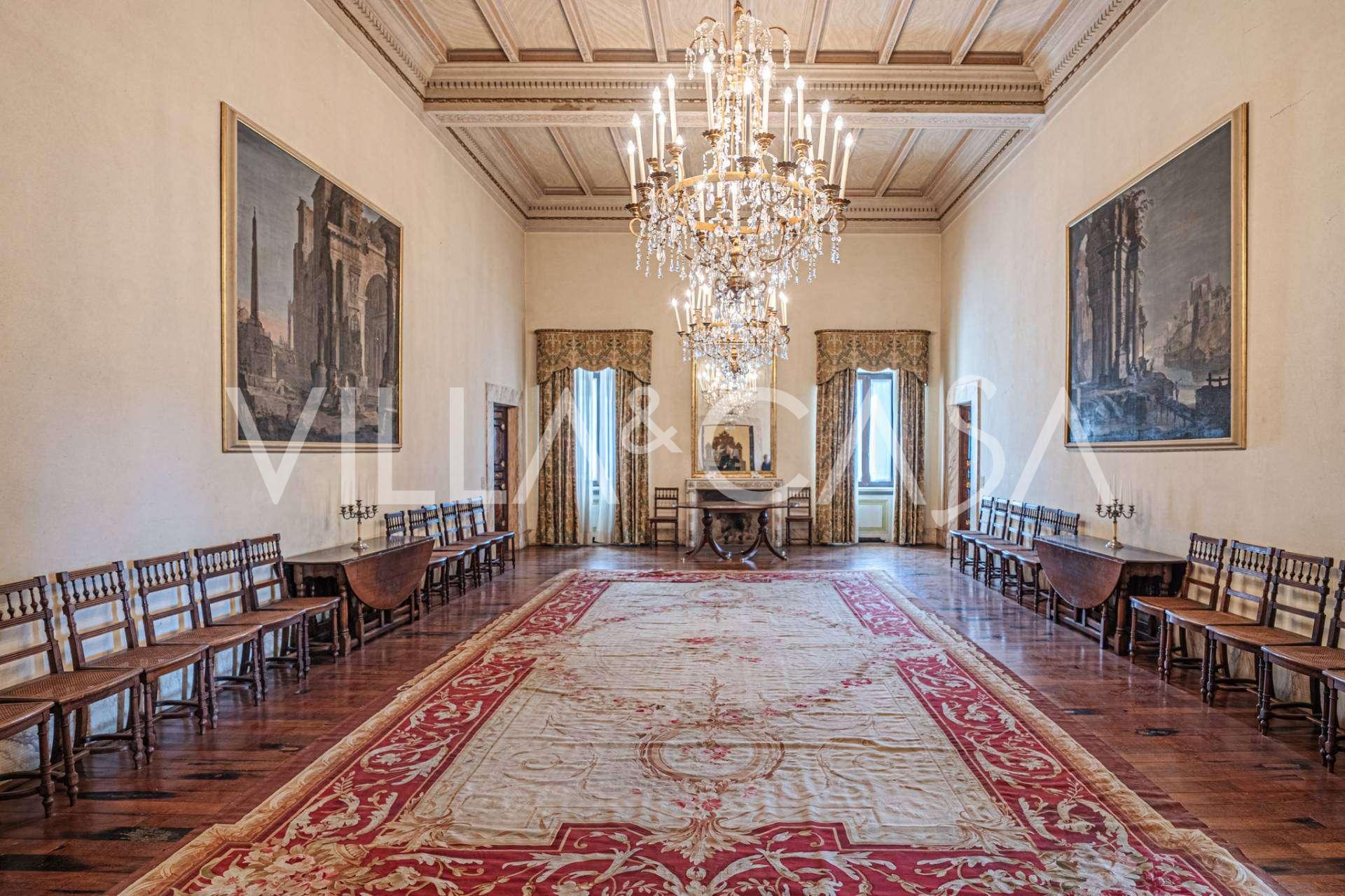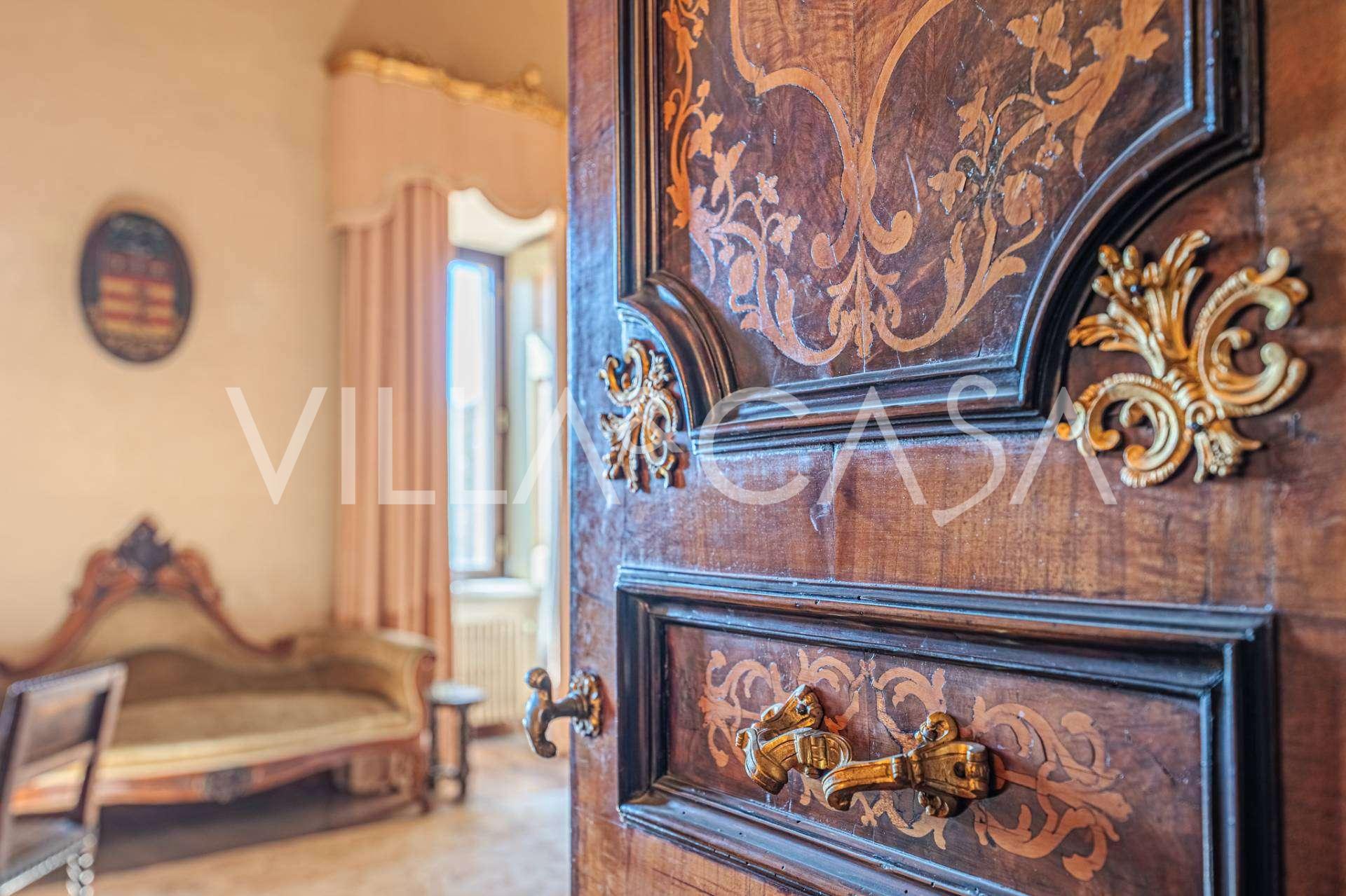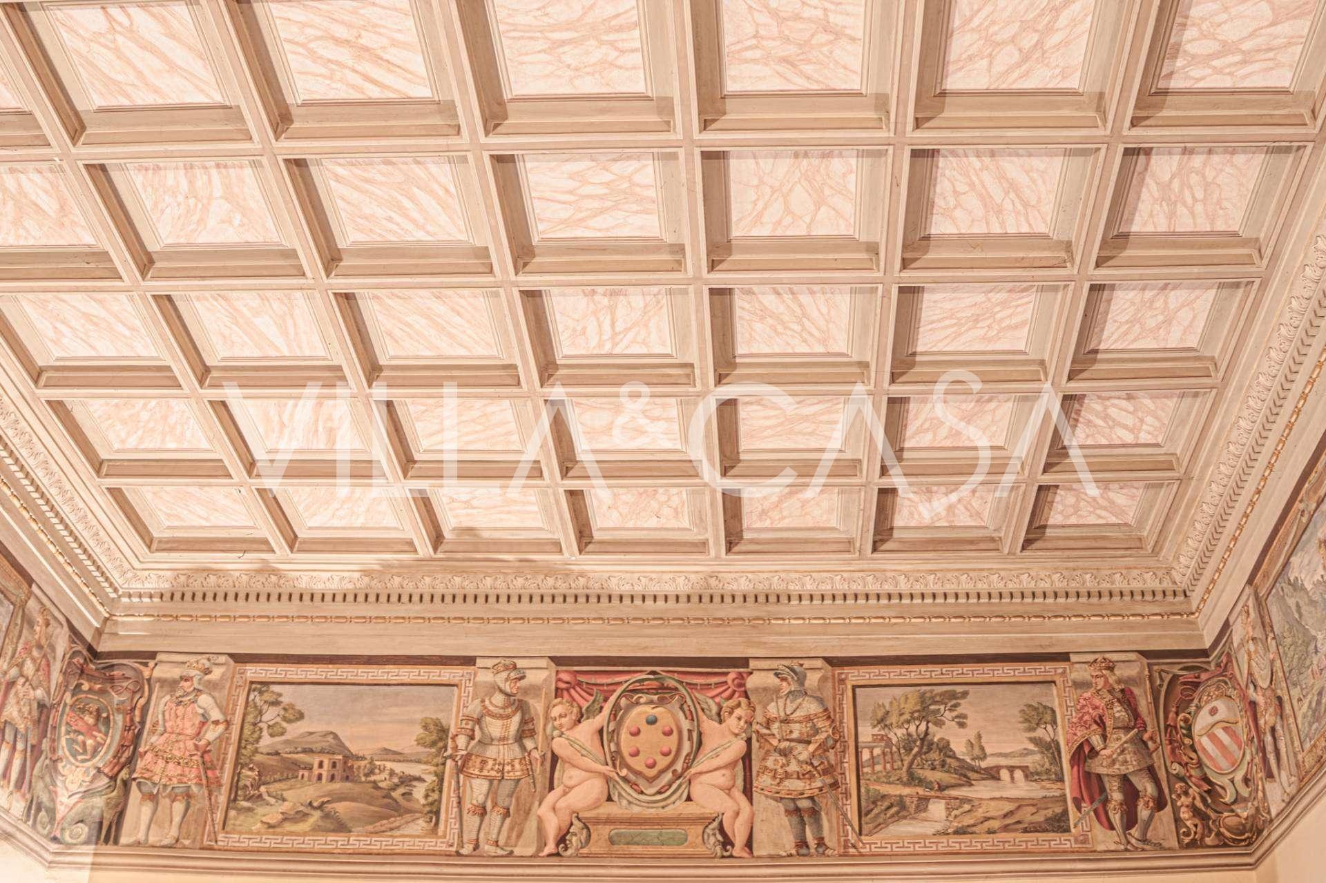 Al secondo piano ci sono due saloni di rappresentanza con soffitti dipinti, due camere da letto e due bagni.