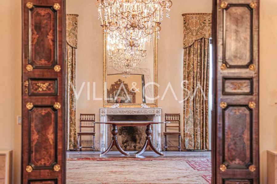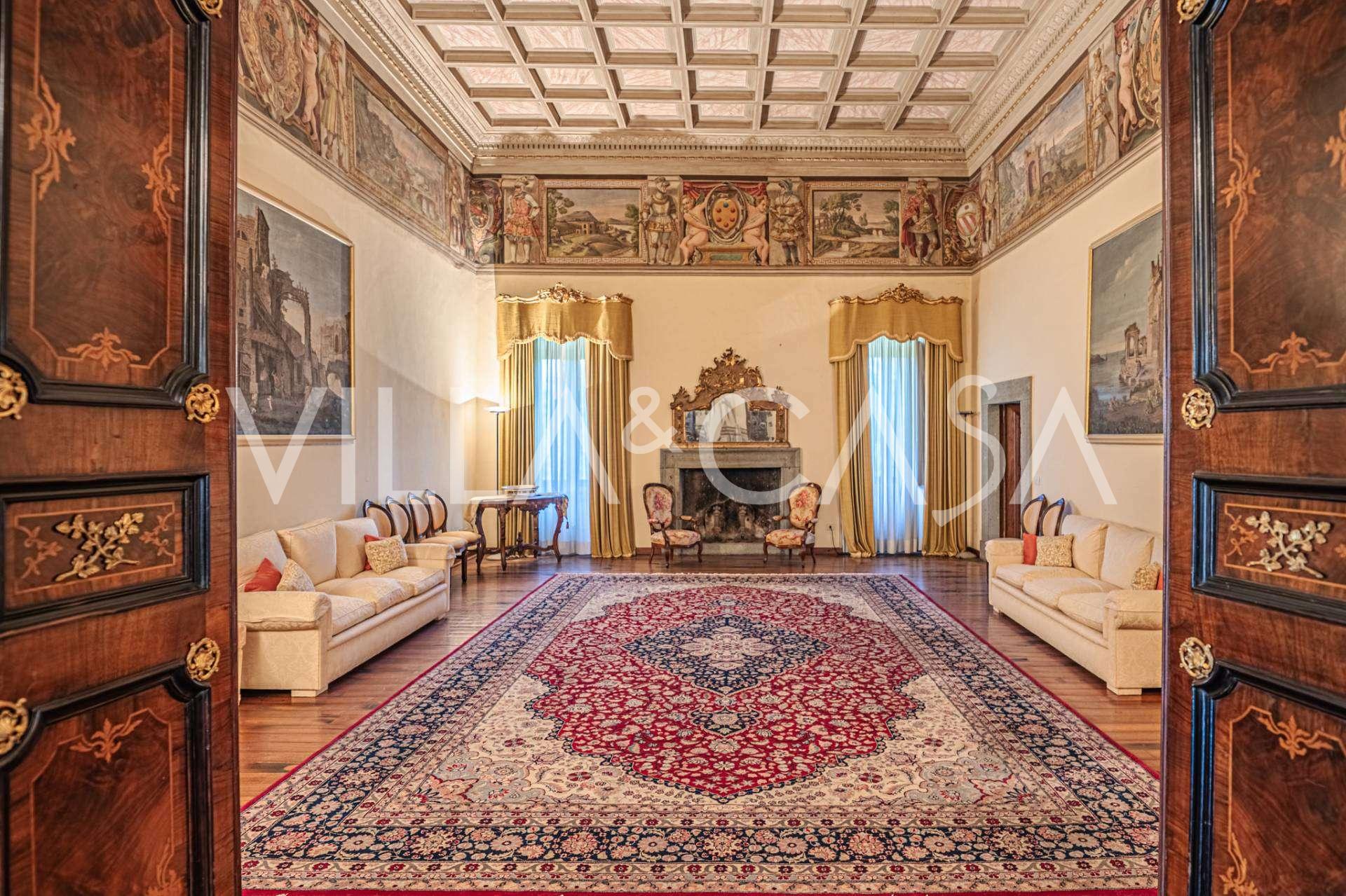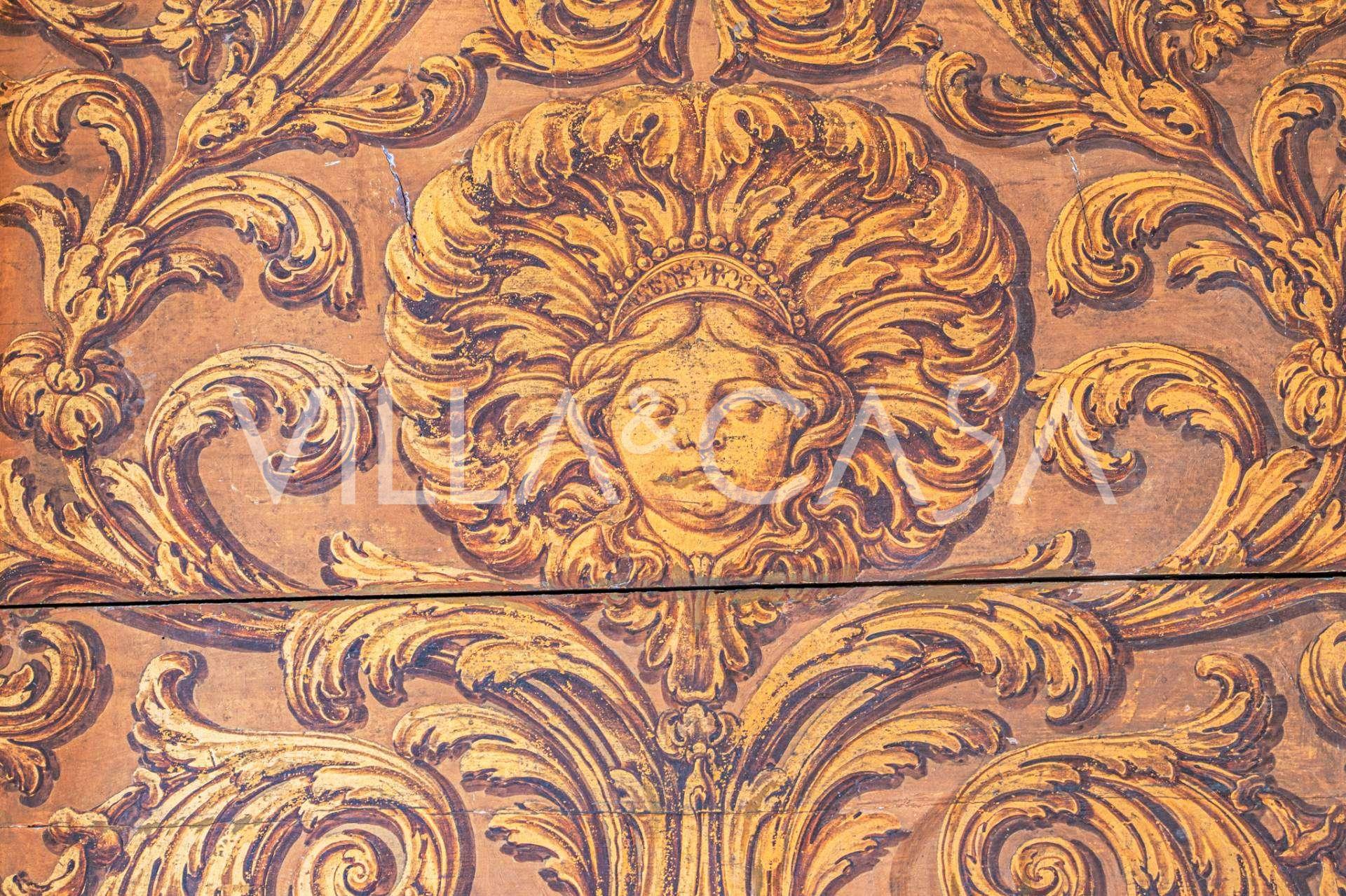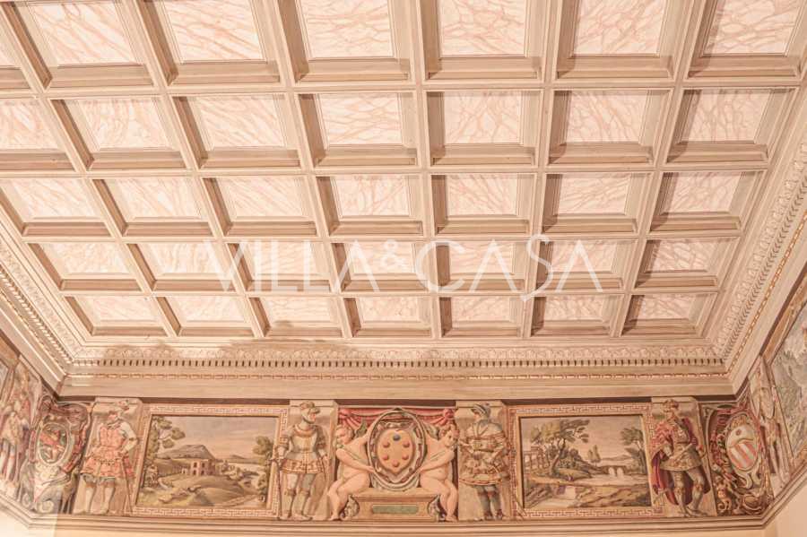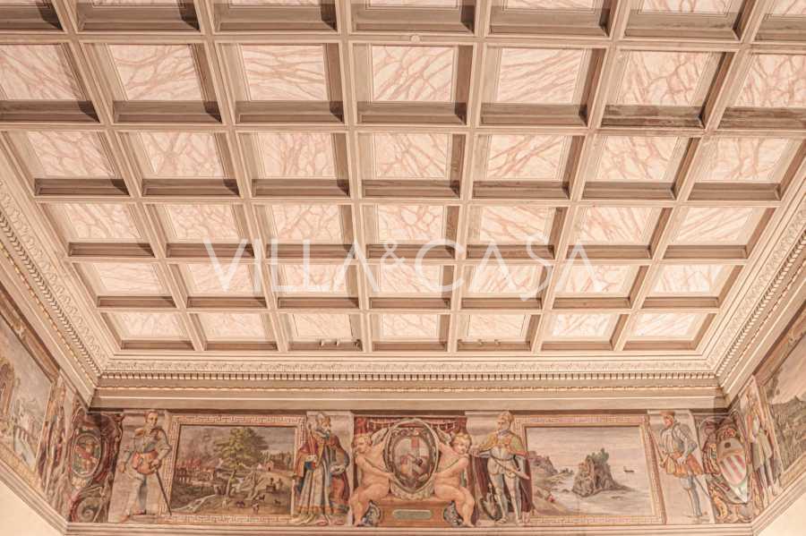 Al secondo piano ci sono due saloni di rappresentanza con soffitti dipinti, due camere da letto e due bagni.