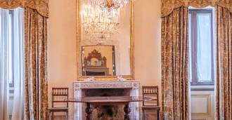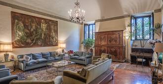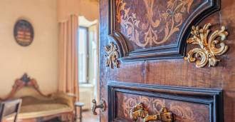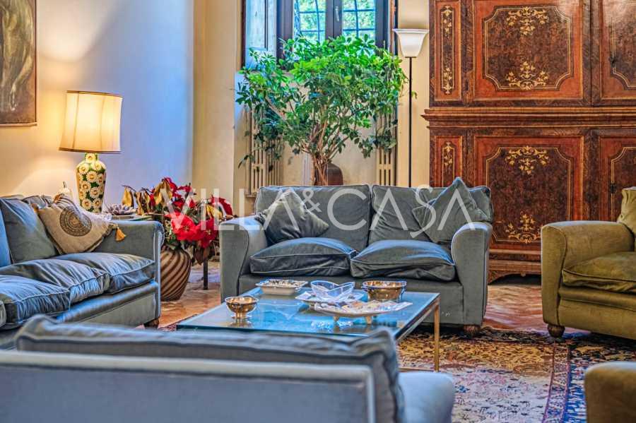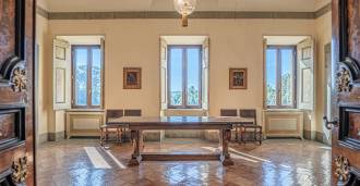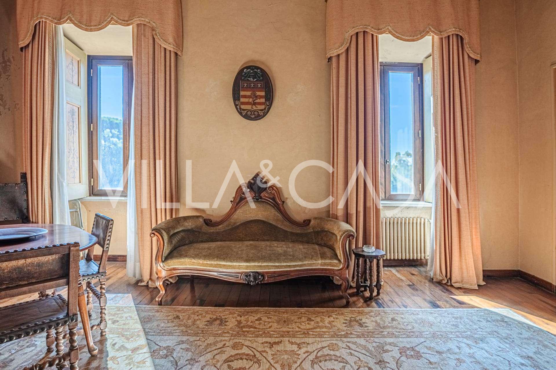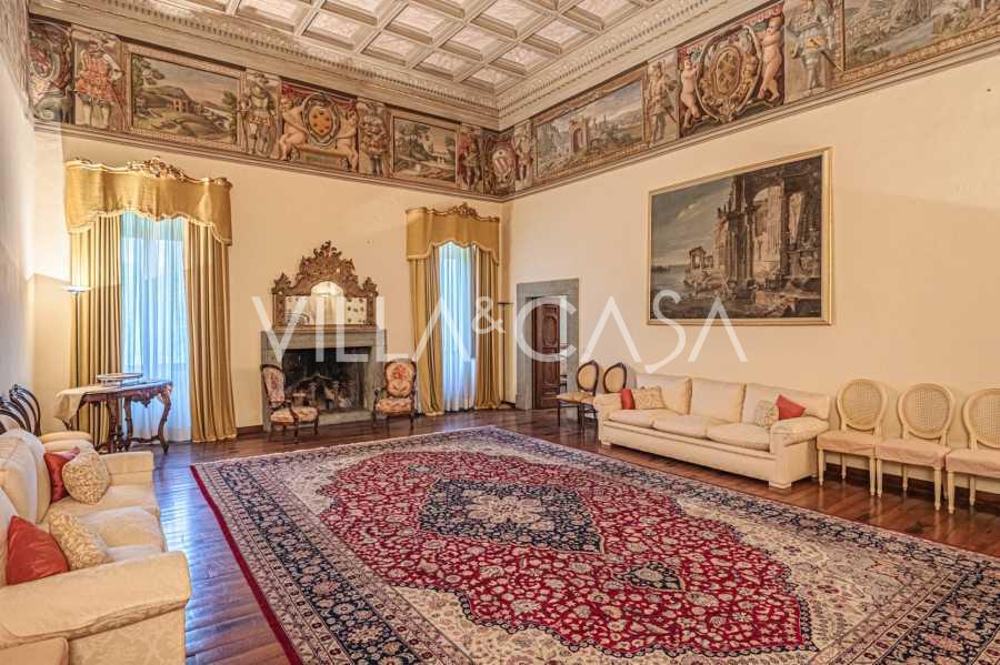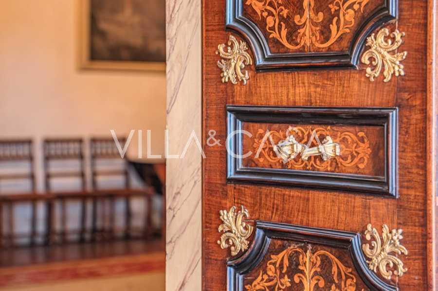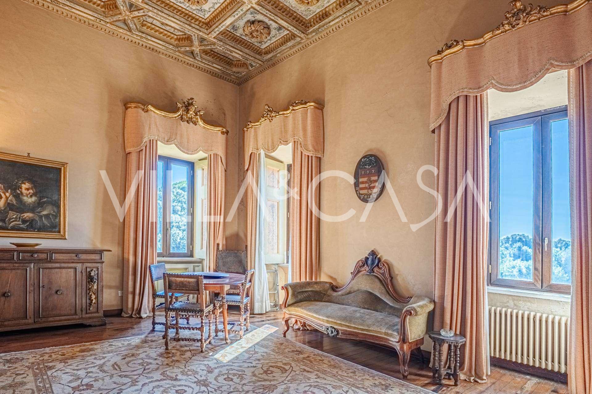 Al secondo piano ci sono due saloni di rappresentanza con soffitti dipinti, due camere da letto e due bagni.