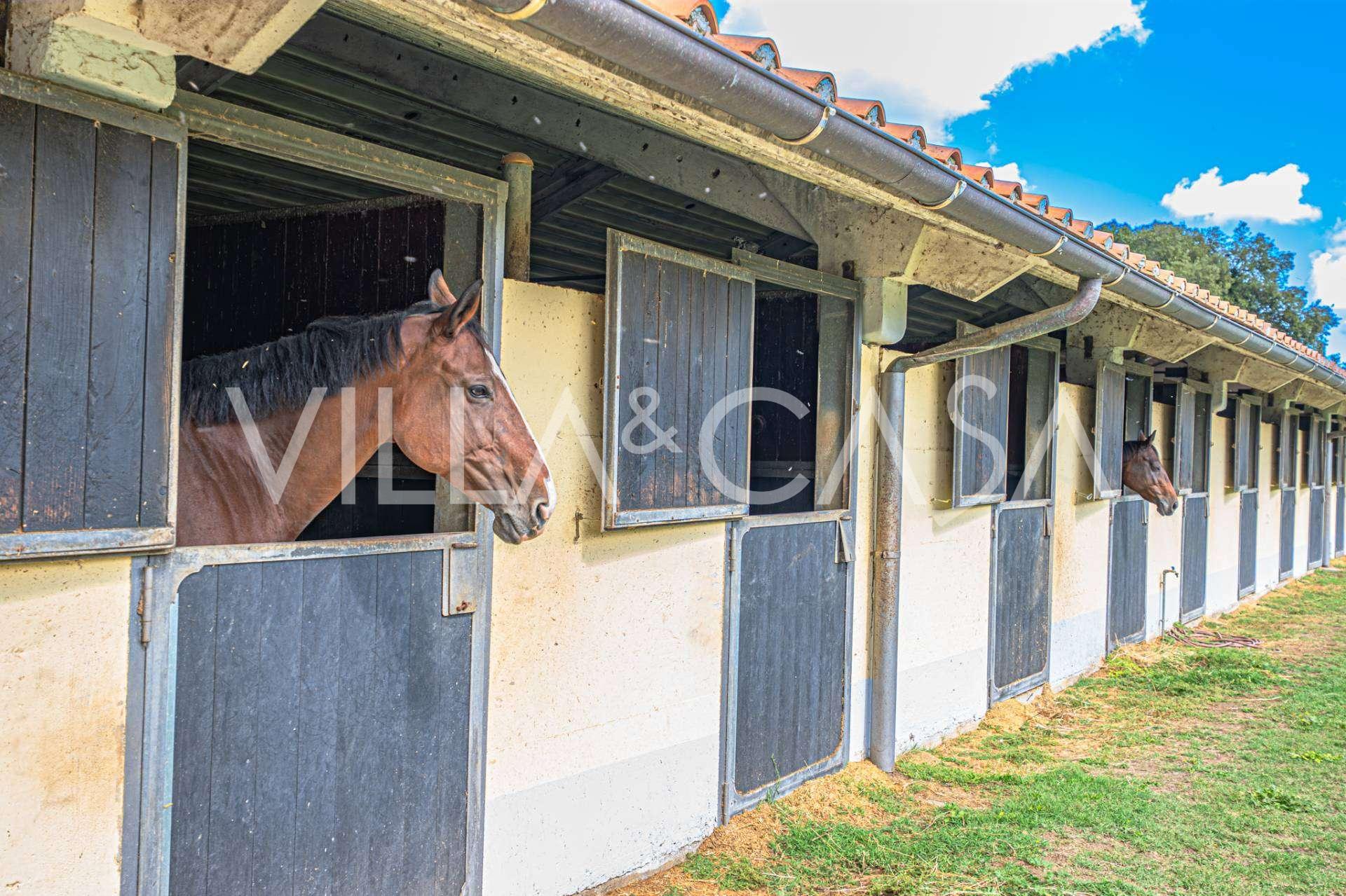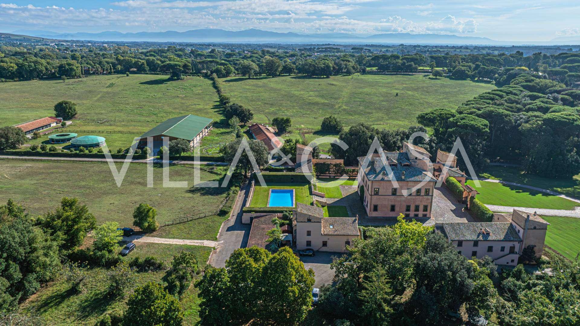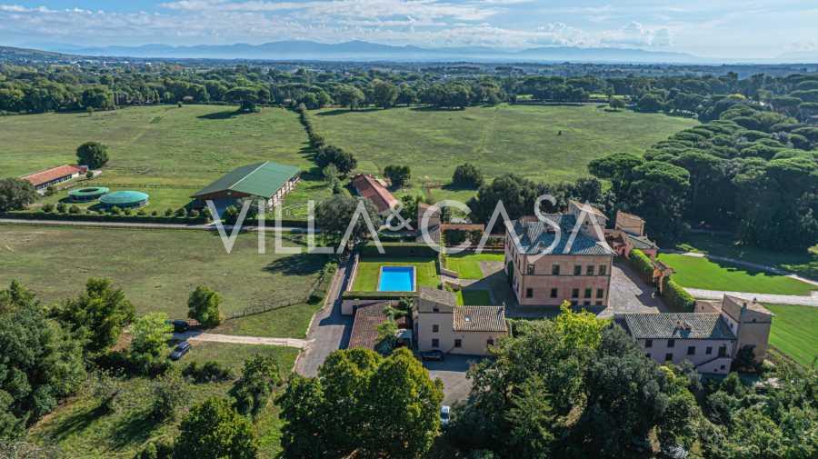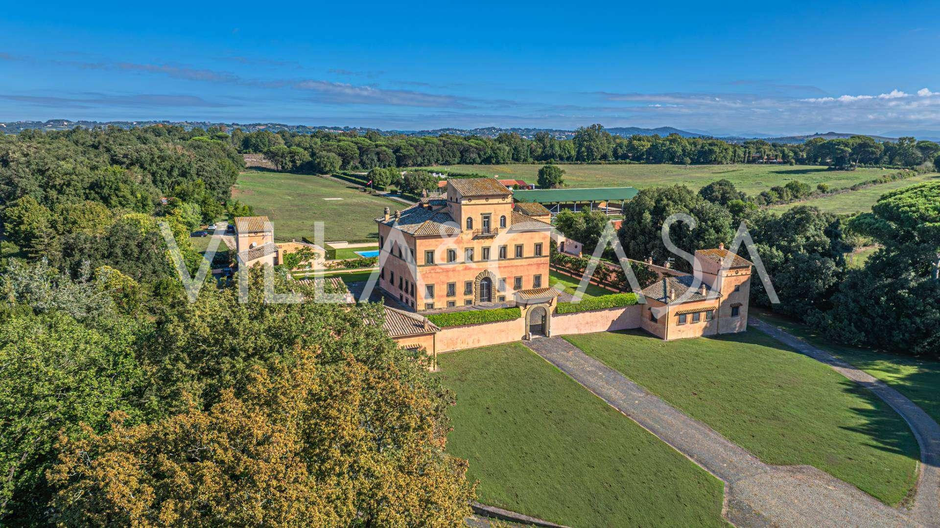 Situato a soli venti chilometri a nord di Roma, il castello è circondato da trenta ettari di prati curati e antiche foreste, creando un'atmosfera di totale isolamento e armonia con la natura. Qui nacque il leggendario cavallo Ribot. Le strutture equestri sono attrezzate secondo i migliori standard internazionali: due scuderie con ventitré e venticinque box, dotate di sellerie, aree di cura per i cavalli e appartamenti confortevoli per il personale. Il complesso dispone di un maneggio coperto per l'equitazione, una giostra coperta, un maneggio coperto e ampi pascoli per l'allevamento dei cavalli, ideali per allenamenti e competizioni. Il castello confina con uno dei più prestigiosi golf club d'Europa e dispone di un proprio eliporto. Il fascino particolare e il valore storico del luogo sono arricchiti dalle antiche grotte etrusche situate nella proprietà.