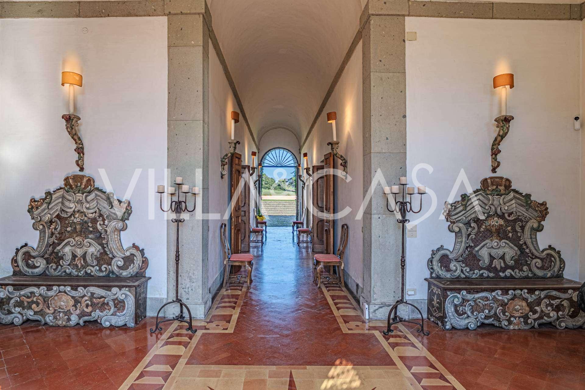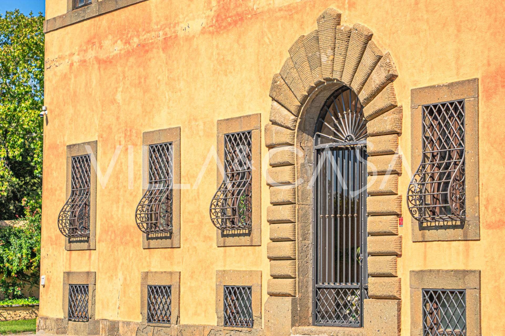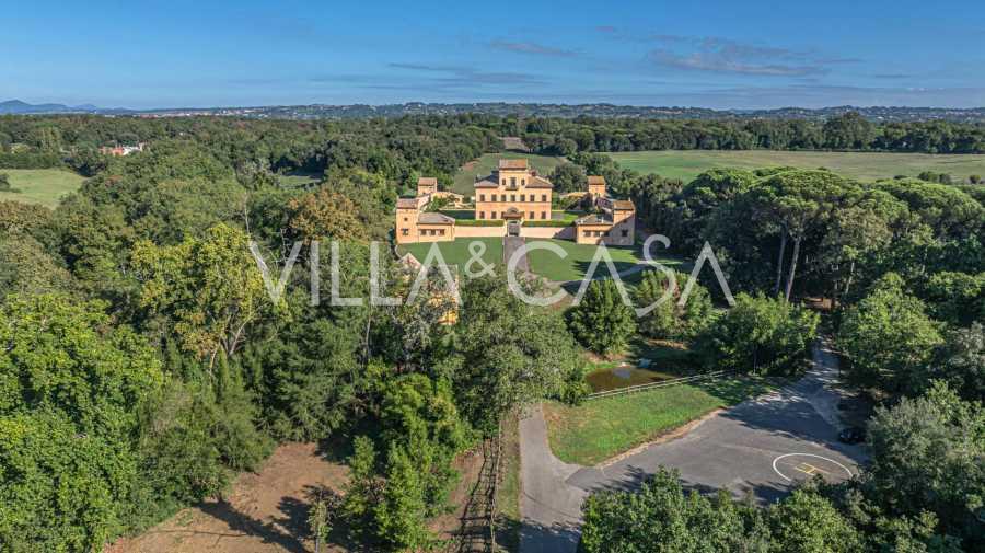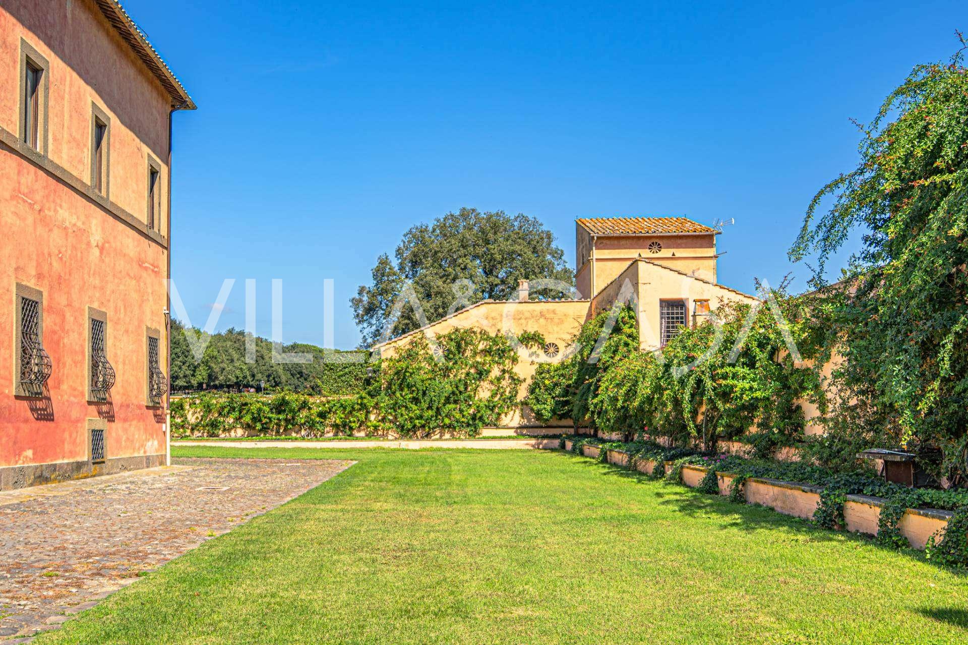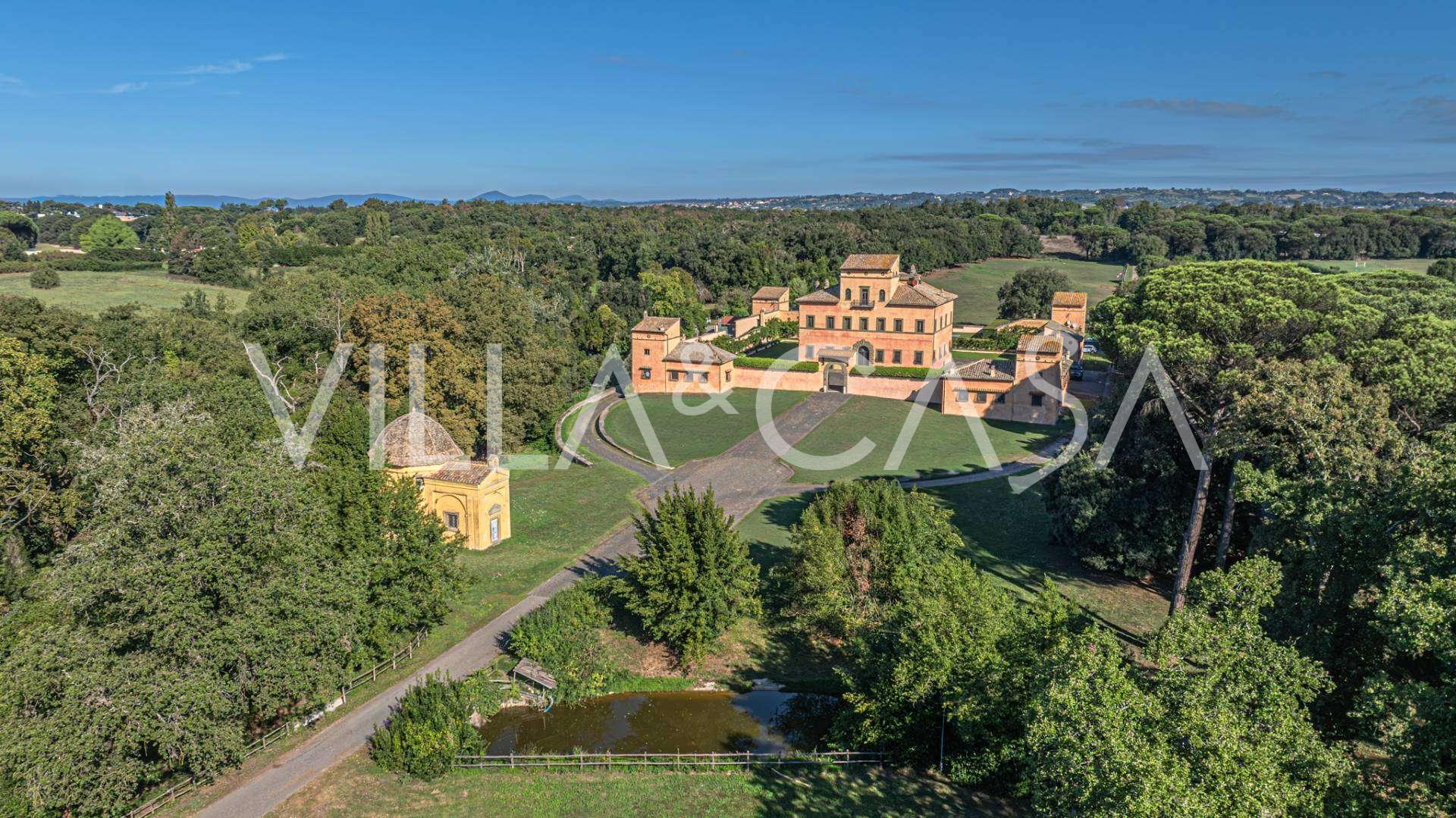 Situato a soli venti chilometri a nord di Roma, il castello è circondato da trenta ettari di prati curati e antiche foreste, creando un'atmosfera di totale isolamento e armonia con la natura. Qui nacque il leggendario cavallo Ribot. Le strutture equestri sono attrezzate secondo i migliori standard internazionali: due scuderie con ventitré e venticinque box, dotate di sellerie, aree di cura per i cavalli e appartamenti confortevoli per il personale. Il complesso dispone di un maneggio coperto per l'equitazione, una giostra coperta, un maneggio coperto e ampi pascoli per l'allevamento dei cavalli, ideali per allenamenti e competizioni. Il castello confina con uno dei più prestigiosi golf club d'Europa e dispone di un proprio eliporto. Il fascino particolare e il valore storico del luogo sono arricchiti dalle antiche grotte etrusche situate nella proprietà.