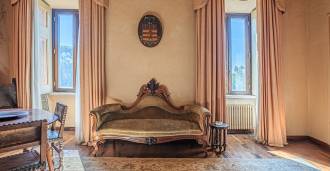 Costruito tra il 1560 e il 1575, il castello conserva ancora il suo fascino unico: è un simbolo di storia, nobiltà e grazia. Nel corso dei secoli è stato un luogo di villeggiatura preferito da papi, cardinali, nobili e monarchi, tra cui la famosa regina svedese Cristina nel XVII secolo. Nel 1940, qui fu firmato l'Armistizio tra Italia e Francia.
