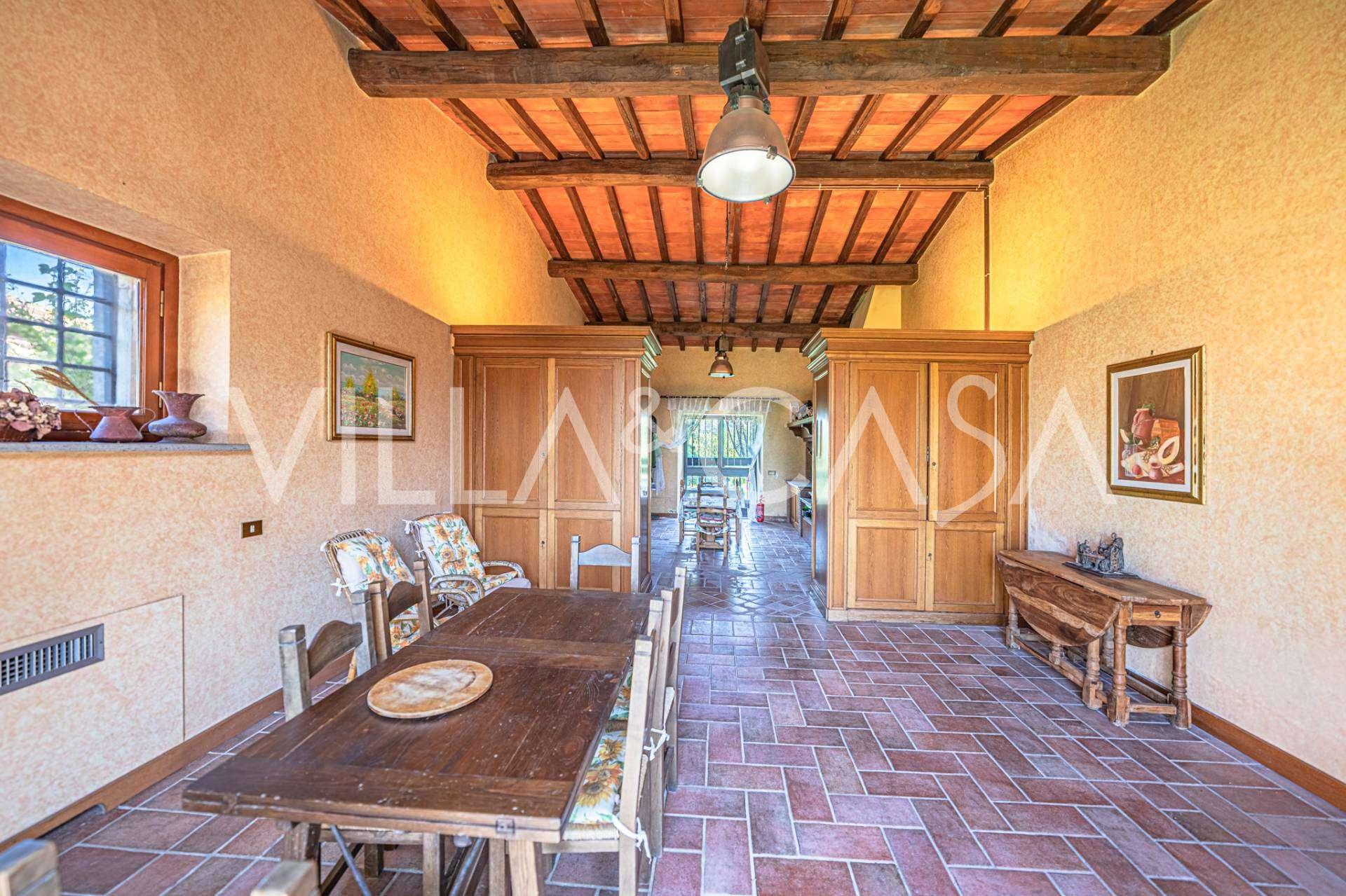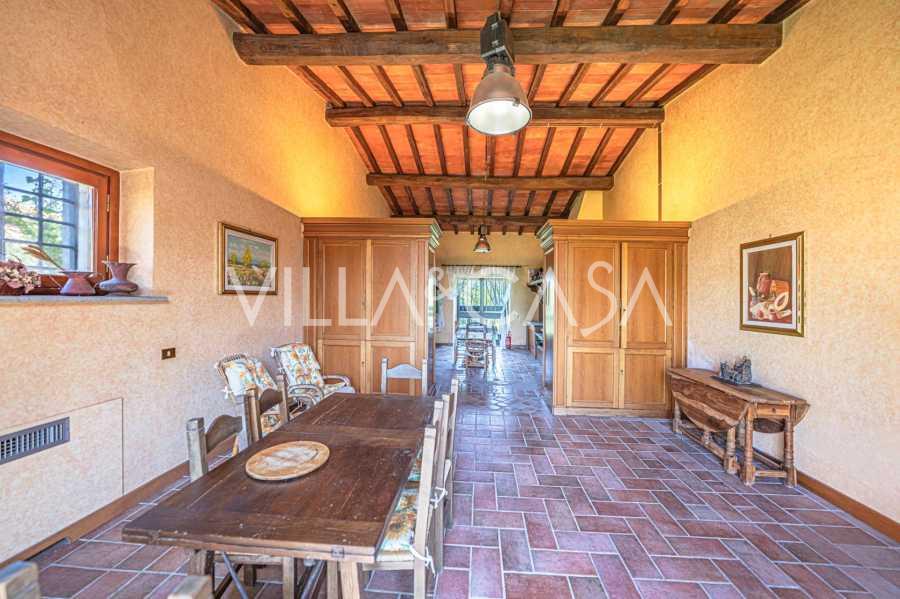 Oltre all'edificio principale, il complesso comprende due unità abitative separate di circa 60 m² ciascuna, contenenti un soggiorno con angolo cottura, una camera da letto e un bagno. Nelle vicinanze si trovano un'ampia lavanderia e una centrale termica di circa 30 m². La proprietà dispone di una grande area barbecue con forno a legna coperto e un locale di servizio, ex porcile, di circa 30 m².
