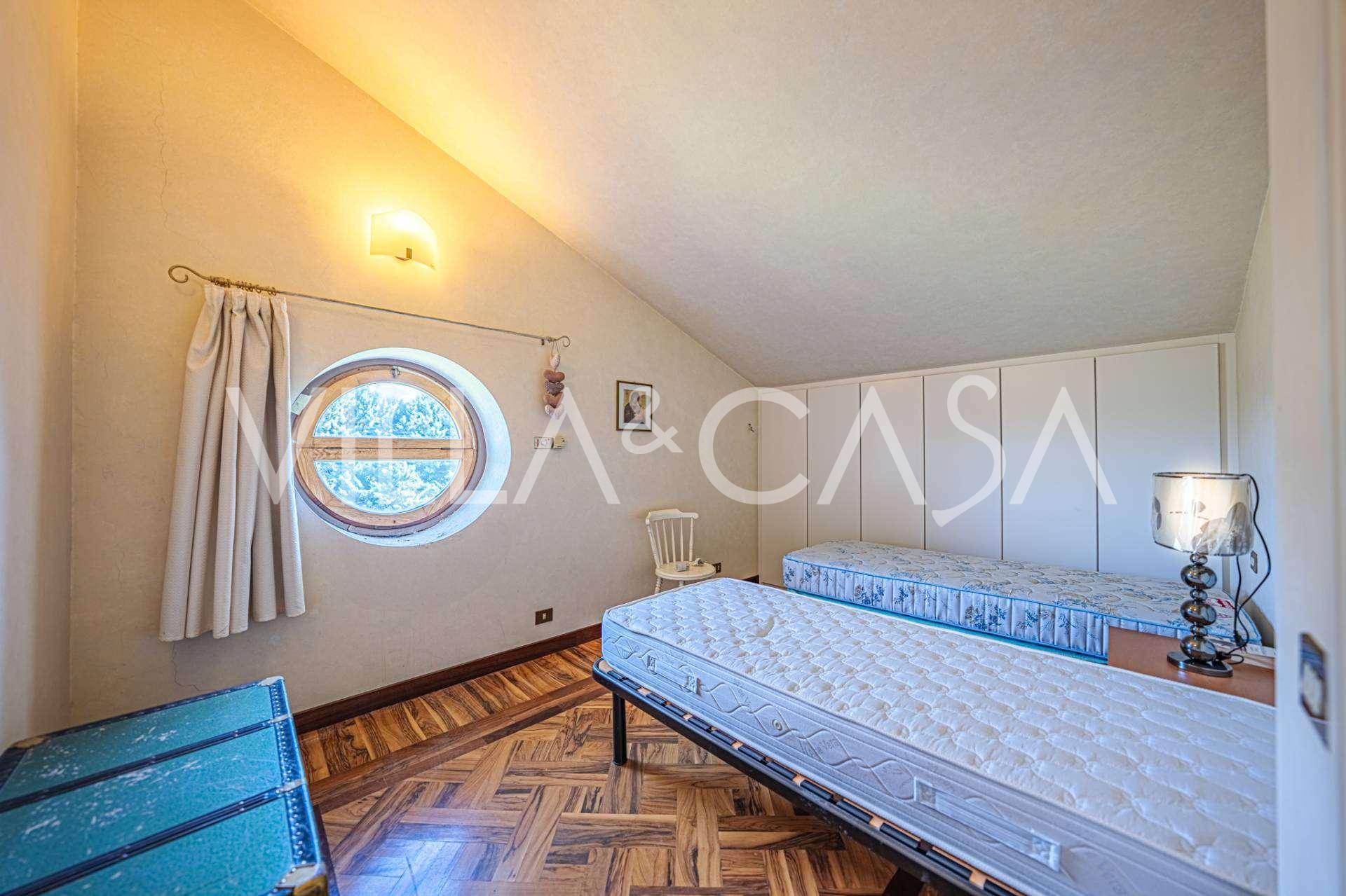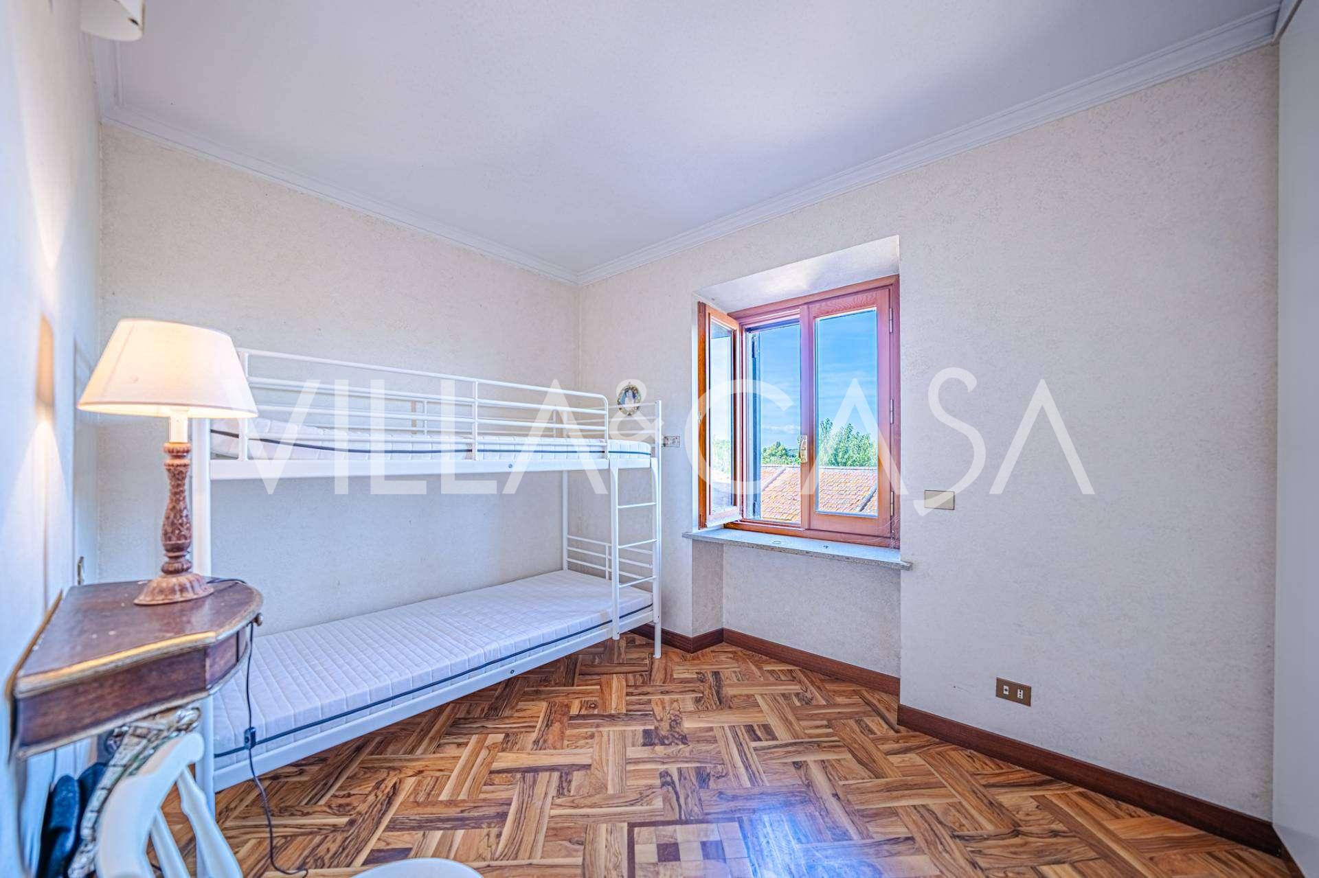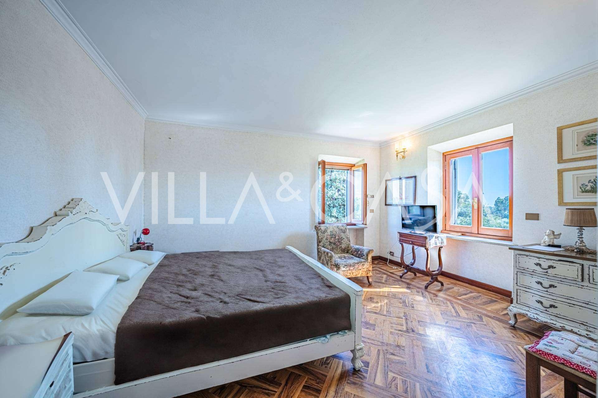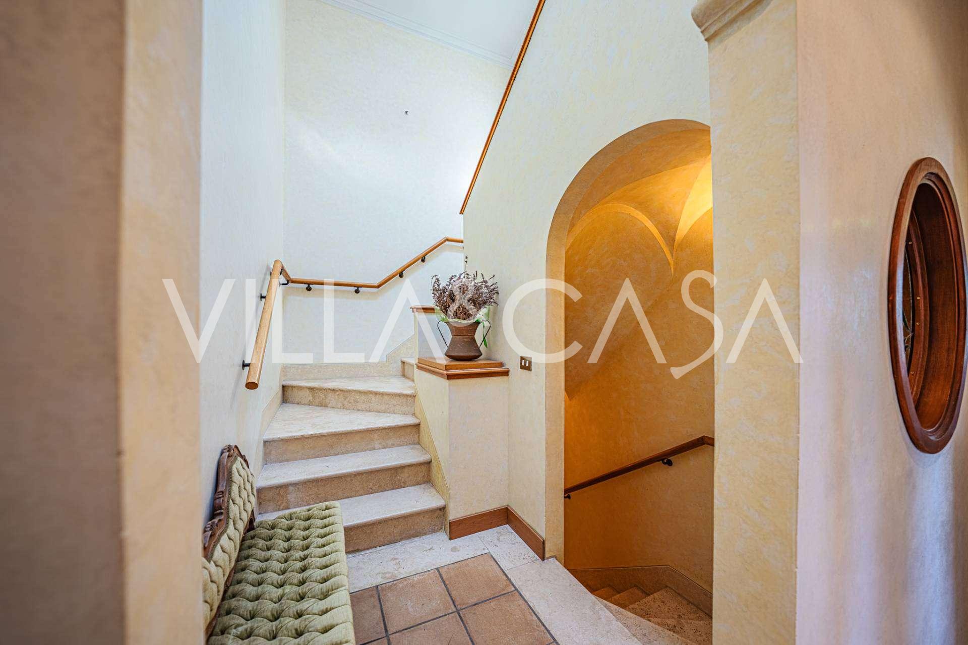 Il secondo piano comprende quattro camere da letto e due bagni. L'edificio principale, con una superficie totale di circa 515 m² su tre livelli, può essere facilmente diviso in cinque unità abitative separate e completato da una terrazza-portico coperta di circa 60 m².