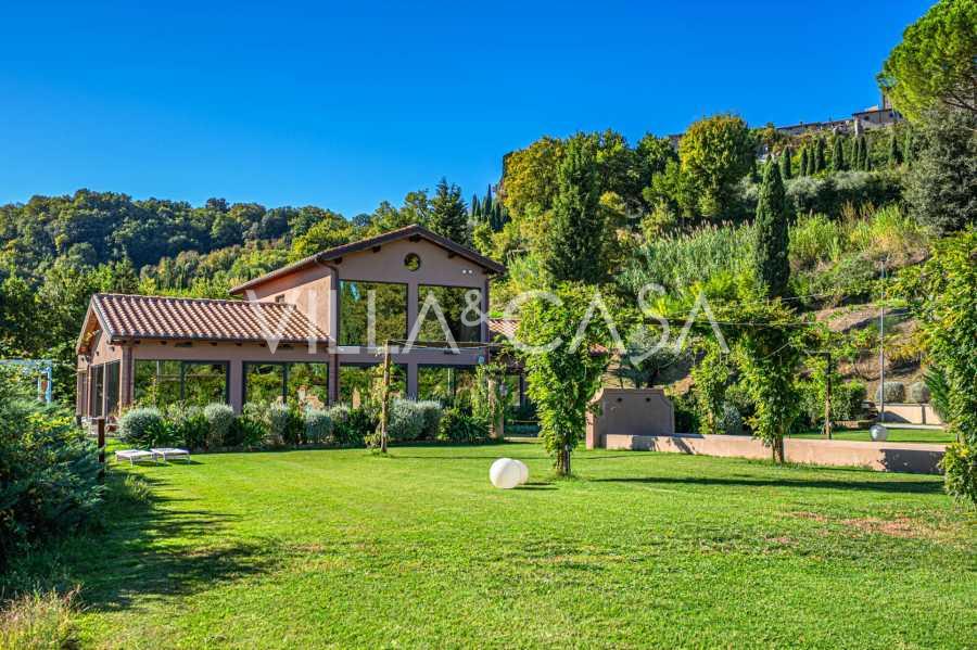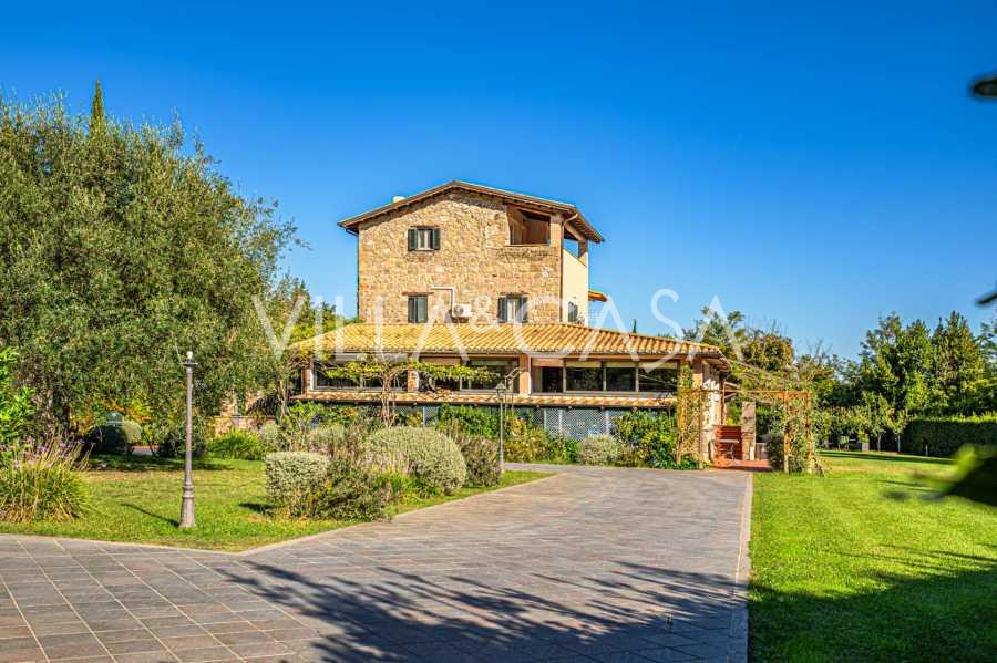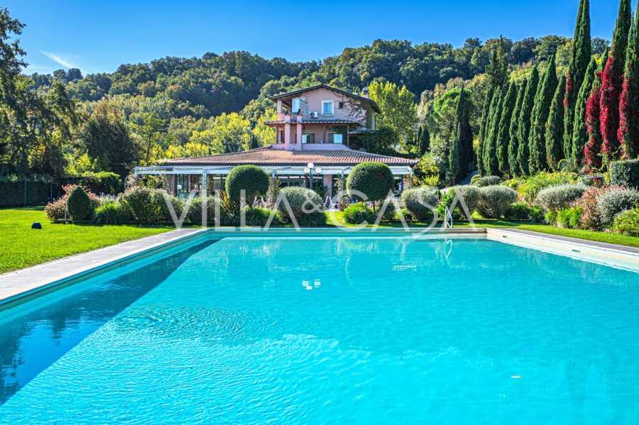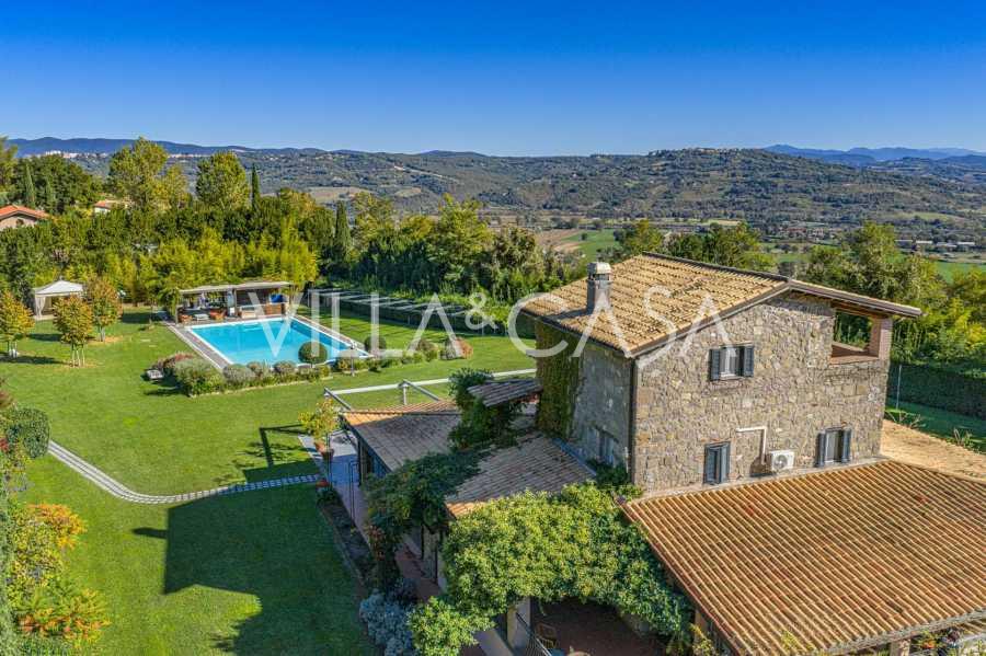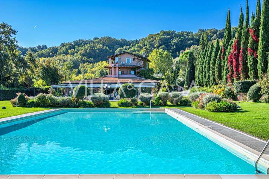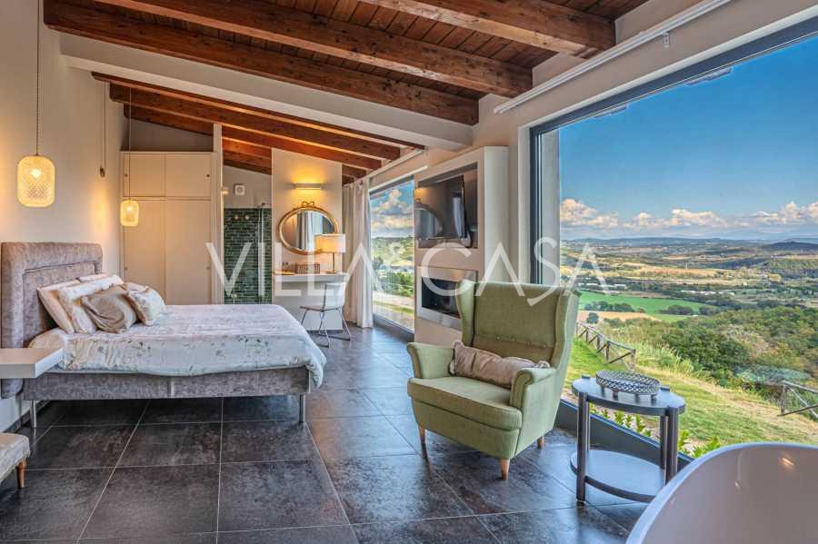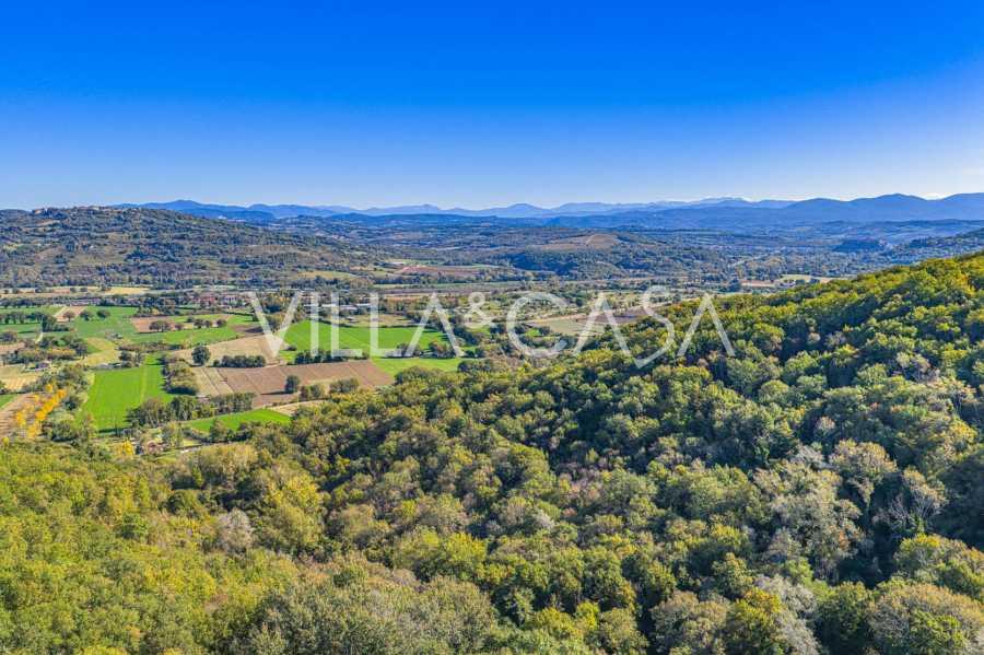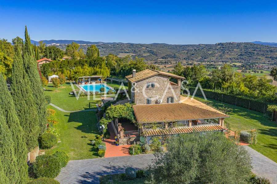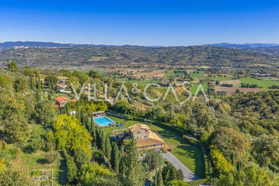 Nella provincia di Viterbo, su un'altura collinare, si apre una vista mozzafiato sulla valle del Tevere. La proprietà si estende su circa 25 ettari di parco curato, creando un'atmosfera di totale tranquillità e isolamento. Ogni angolo è progettato per il comfort, l'eleganza e l'armonia: terrazze soleggiate, gazebo, eleganti lettini a bordo piscina e viali ombreggiati circondati da alberi secolari.