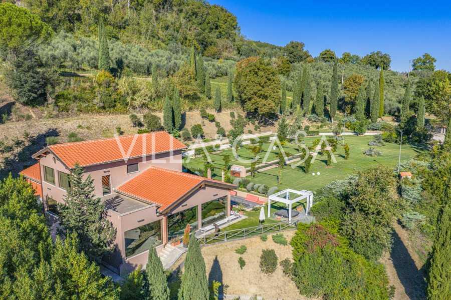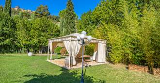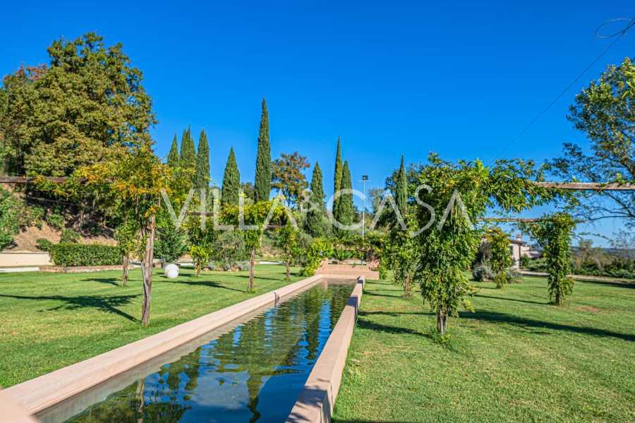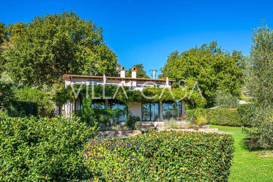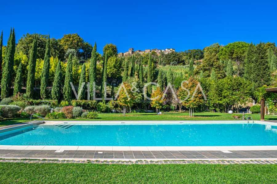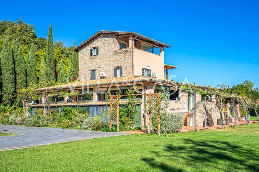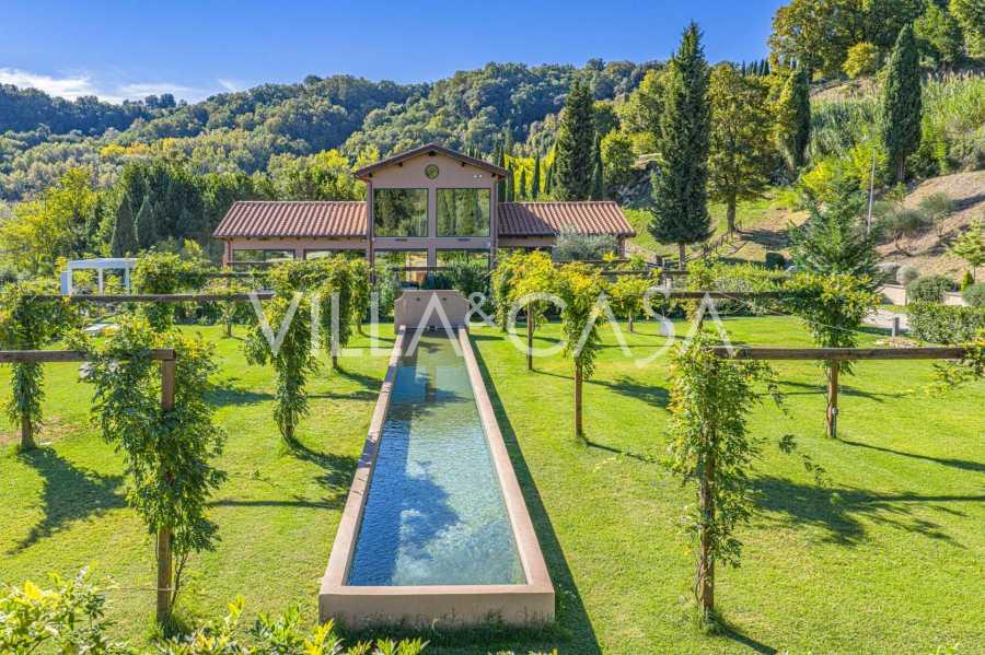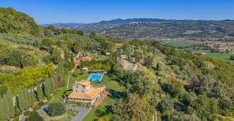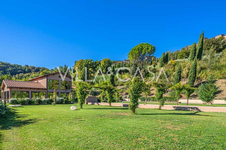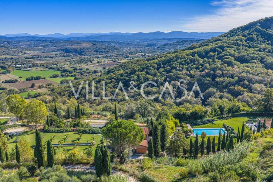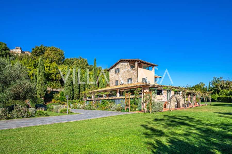 Nella provincia di Viterbo, su un'altura collinare, si apre una vista mozzafiato sulla valle del Tevere. La proprietà si estende su circa 25 ettari di parco curato, creando un'atmosfera di totale tranquillità e isolamento. Ogni angolo è progettato per il comfort, l'eleganza e l'armonia: terrazze soleggiate, gazebo, eleganti lettini a bordo piscina e viali ombreggiati circondati da alberi secolari.