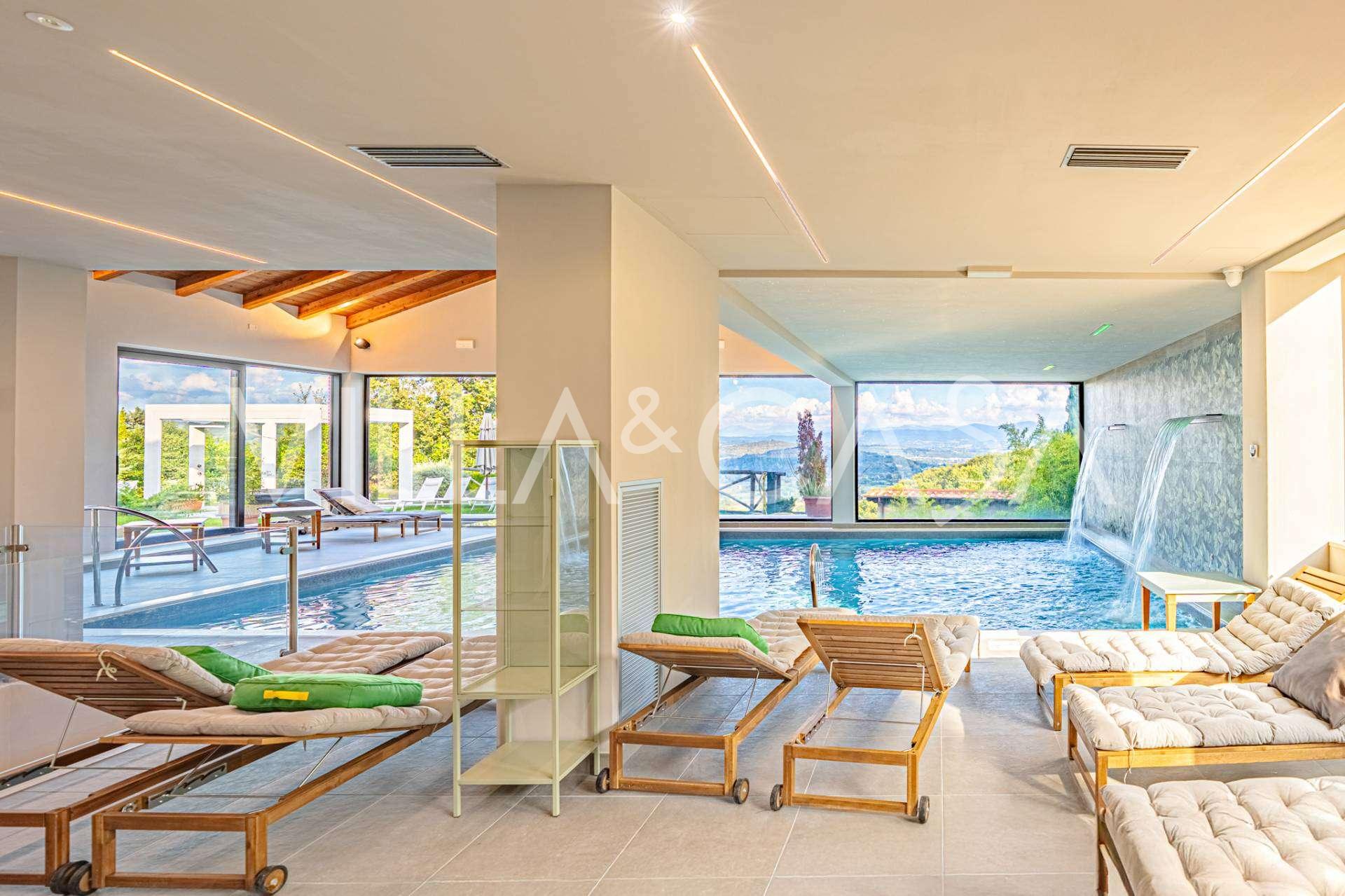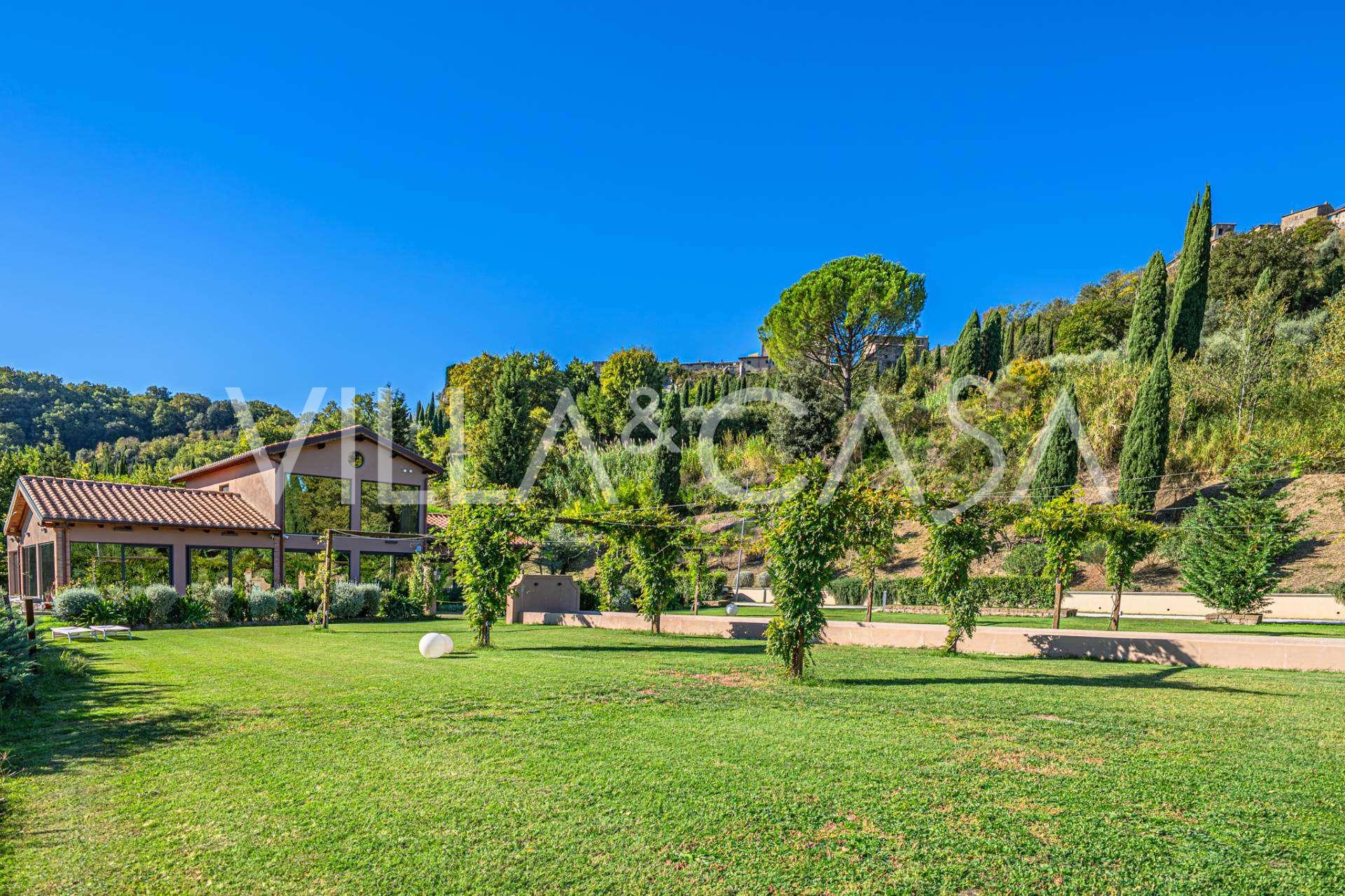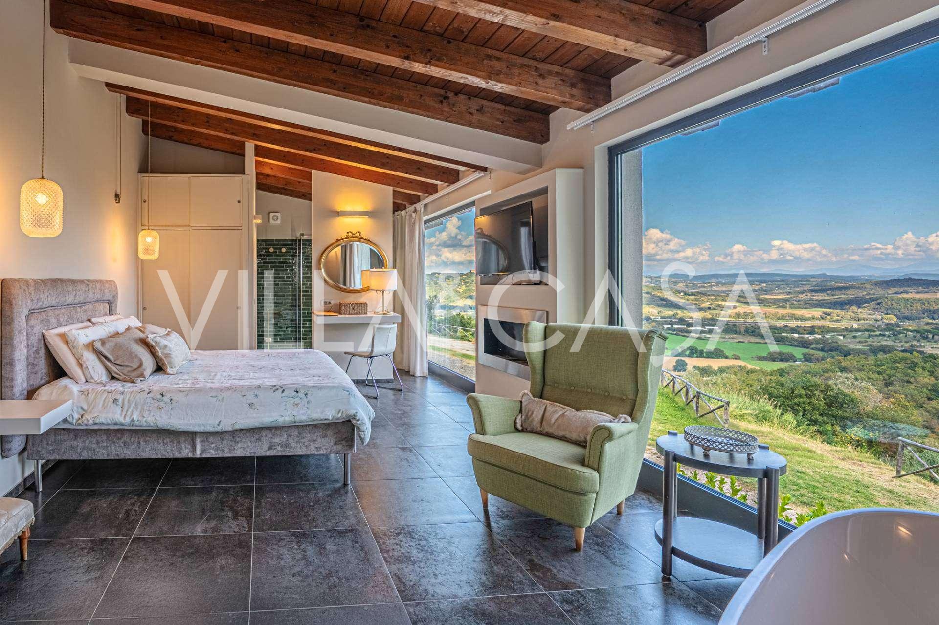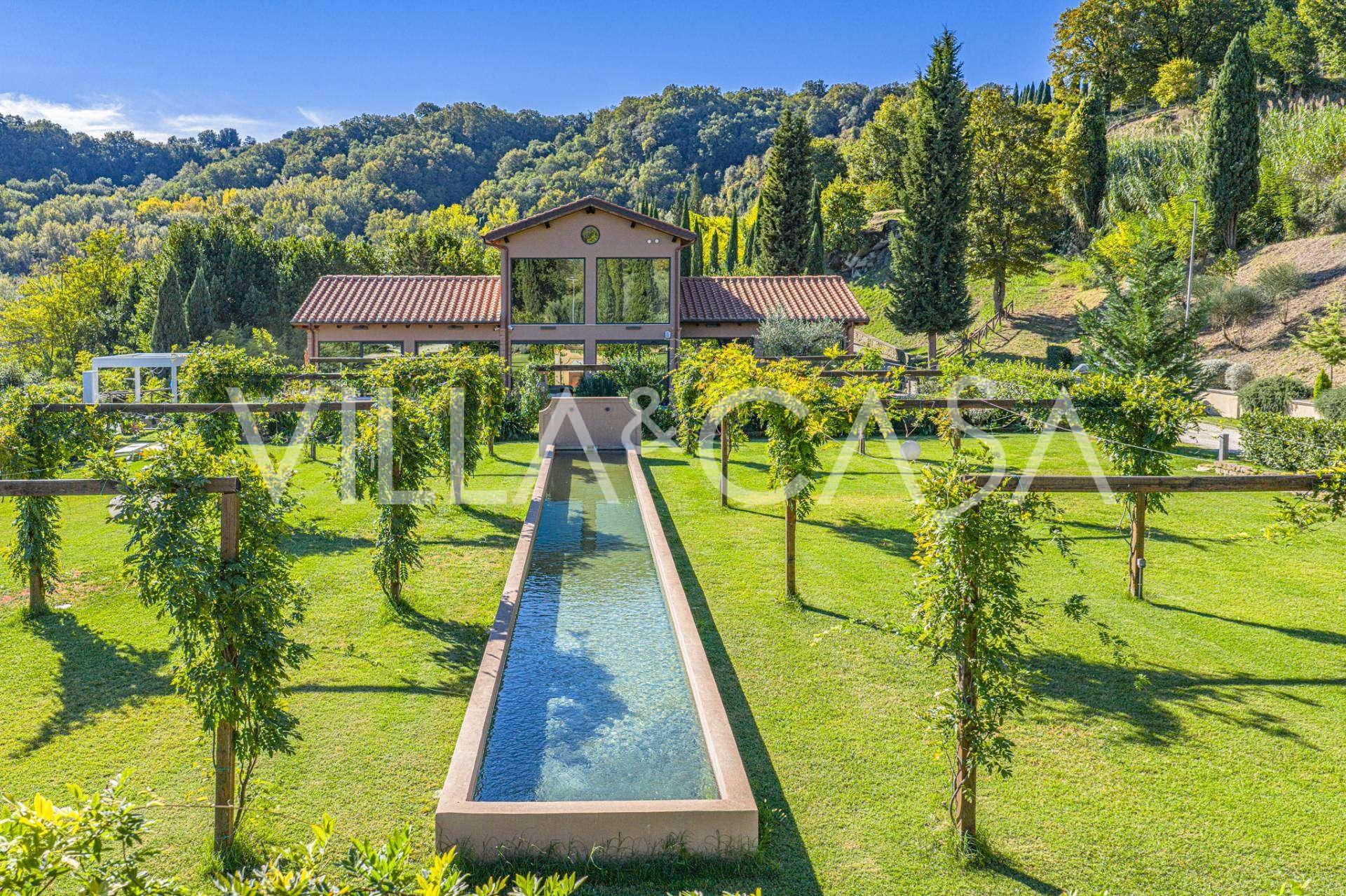 Questa struttura nella provincia di Viterbo si erge sulle colline, offrendo una vista incredibile sulla valle del Tevere. Occupa circa 25 ettari di parco curato, creando un'atmosfera di completa tranquillità e isolamento. Ogni spazio è progettato per il comfort, l'eleganza e l'armonia: grandi terrazze soleggiate, gazebo, raffinati lettini a bordo piscina e sentieri ombreggiati circondati da alberi secolari.