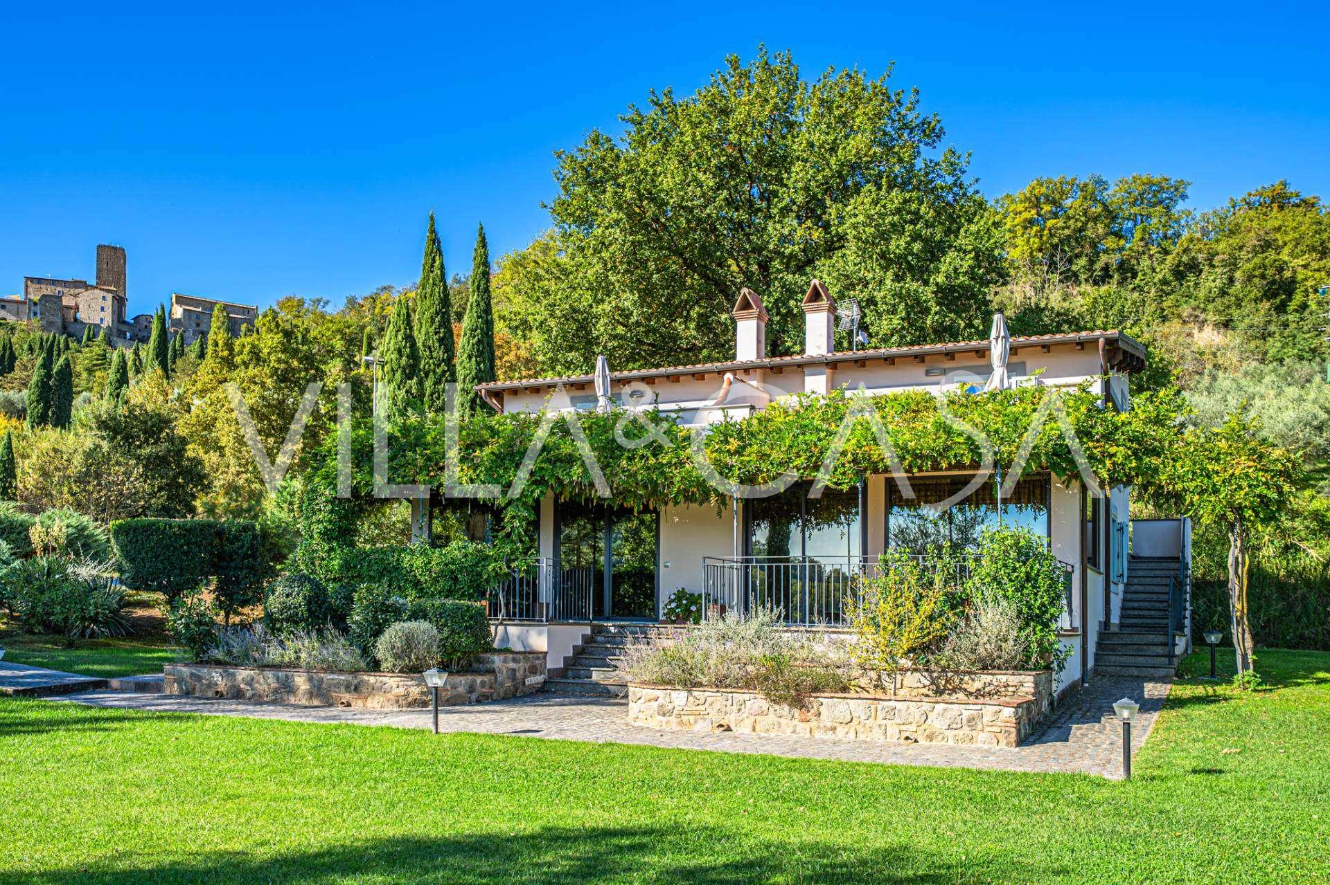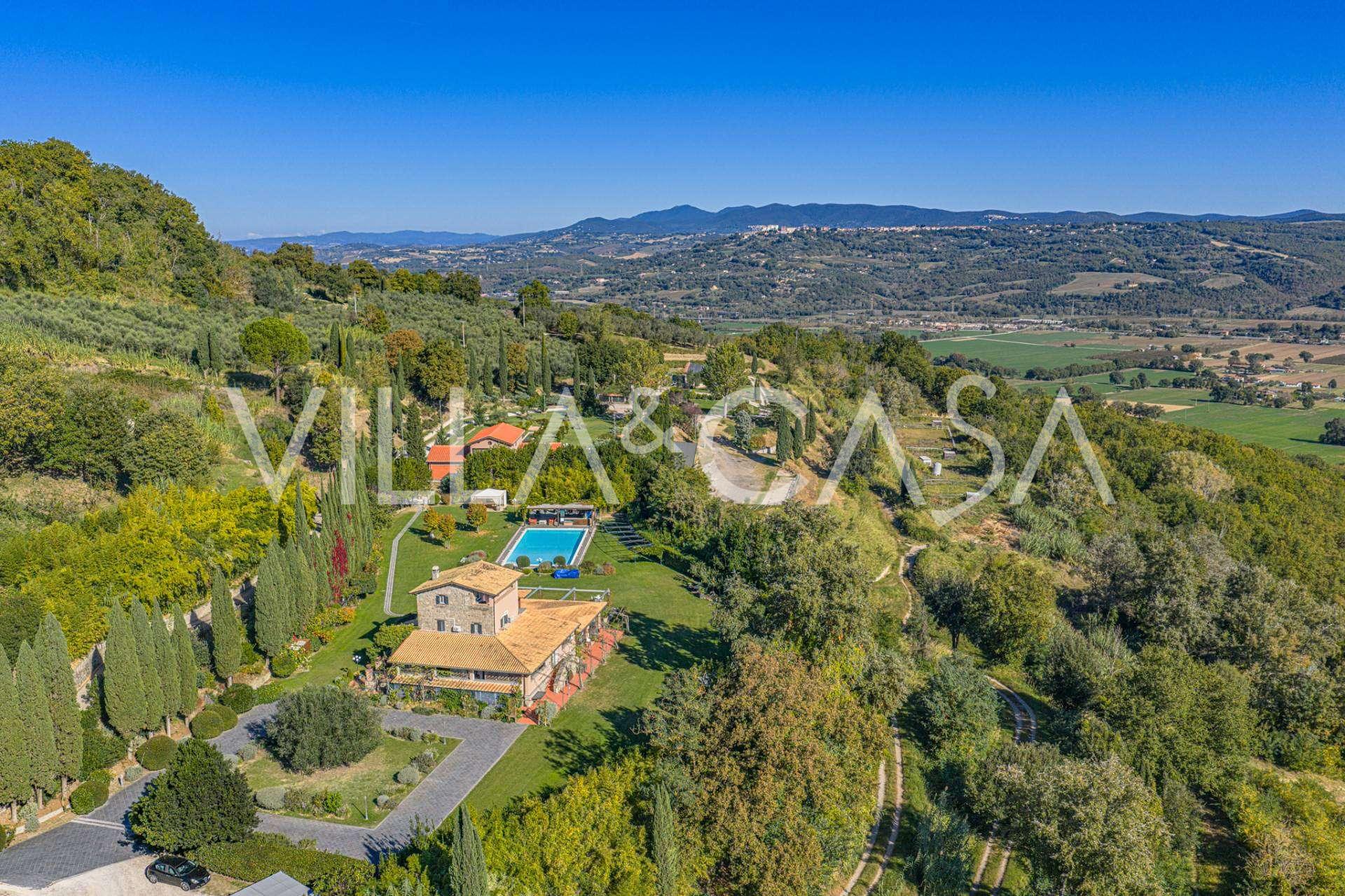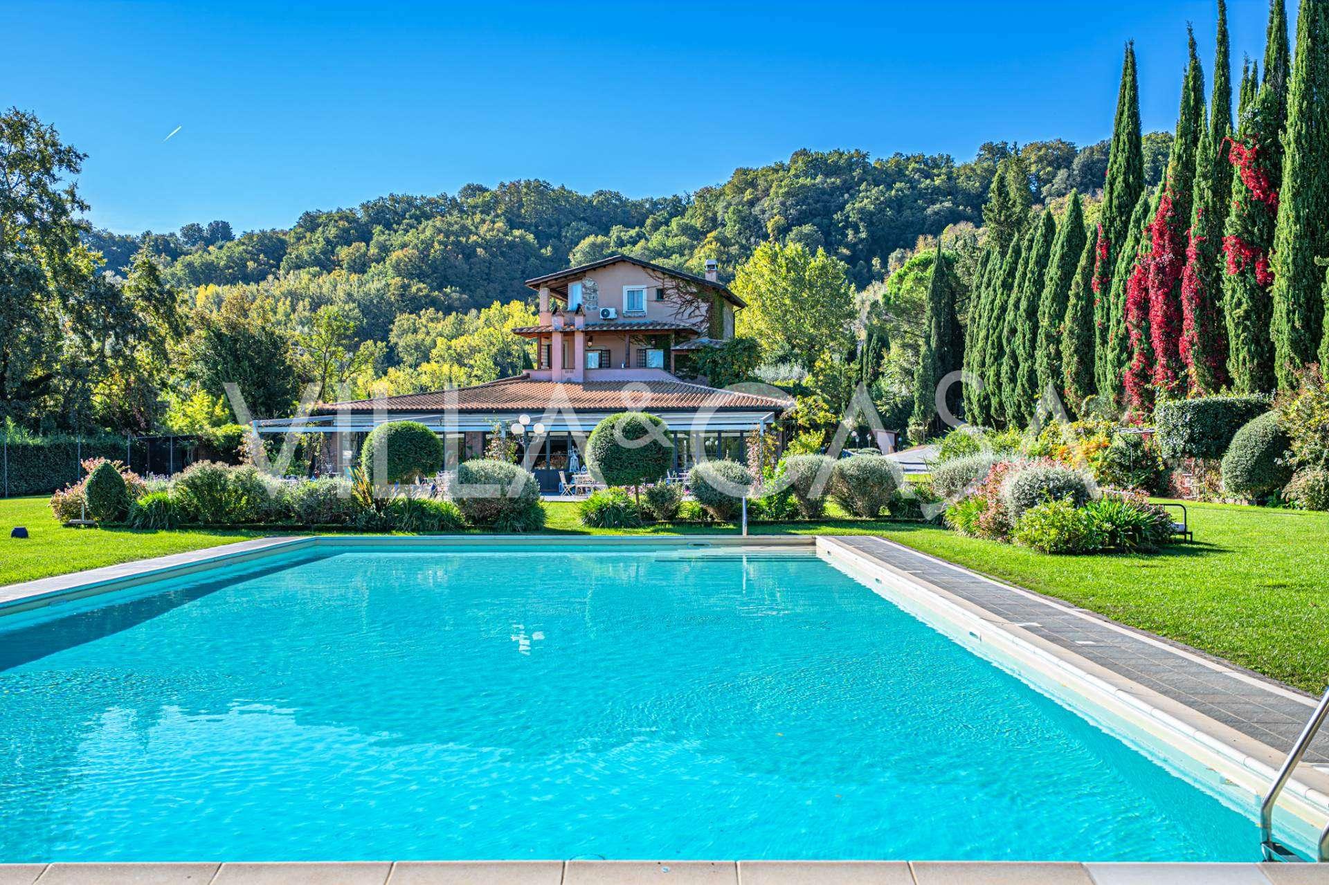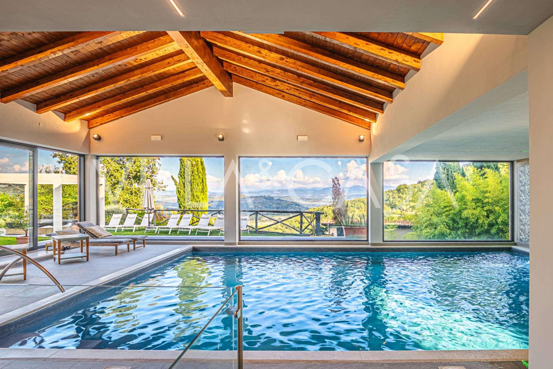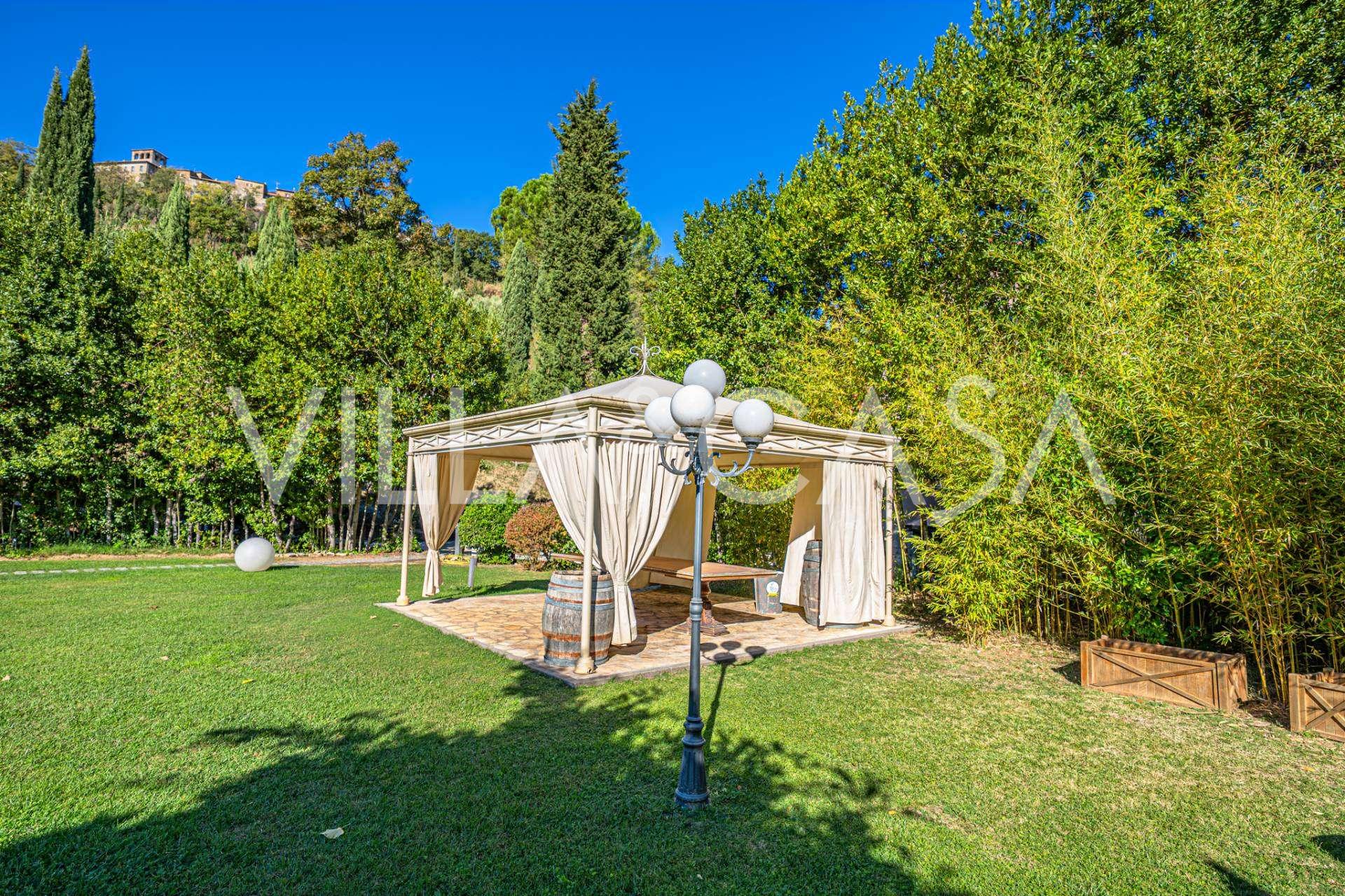 Questa struttura nella provincia di Viterbo si erge sulle colline, offrendo una vista incredibile sulla valle del Tevere. Occupa circa 25 ettari di parco curato, creando un'atmosfera di completa tranquillità e isolamento. Ogni spazio è progettato per il comfort, l'eleganza e l'armonia: grandi terrazze soleggiate, gazebo, raffinati lettini a bordo piscina e sentieri ombreggiati circondati da alberi secolari.