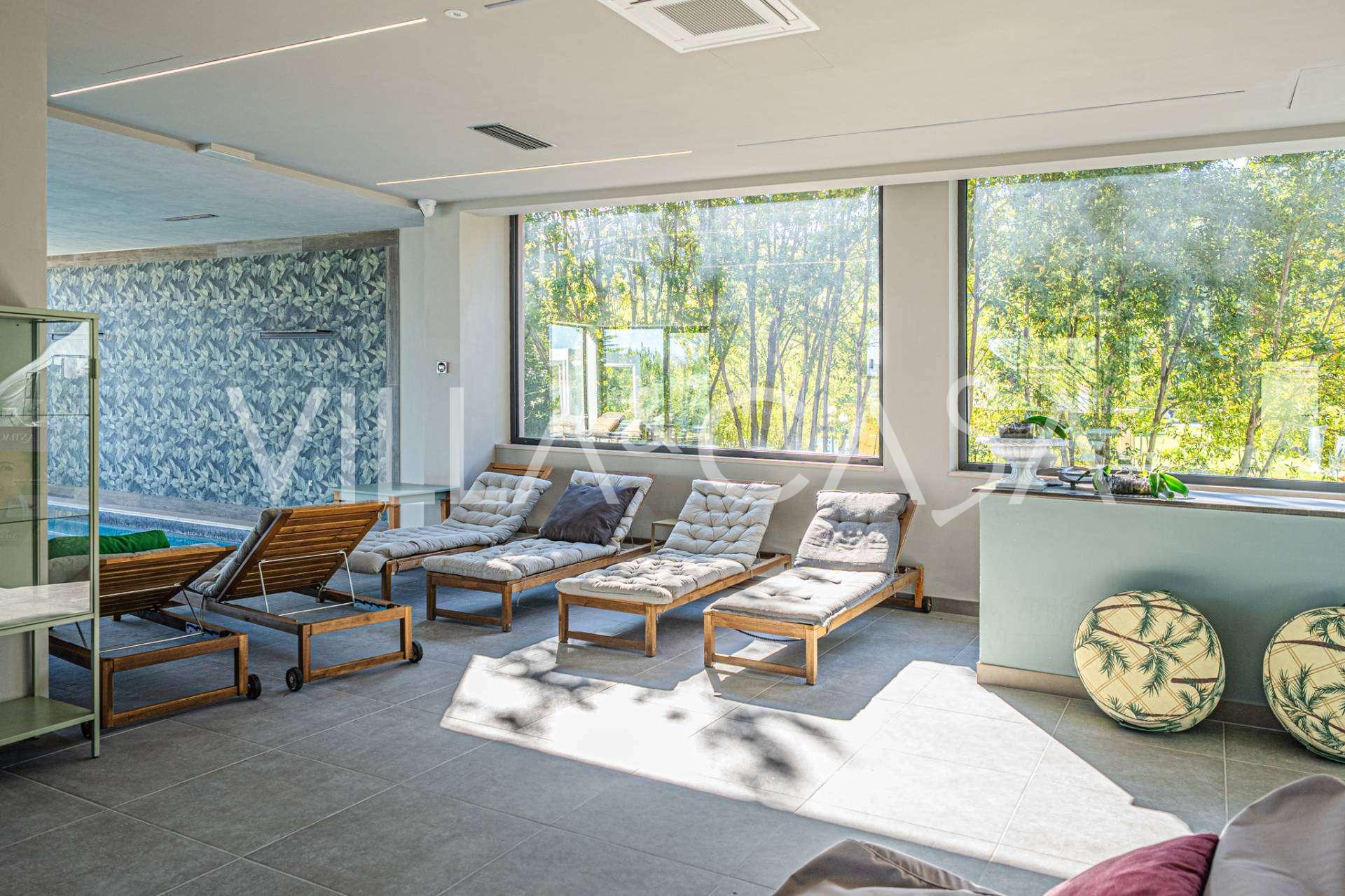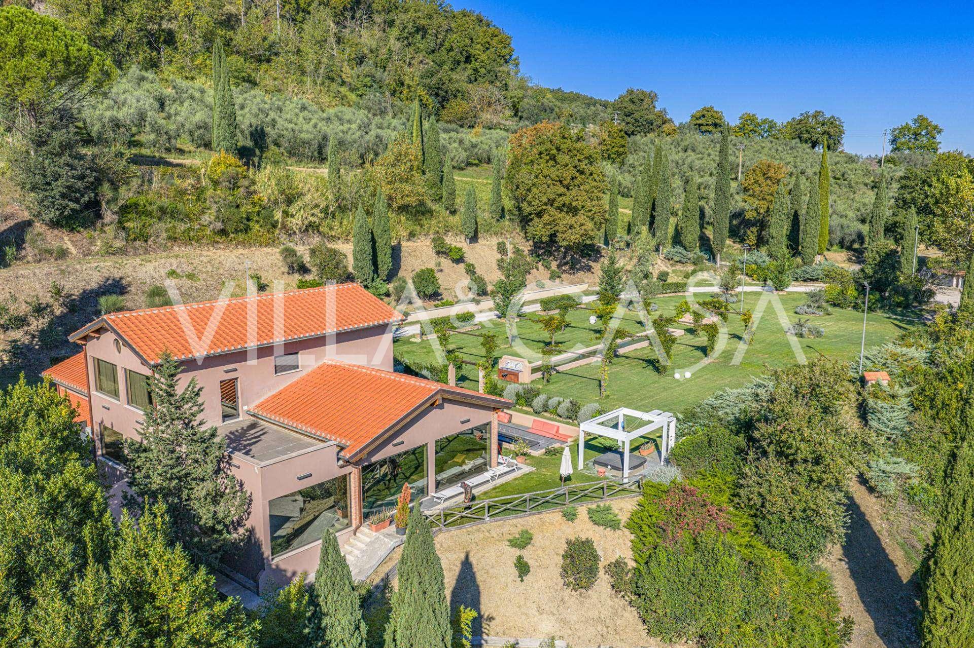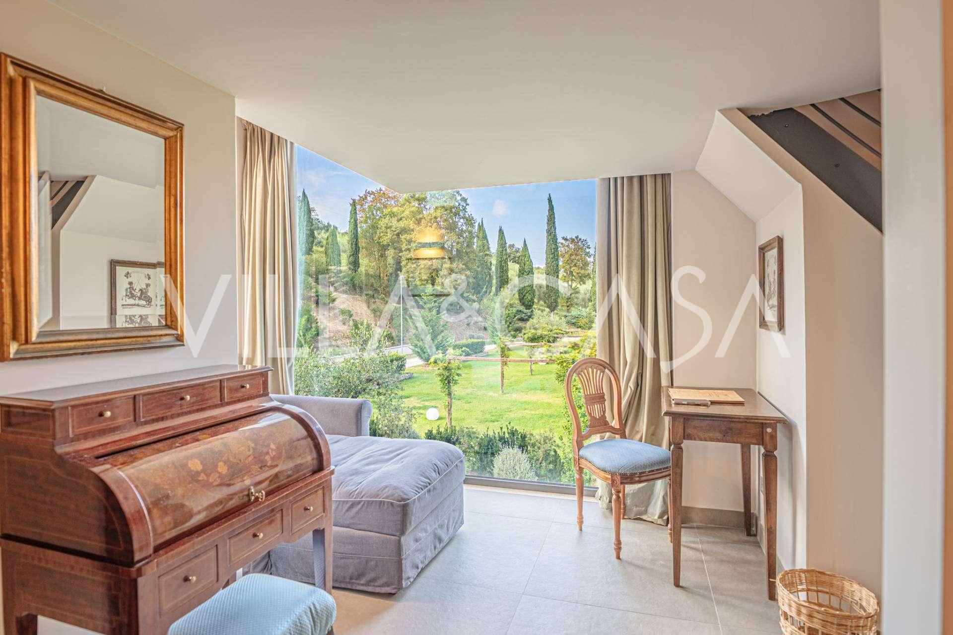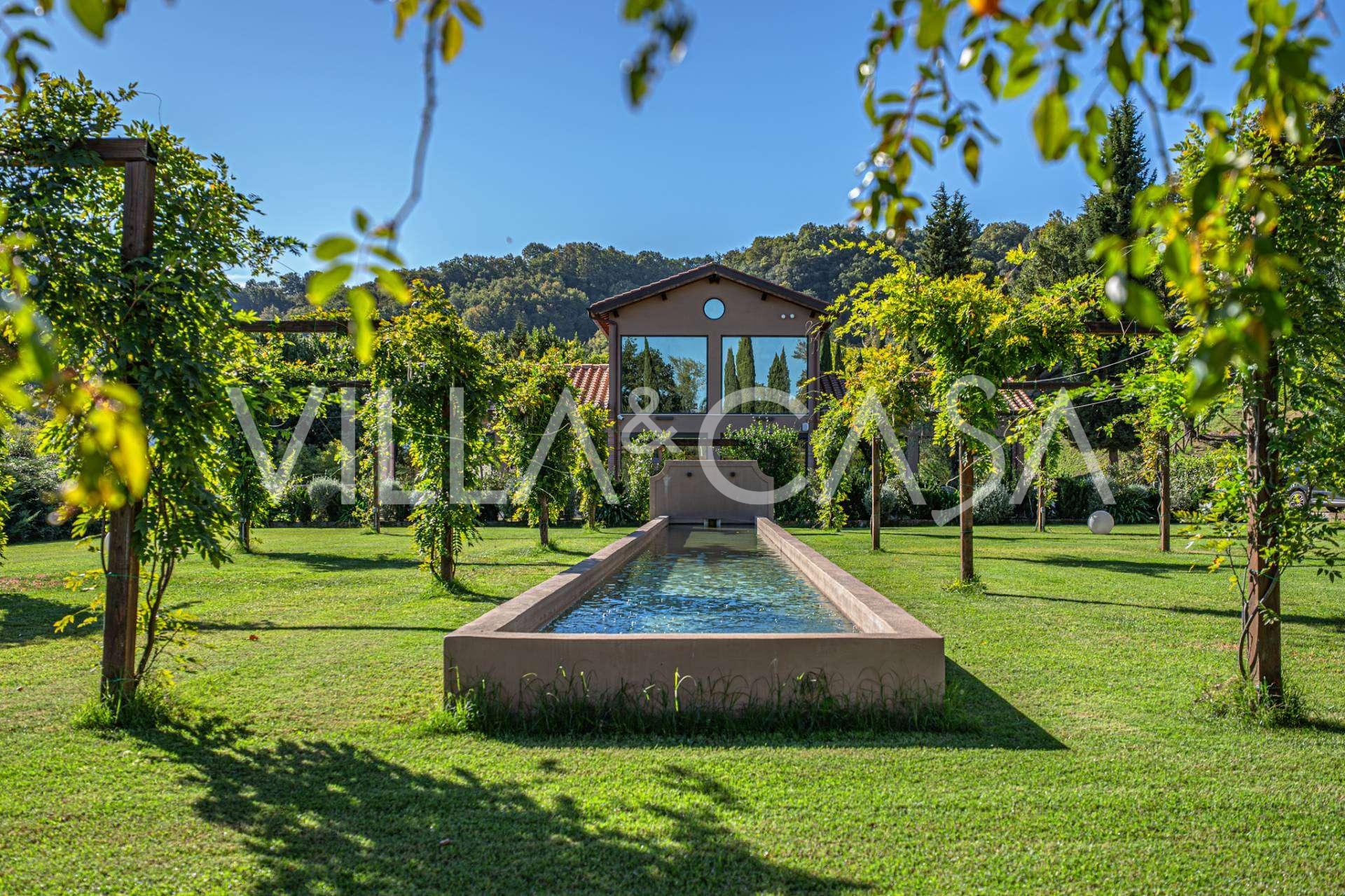 Questa struttura nella provincia di Viterbo si erge sulle colline, offrendo una vista incredibile sulla valle del Tevere. Occupa circa 25 ettari di parco curato, creando un'atmosfera di completa tranquillità e isolamento. Ogni spazio è progettato per il comfort, l'eleganza e l'armonia: grandi terrazze soleggiate, gazebo, raffinati lettini a bordo piscina e sentieri ombreggiati circondati da alberi secolari.