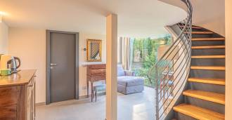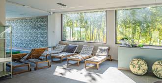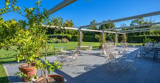 Accanto si trova un elegante bar con vista sul parco, dove rilassarsi con un aperitivo o godersi la tranquillità immersi nella natura.