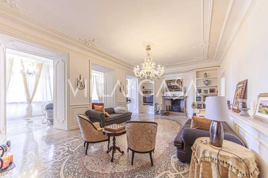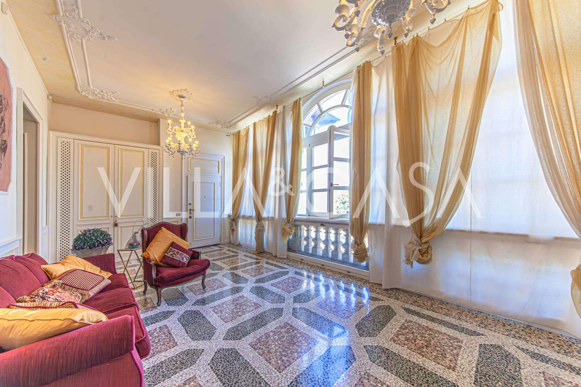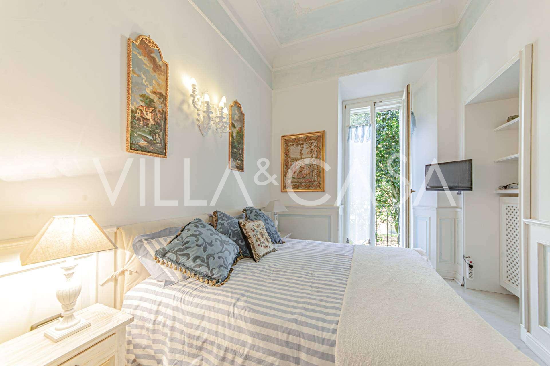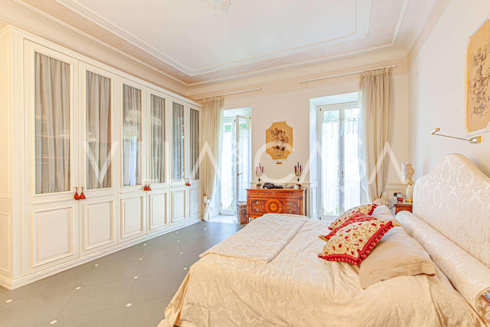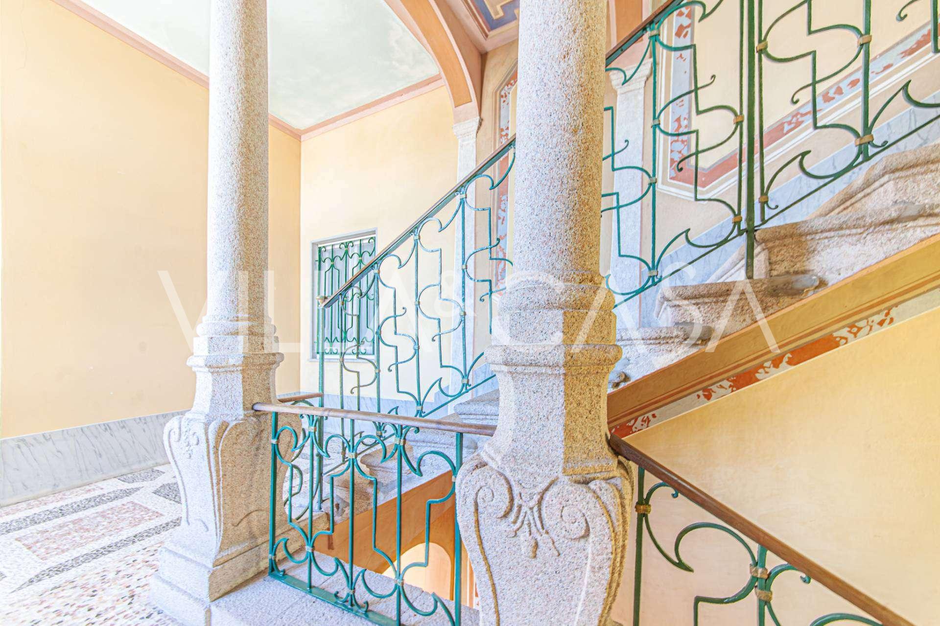 Gli appartamenti di oltre 270 m² si trovano al primo piano e sono accessibili tramite la storica scala principale con affreschi e colonne di granito rosa di Baveno. La spaziosa disposizione include una maestosa sala d'ingresso in marmo con vista panoramica sul lago, un lussuoso salone con camino e stucchi, una cucina con zona pranzo, un bagno per gli ospiti, un elegante bagno, una camera per gli ospiti, una camera per bambini con cabina armadio e una camera da letto principale con bagno privato.