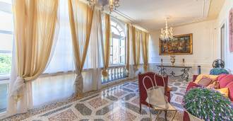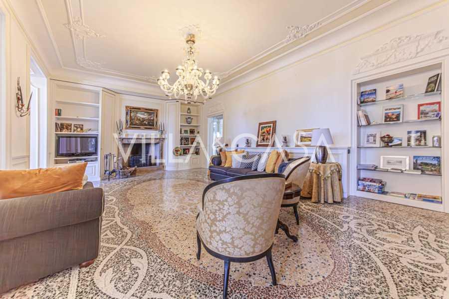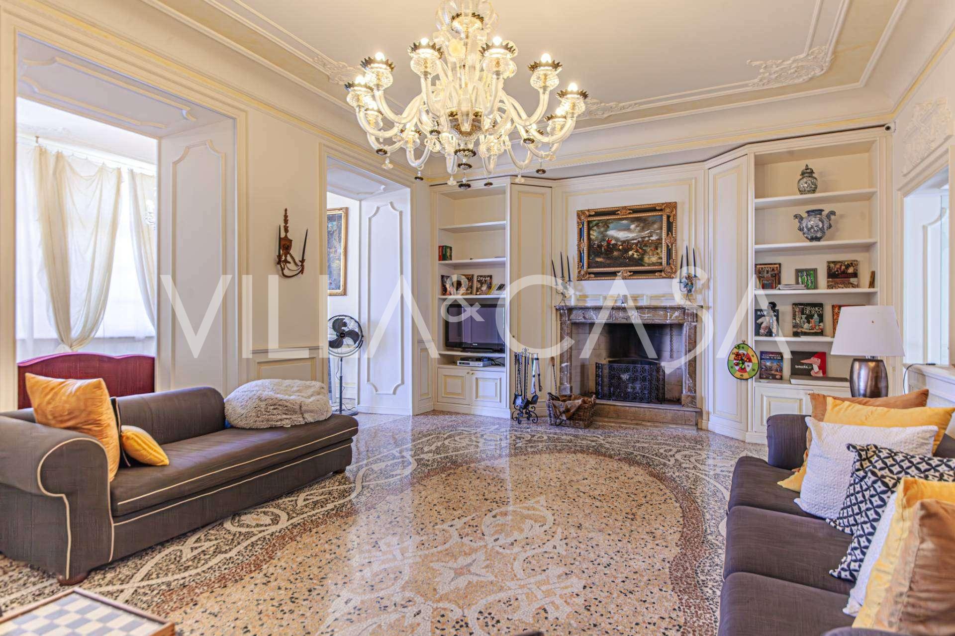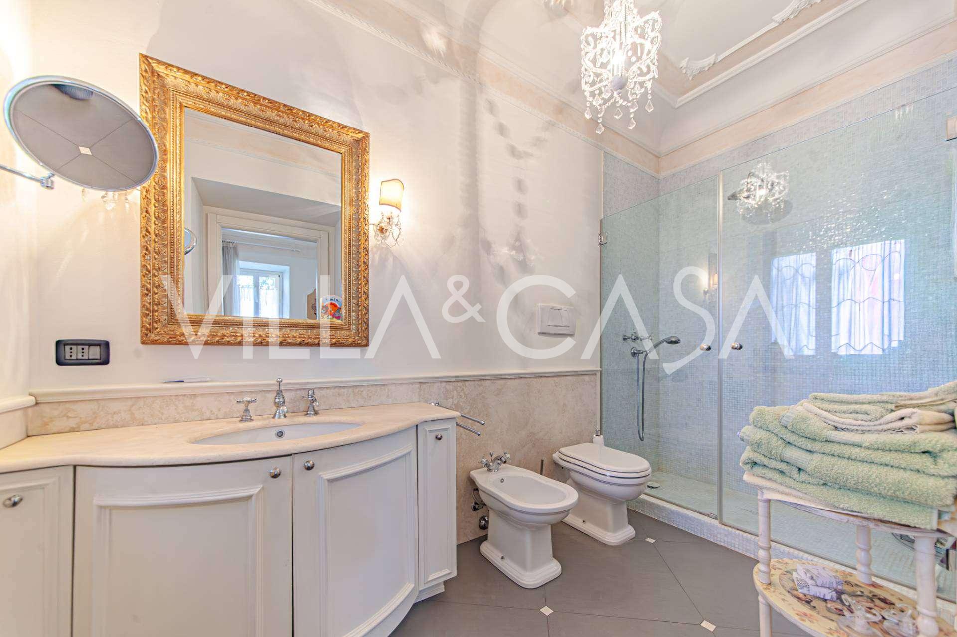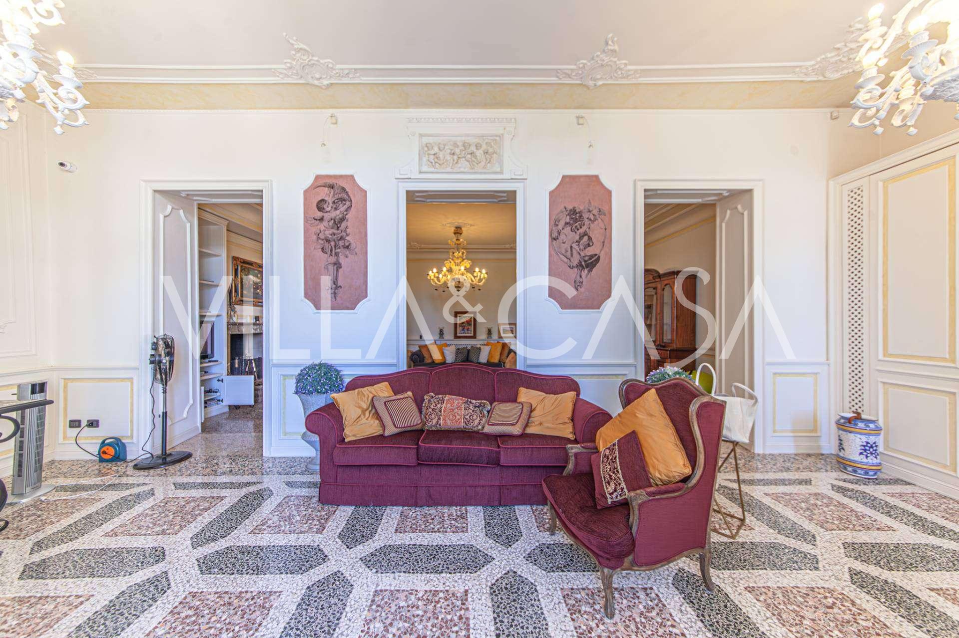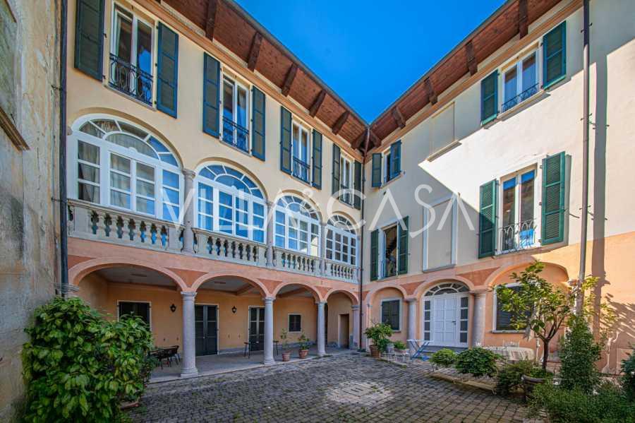 Gli appartamenti di oltre 270 m² si trovano al primo piano e sono accessibili tramite la storica scala principale con affreschi e colonne di granito rosa di Baveno. La spaziosa disposizione include una maestosa sala d'ingresso in marmo con vista panoramica sul lago, un lussuoso salone con camino e stucchi, una cucina con zona pranzo, un bagno per gli ospiti, un elegante bagno, una camera per gli ospiti, una camera per bambini con cabina armadio e una camera da letto principale con bagno privato.