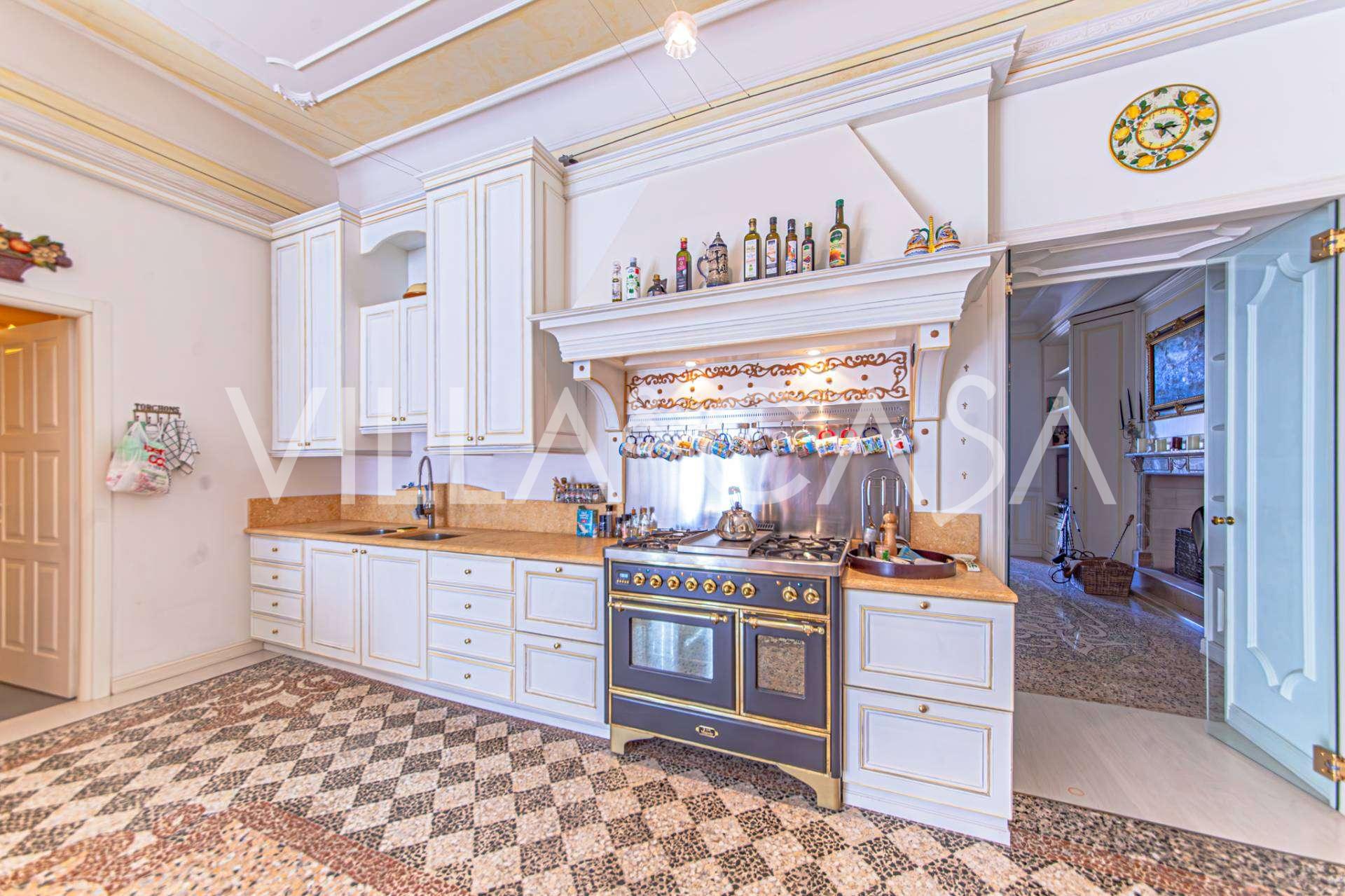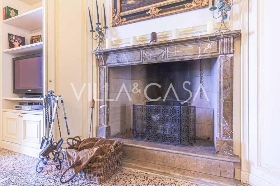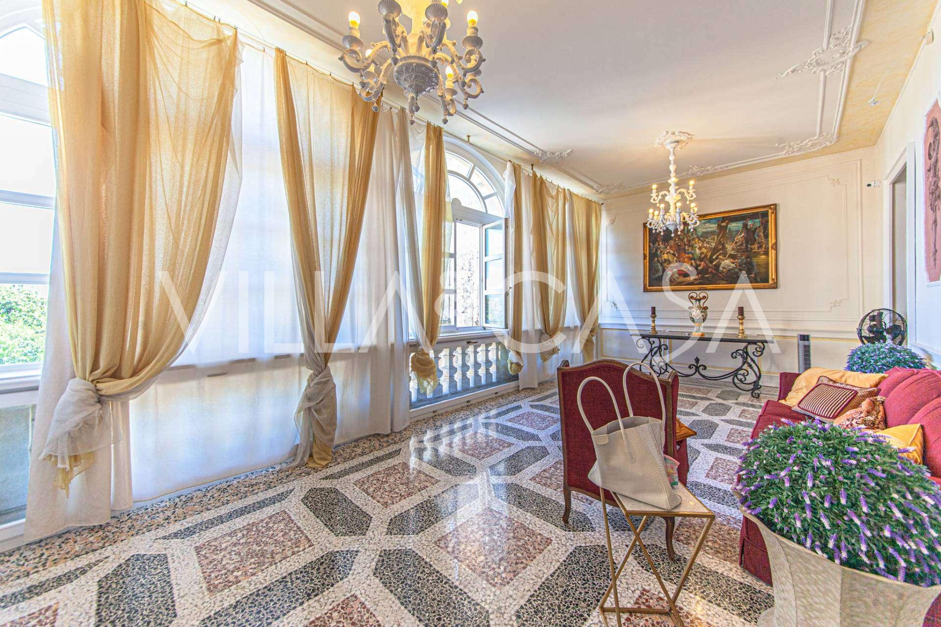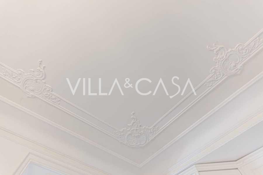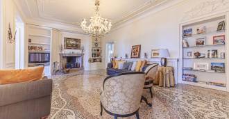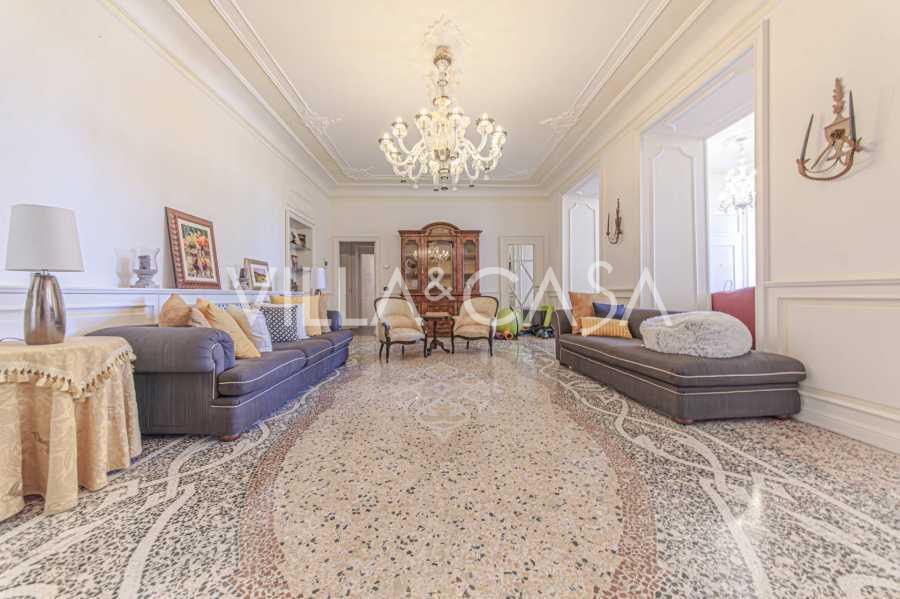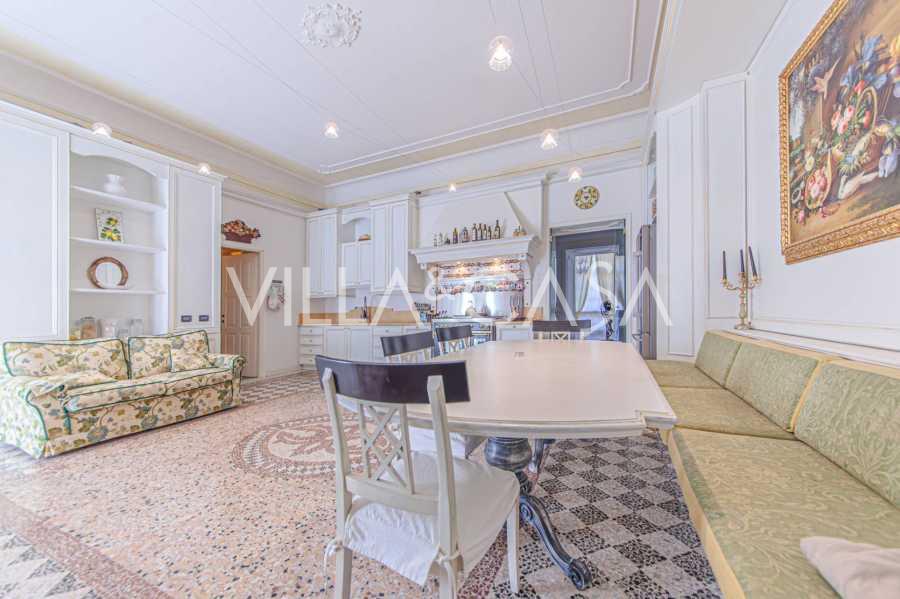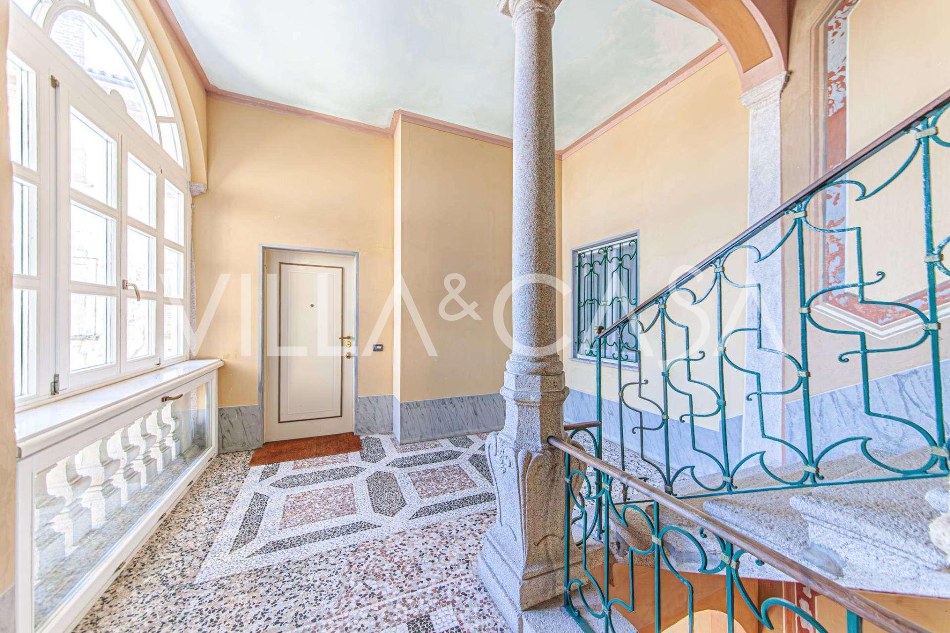 Gli appartamenti di oltre 270 m² si trovano al primo piano e sono accessibili tramite la storica scala principale con affreschi e colonne di granito rosa di Baveno. La spaziosa disposizione include una maestosa sala d'ingresso in marmo con vista panoramica sul lago, un lussuoso salone con camino e stucchi, una cucina con zona pranzo, un bagno per gli ospiti, un elegante bagno, una camera per gli ospiti, una camera per bambini con cabina armadio e una camera da letto principale con bagno privato.