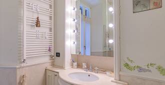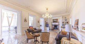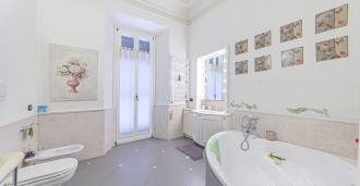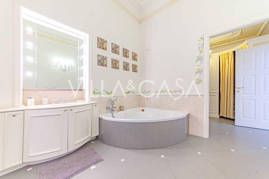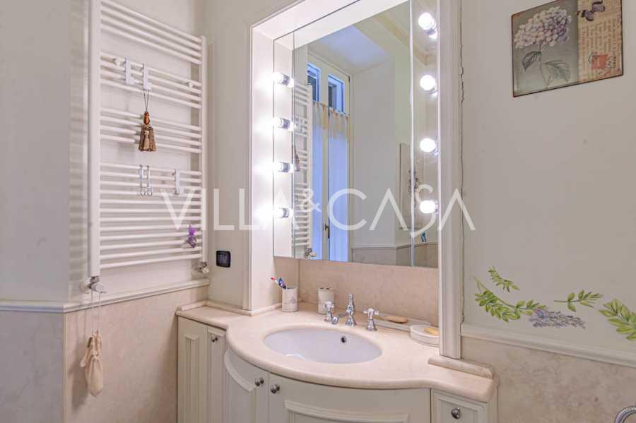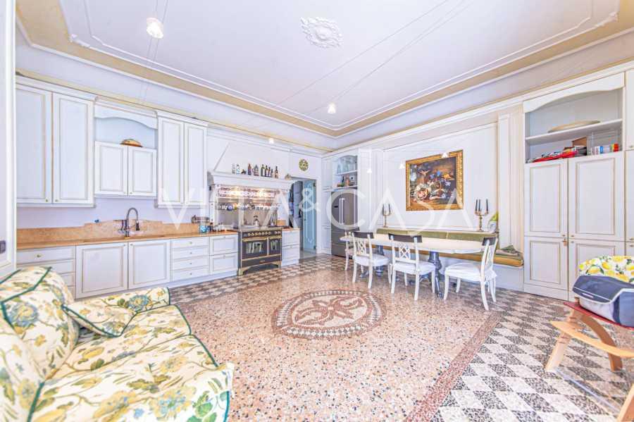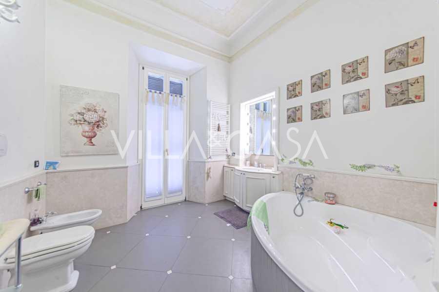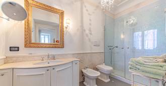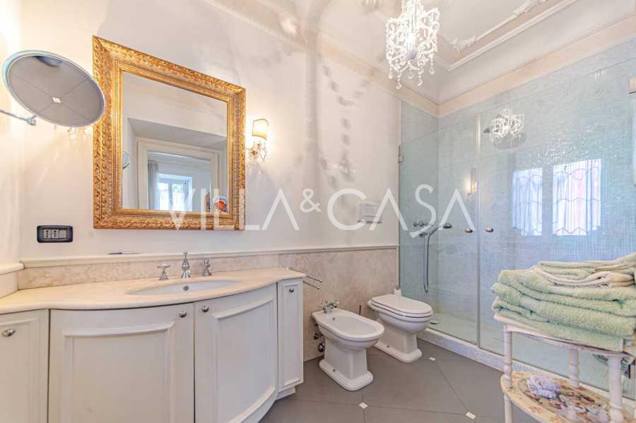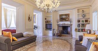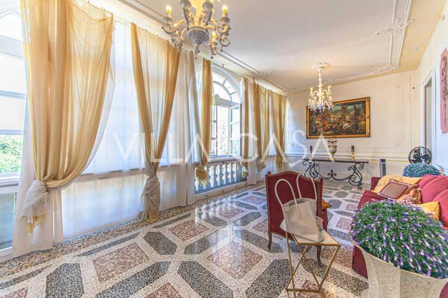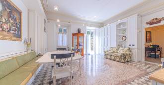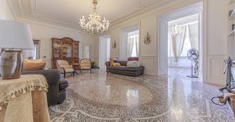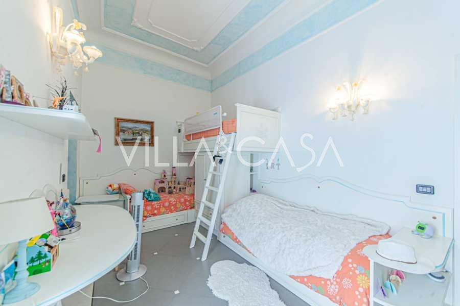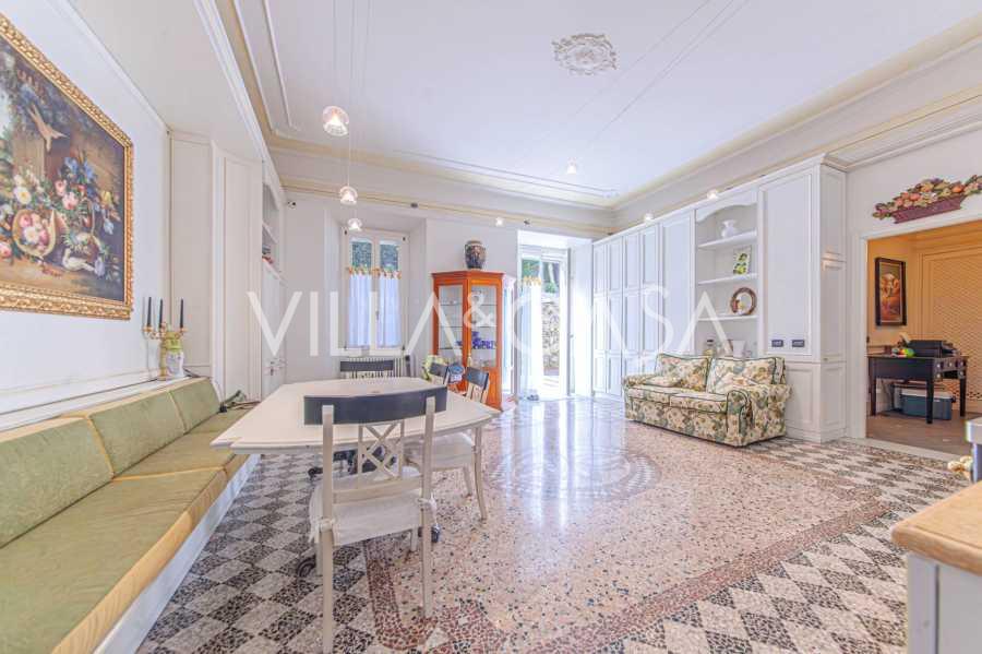 Gli appartamenti di oltre 270 m² si trovano al primo piano e sono accessibili tramite la storica scala principale con affreschi e colonne di granito rosa di Baveno. La spaziosa disposizione include una maestosa sala d'ingresso in marmo con vista panoramica sul lago, un lussuoso salone con camino e stucchi, una cucina con zona pranzo, un bagno per gli ospiti, un elegante bagno, una camera per gli ospiti, una camera per bambini con cabina armadio e una camera da letto principale con bagno privato.