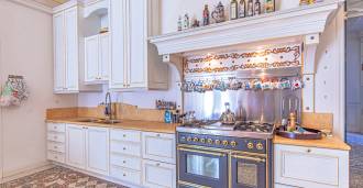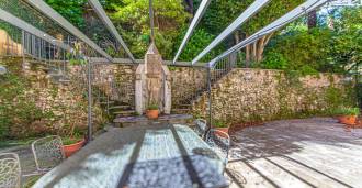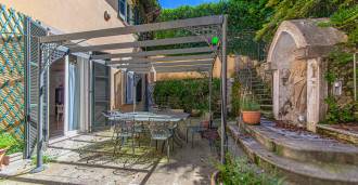Dalla cucina si può accedere a un ampio patio privato, ideale per il relax estivo e l'accoglienza degli ospiti: area barbecue, pergola e giardino terrazzato creano l'atmosfera di una casa di campagna appartata.