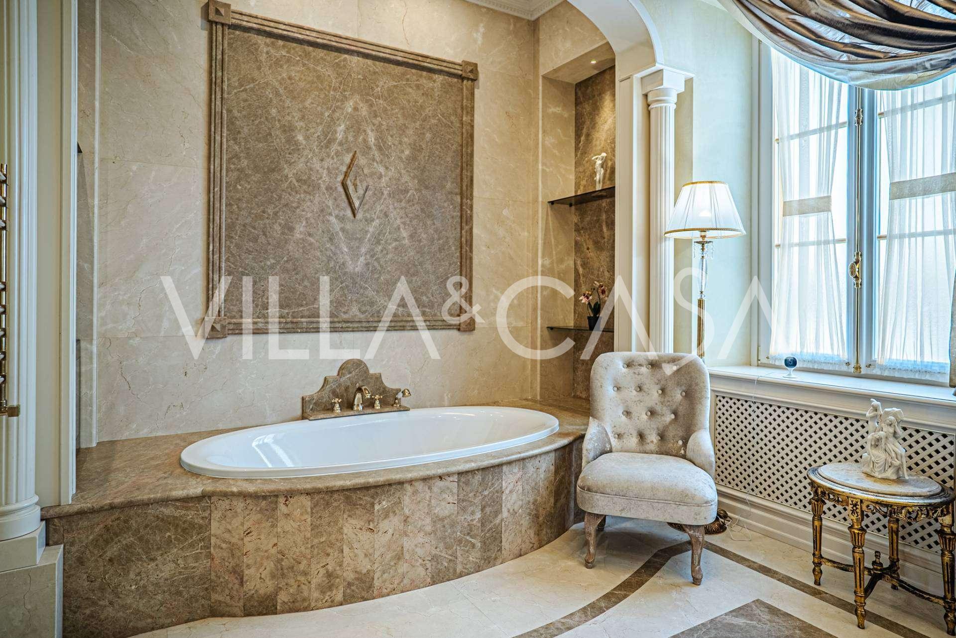 - una lussuosa master suite con cabina armadio semicircolare e un magnifico bagno in marmo naturale con vasca separata, cabina doccia e toilette, oltre all'accesso a una terrazza con vista sul mare,