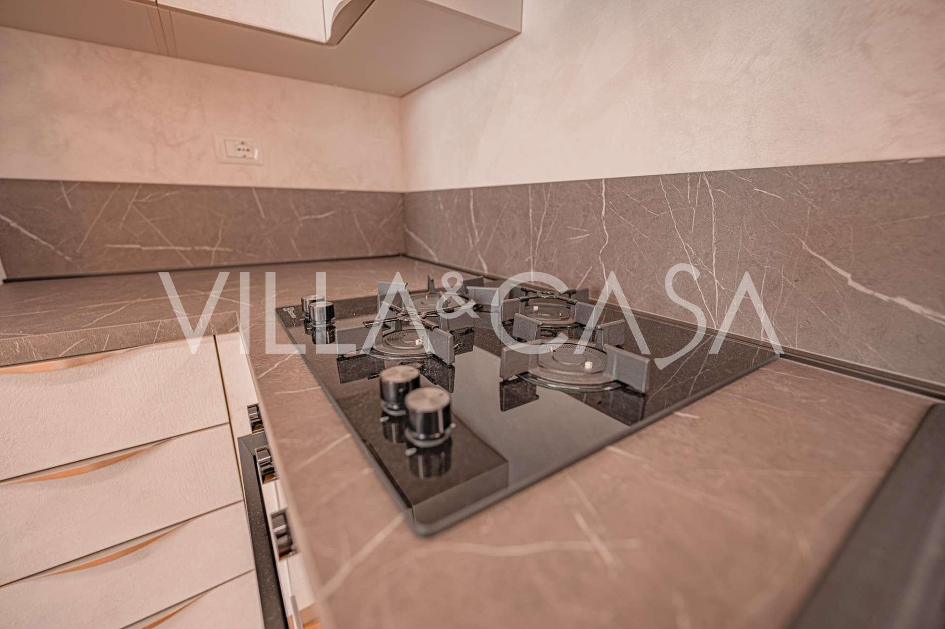 Il fiore all'occhiello dell'appartamento è una spettacolare terrazza di 80 m², attrezzata con un'area relax e una doccia privata, ideale per il relax all'aperto. Una seconda terrazza di circa 15 m² offre una vista mozzafiato sul mare e sulla maestosa Chiesa Ortodossa Russa.