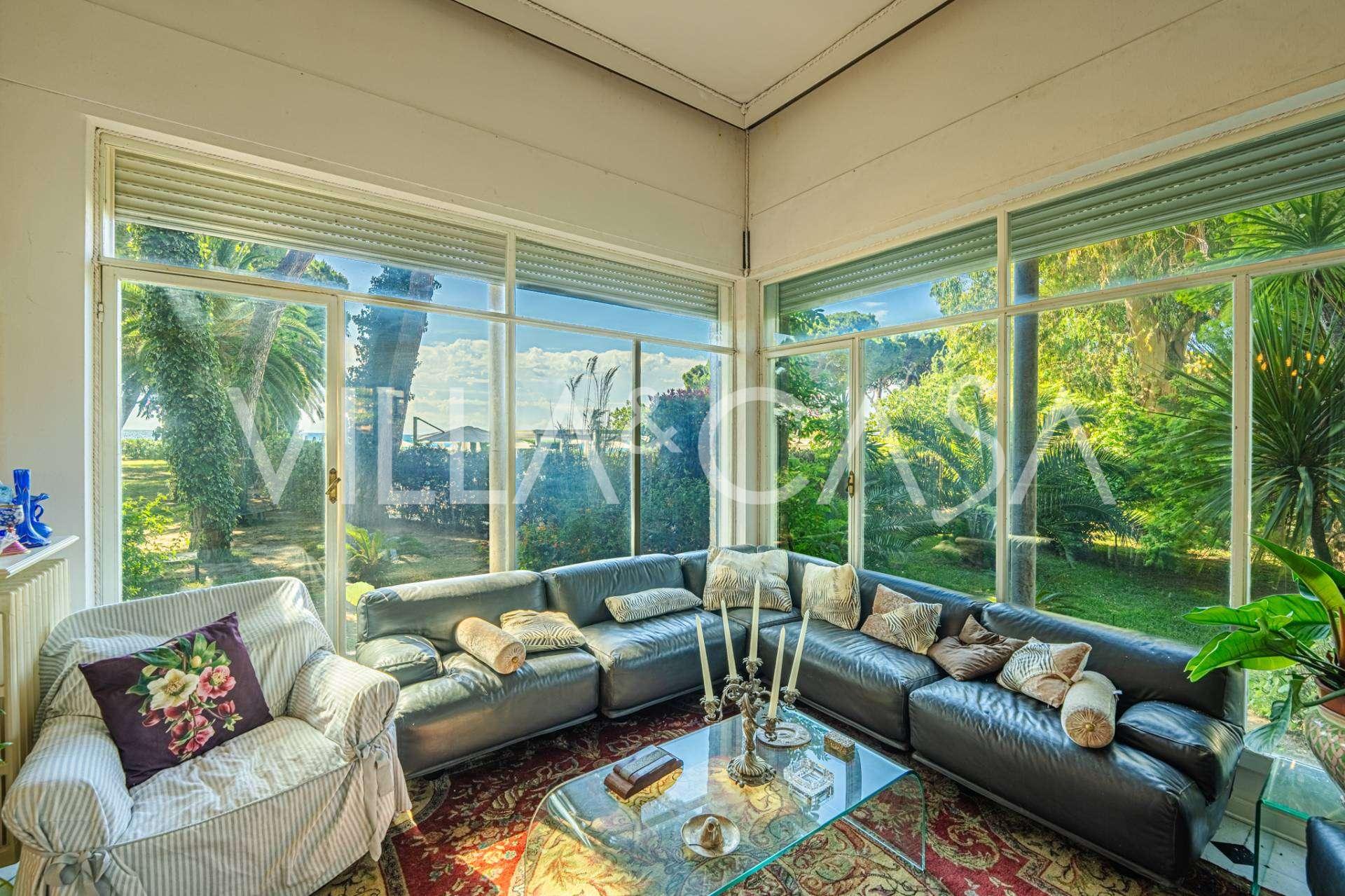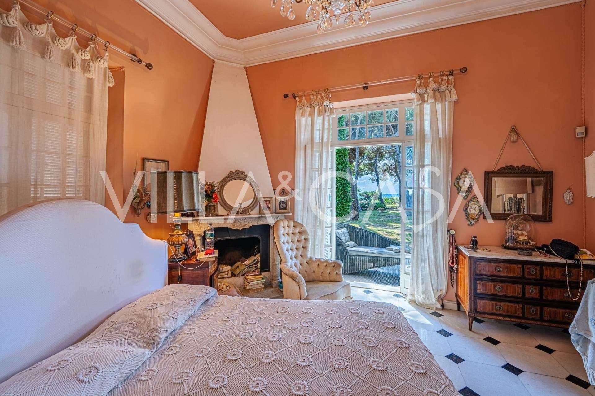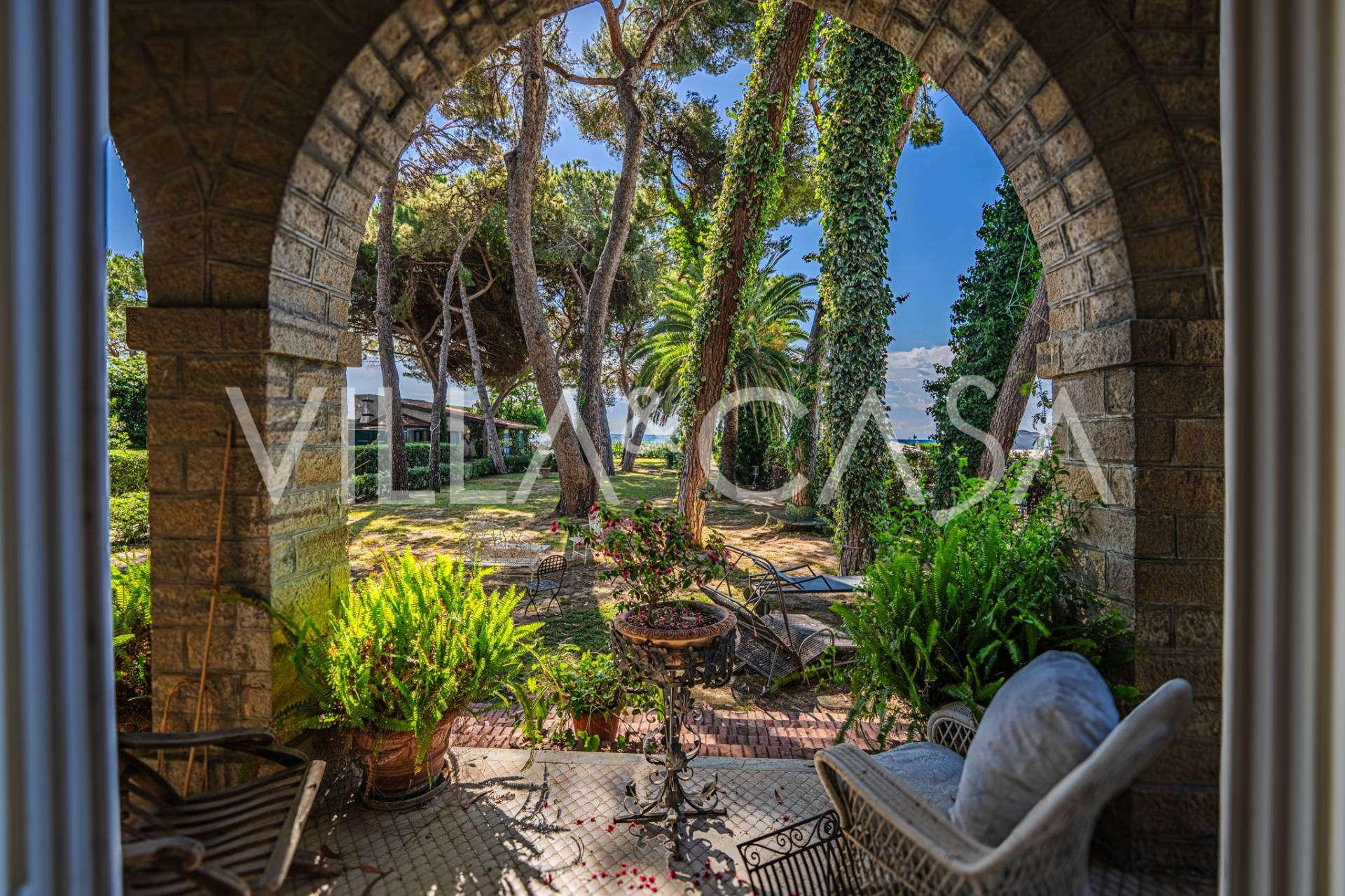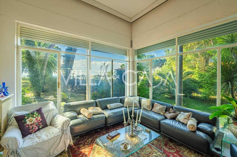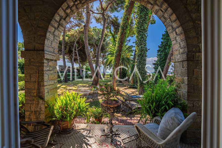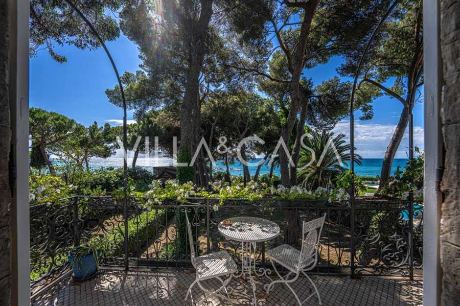 In vendita una villa elegante in stile inglese situata sulla prima linea di costa a Diano Marina, con una superficie di circa 628 m2, distribuita su quattro livelli. La proprietà offre accesso diretto al mare e alla spiaggia di sabbia. La villa è circondata da un ampio parco di circa 5000 m2 con pini mediterranei secolari.