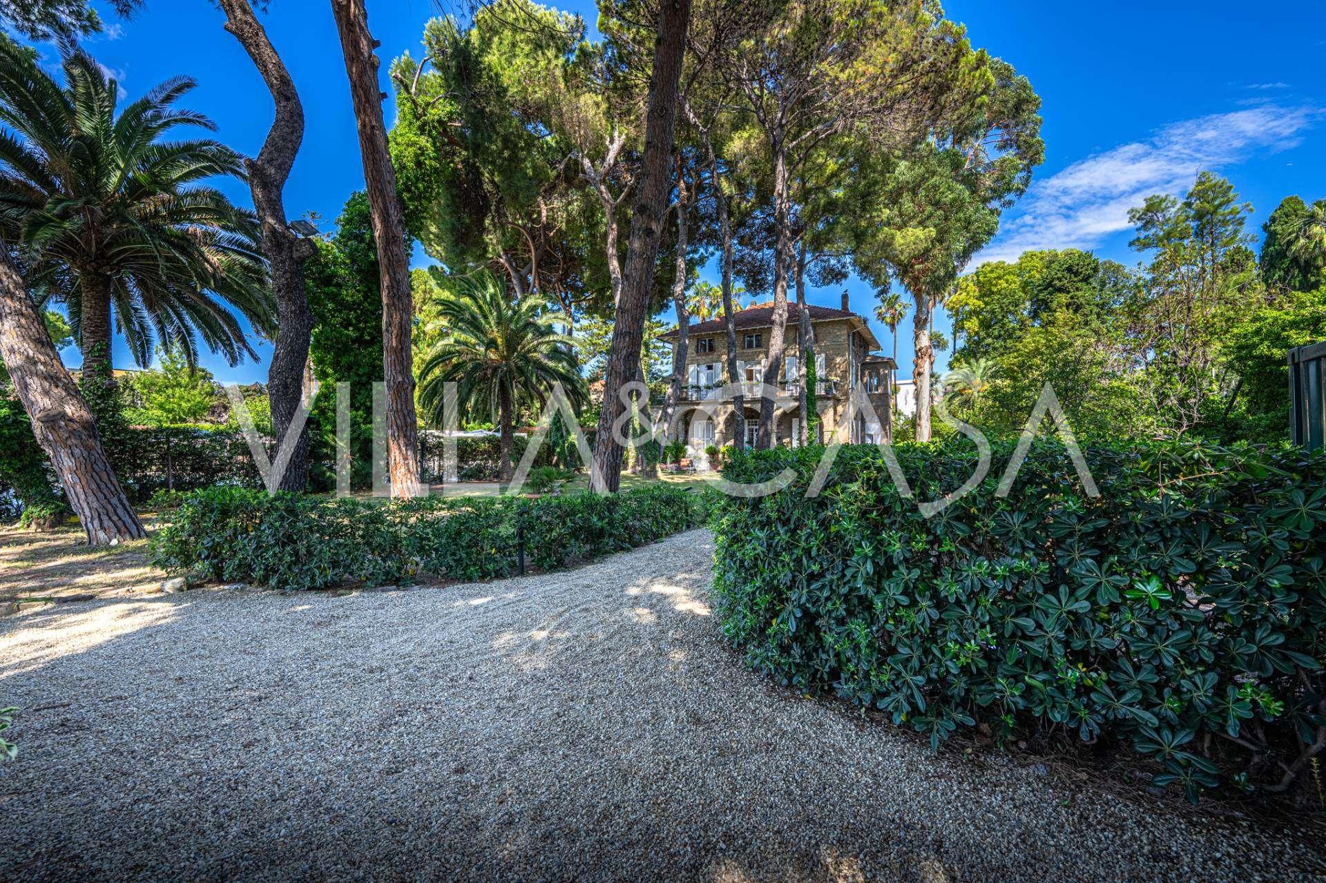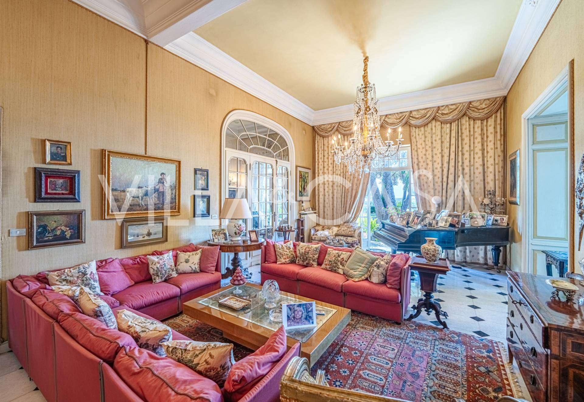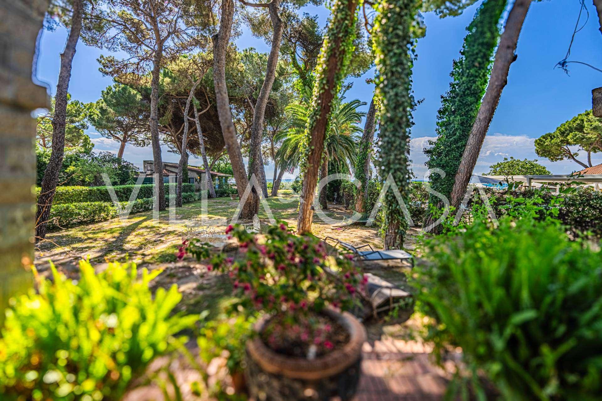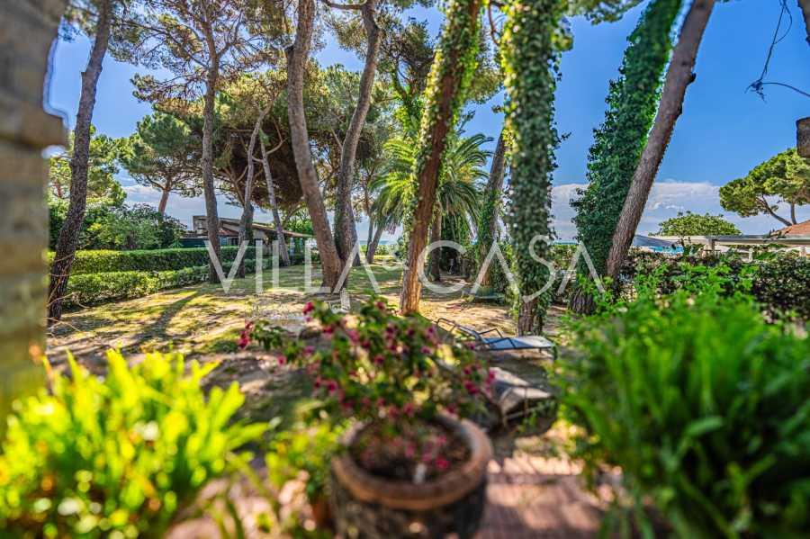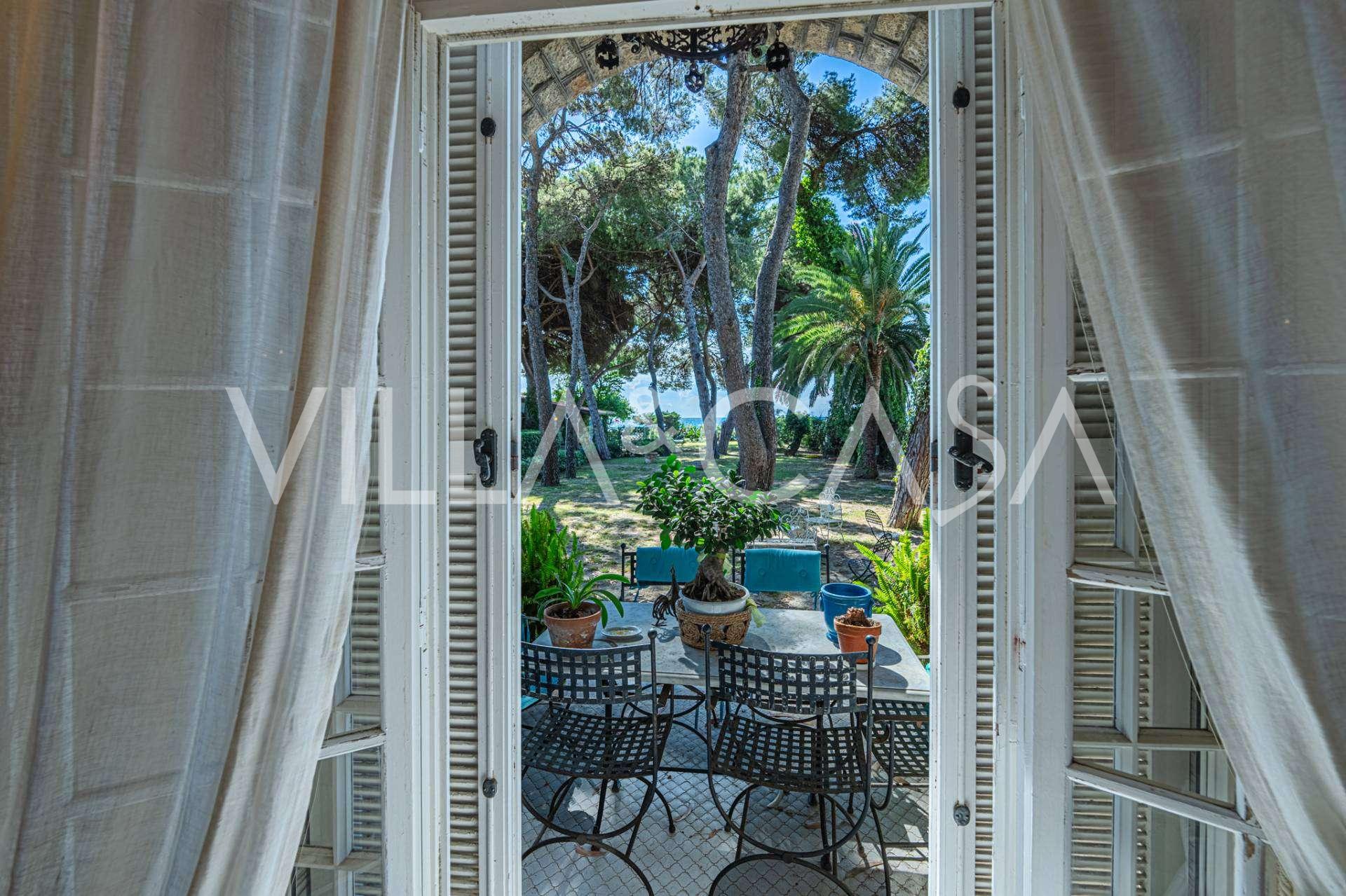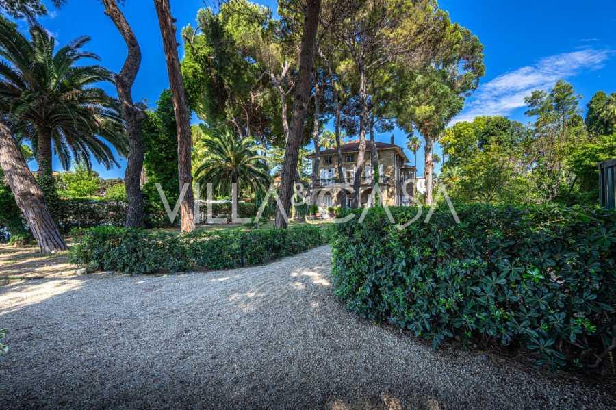 In vendita una villa elegante in stile inglese situata sulla prima linea di costa a Diano Marina, con una superficie di circa 628 m2, distribuita su quattro livelli. La proprietà offre accesso diretto al mare e alla spiaggia di sabbia. La villa è circondata da un ampio parco di circa 5000 m2 con pini mediterranei secolari.