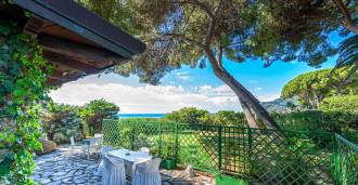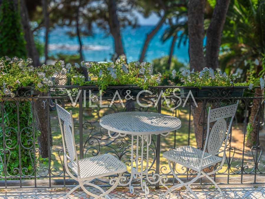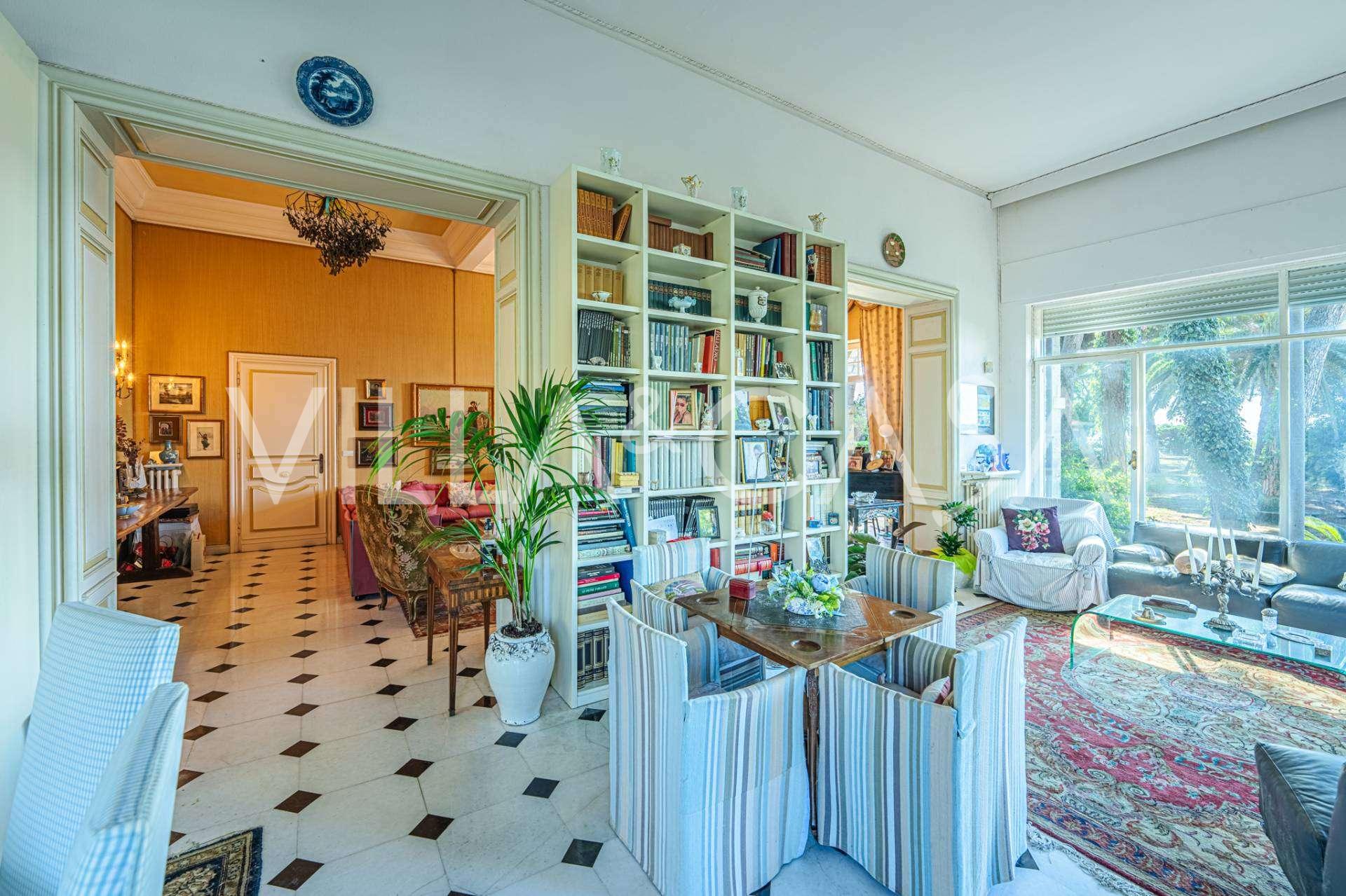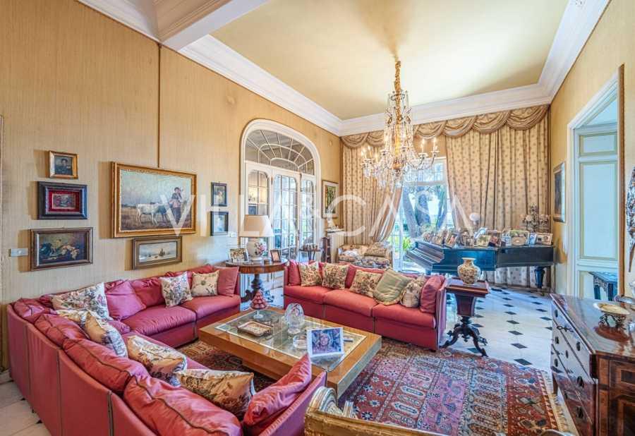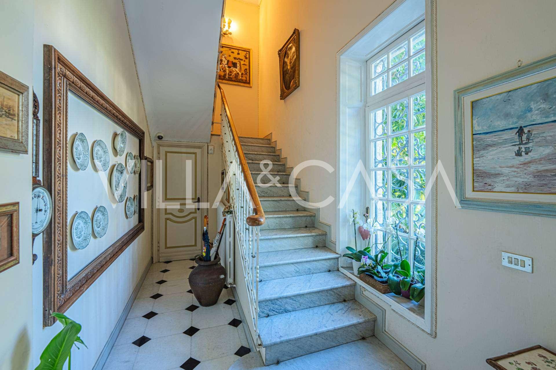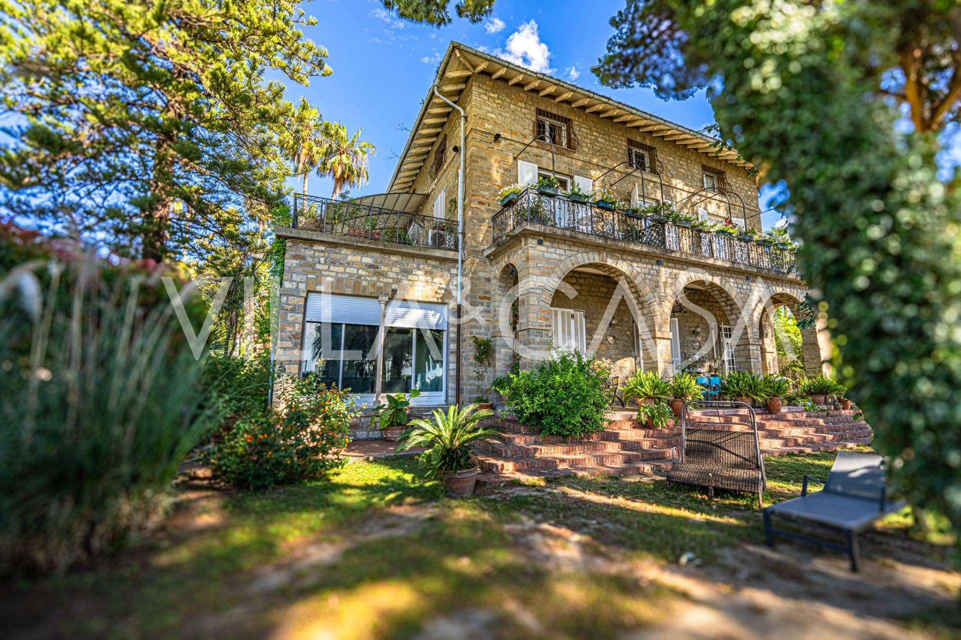 In vendita una villa elegante in stile inglese situata sulla prima linea di costa a Diano Marina, con una superficie di circa 628 m2, distribuita su quattro livelli. La proprietà offre accesso diretto al mare e alla spiaggia di sabbia. La villa è circondata da un ampio parco di circa 5000 m2 con pini mediterranei secolari.