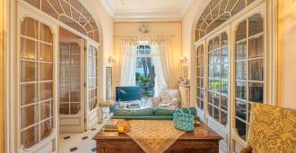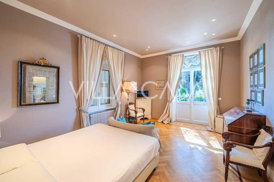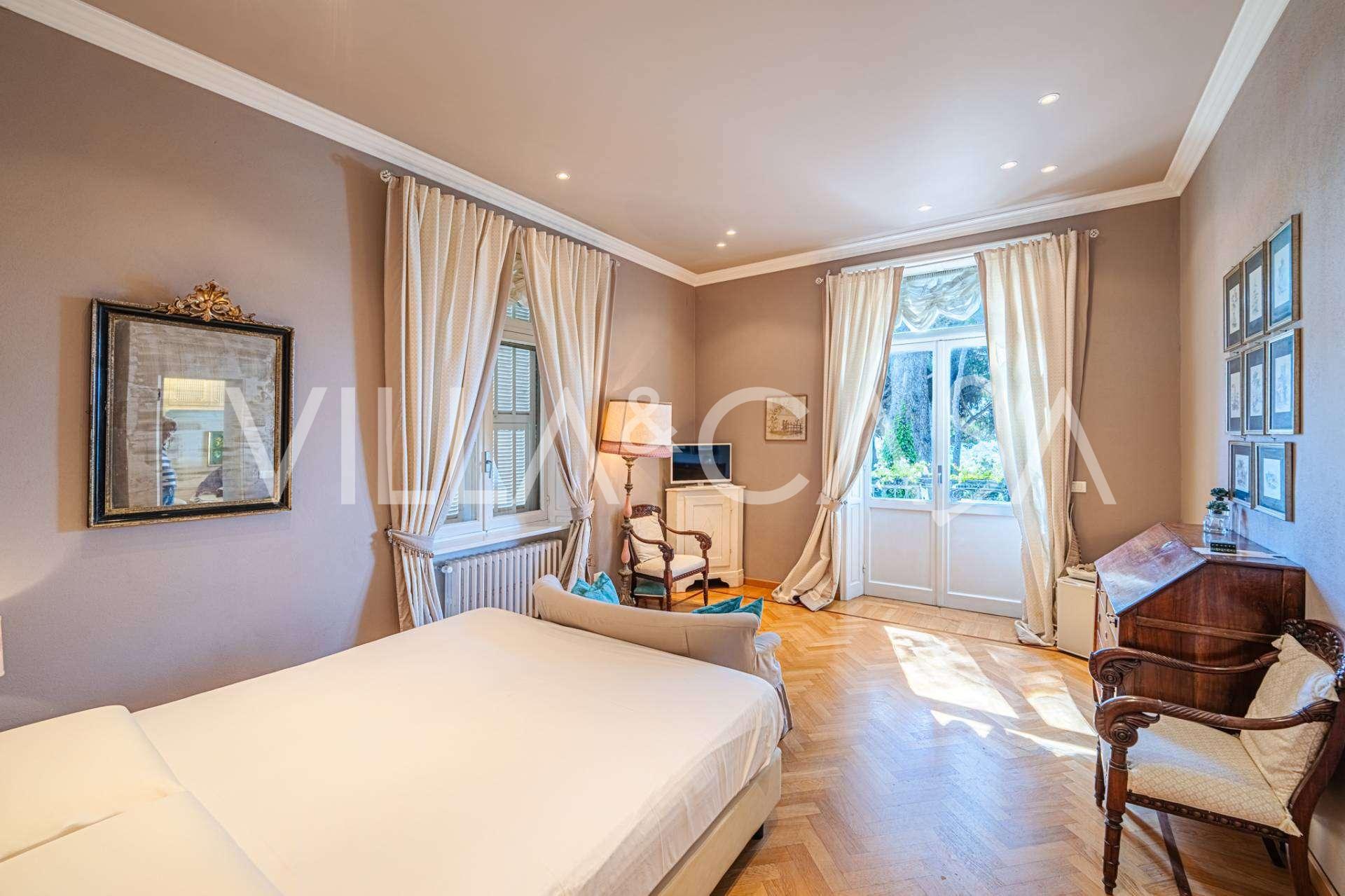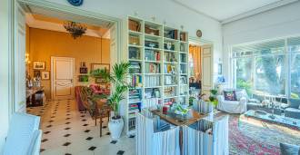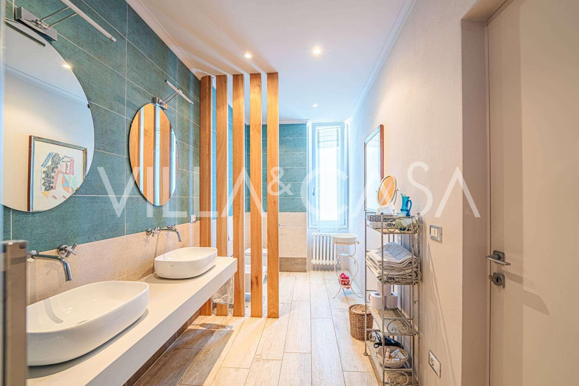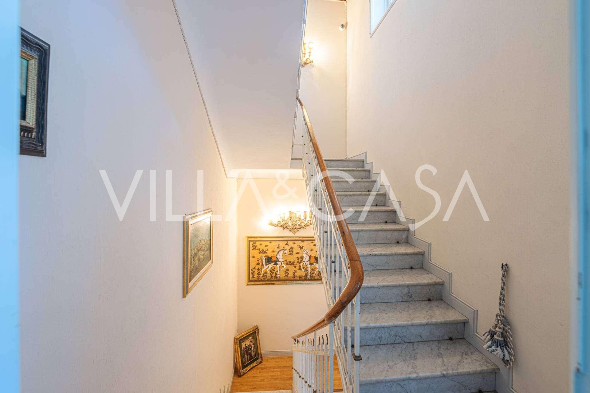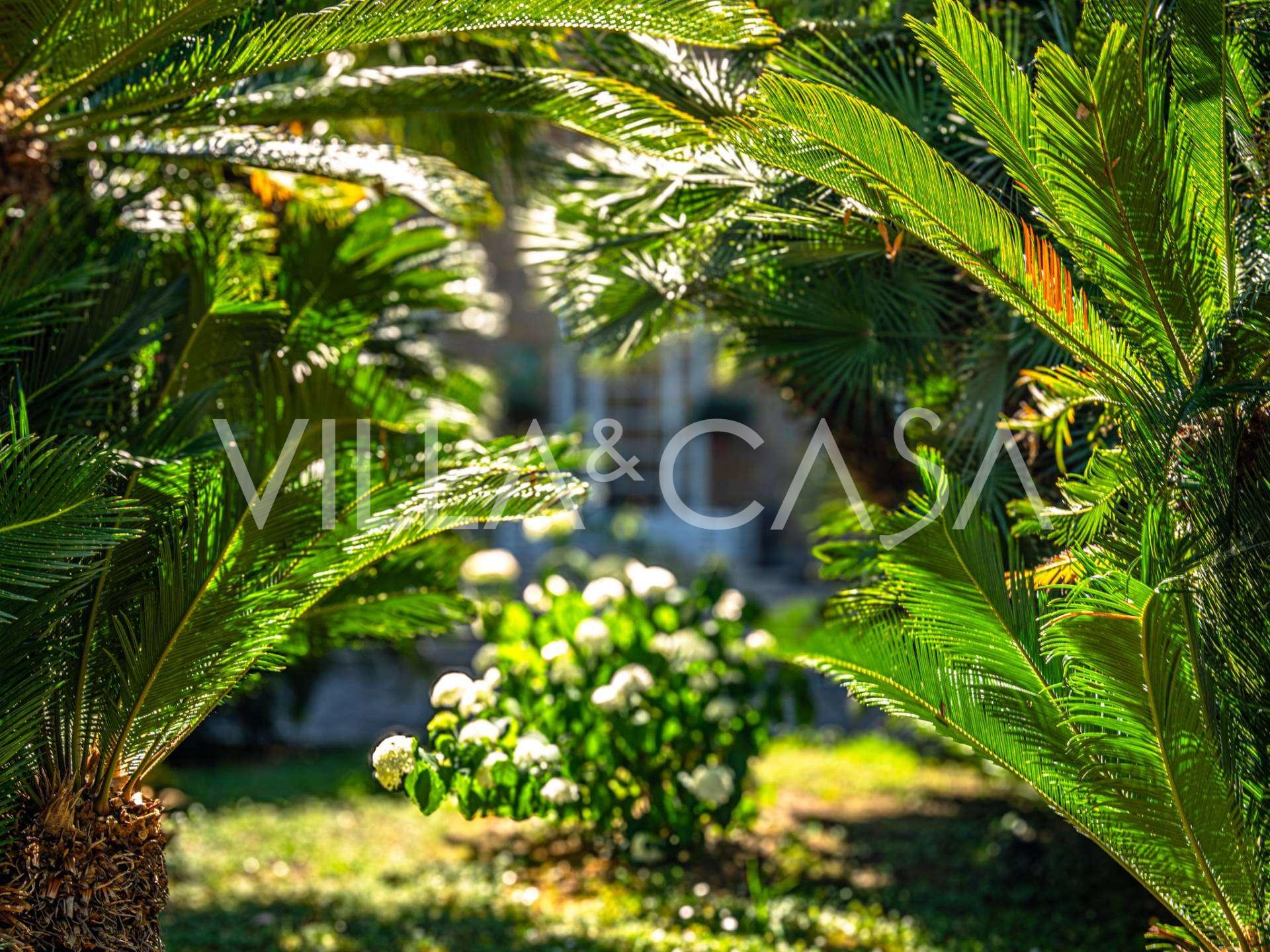 In vendita una villa elegante in stile inglese situata sulla prima linea di costa a Diano Marina, con una superficie di circa 628 m2, distribuita su quattro livelli. La proprietà offre accesso diretto al mare e alla spiaggia di sabbia. La villa è circondata da un ampio parco di circa 5000 m2 con pini mediterranei secolari.