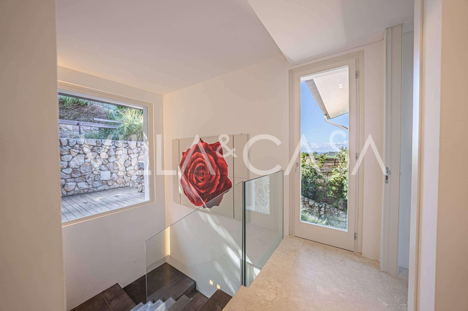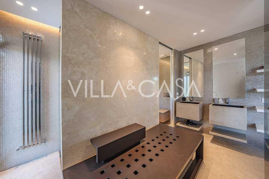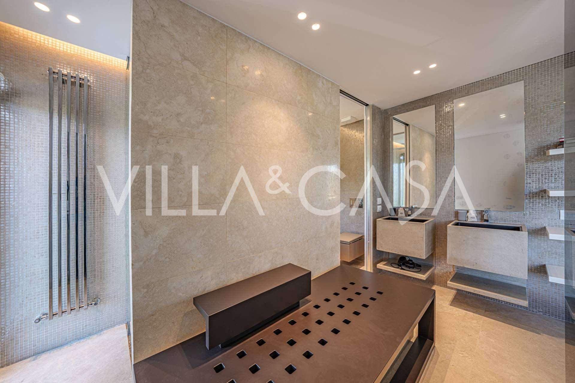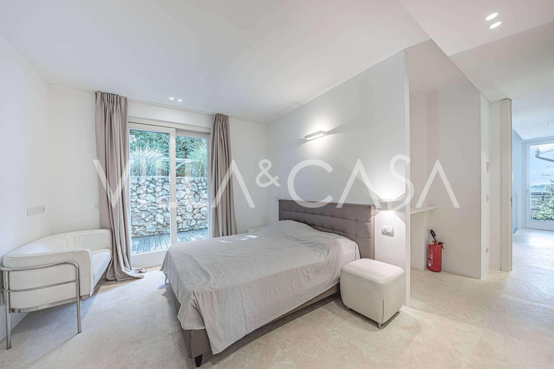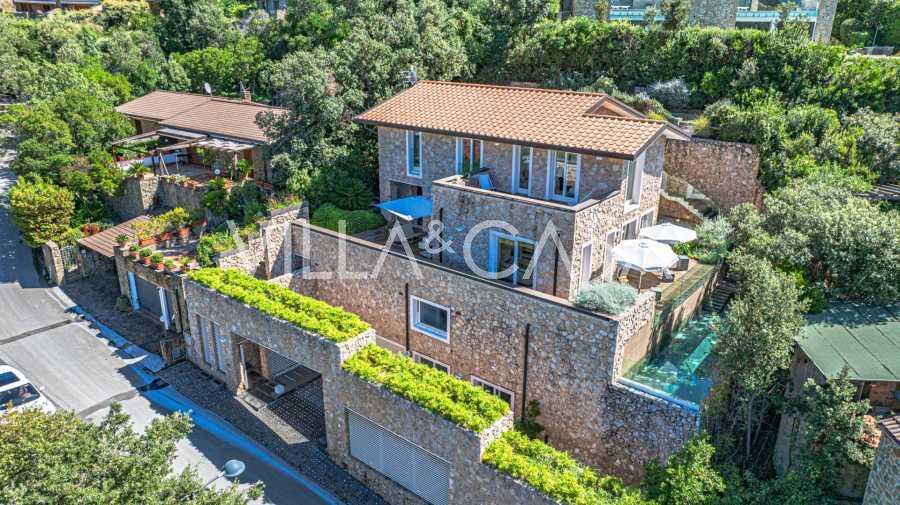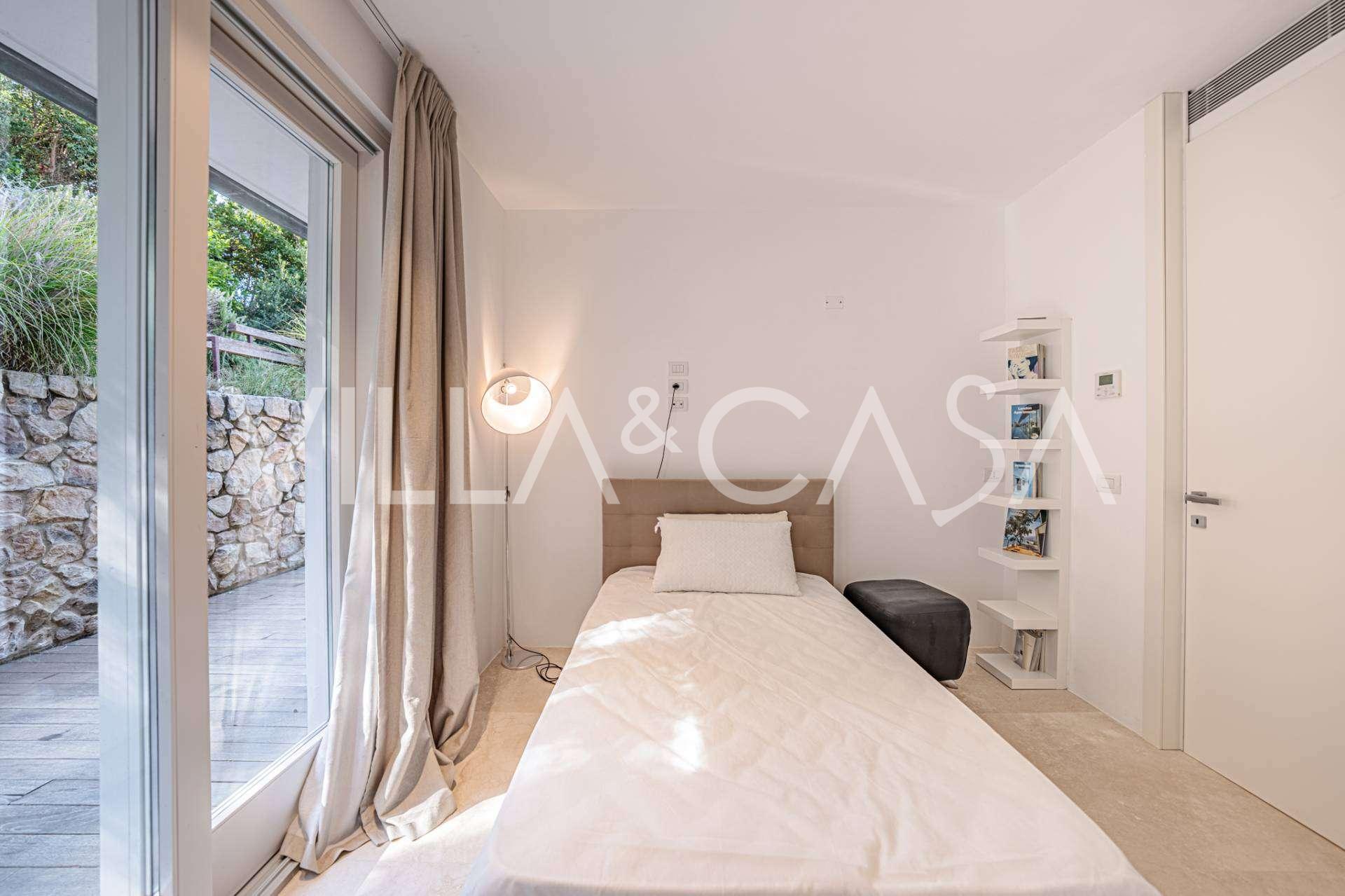 Recentemente completamente rinnovata e distribuita su quattro livelli, collegati da un ascensore interno, la residenza dimostra una rara eleganza e una funzionalità raffinata. L'architettura con le sue linee impeccabili e le facciate in vetro crea un'armonia tra gli spazi interni e le affascinanti terrazze. La villa è circondata da un curato giardino terrazzato di 500 m², offrendo ai proprietari privacy e tranquillità, dove si nasconde anche un'elegante area relax con piscina.