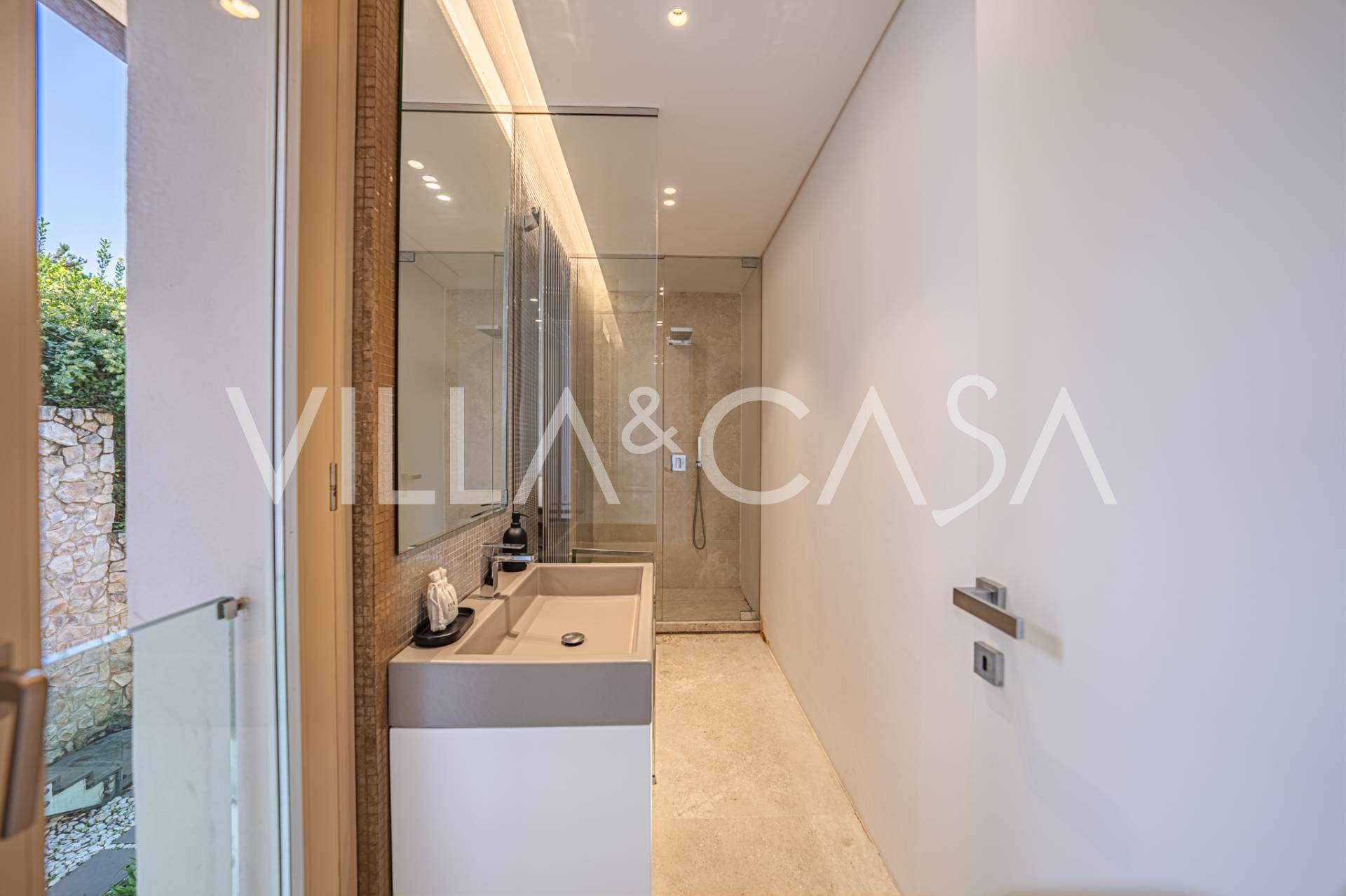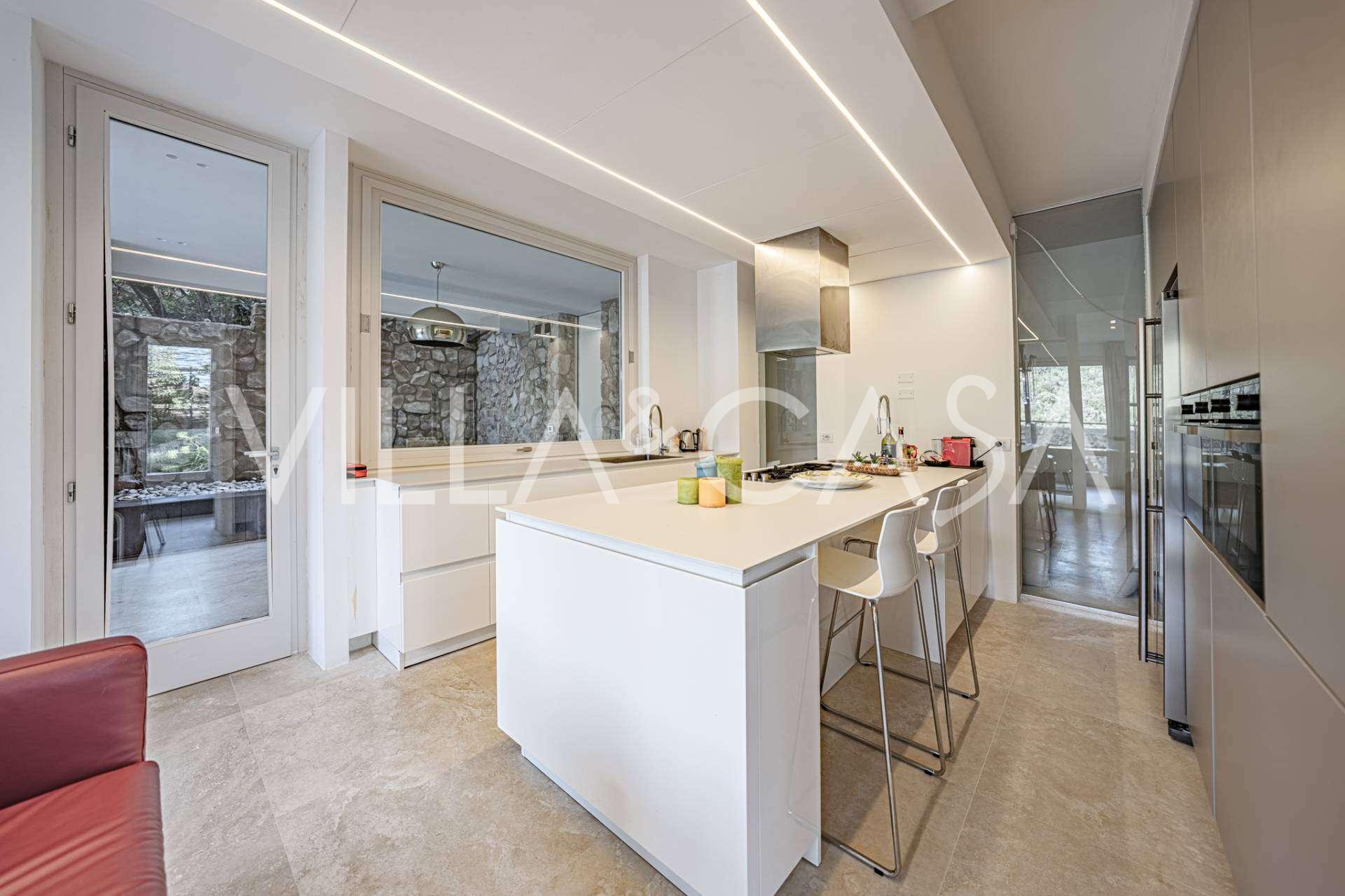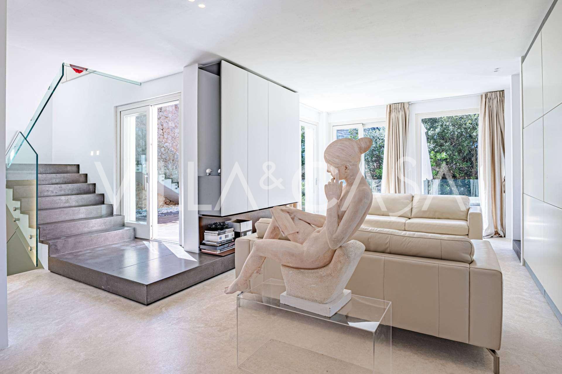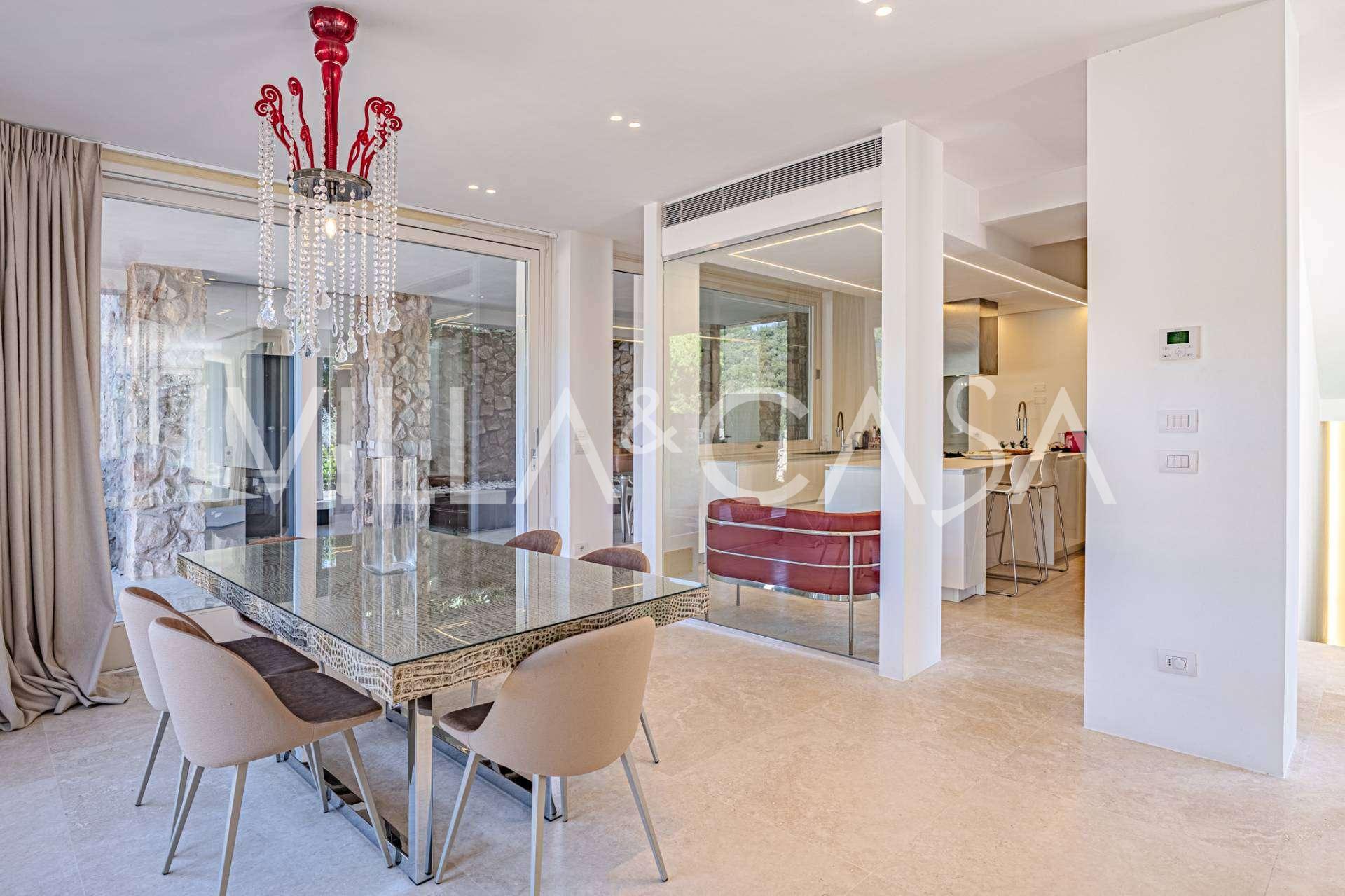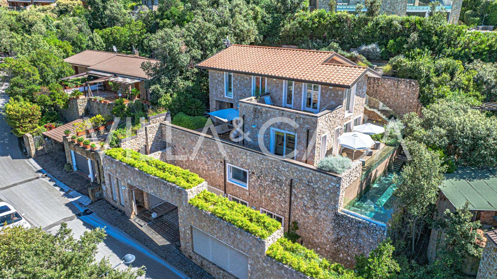 Recentemente completamente rinnovata e distribuita su quattro livelli, collegati da un ascensore interno, la residenza dimostra una rara eleganza e una funzionalità raffinata. L'architettura con le sue linee impeccabili e le facciate in vetro crea un'armonia tra gli spazi interni e le affascinanti terrazze. La villa è circondata da un curato giardino terrazzato di 500 m², offrendo ai proprietari privacy e tranquillità, dove si nasconde anche un'elegante area relax con piscina.