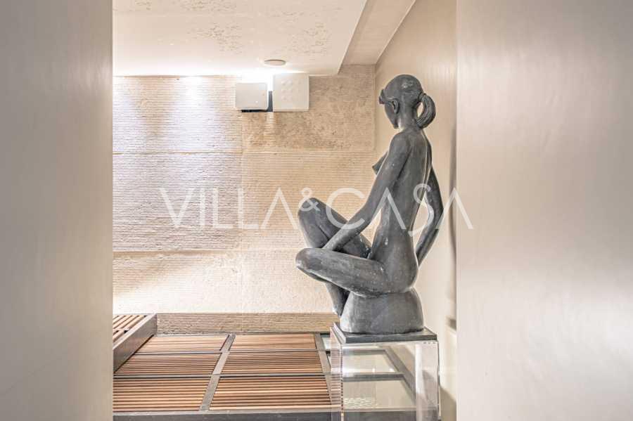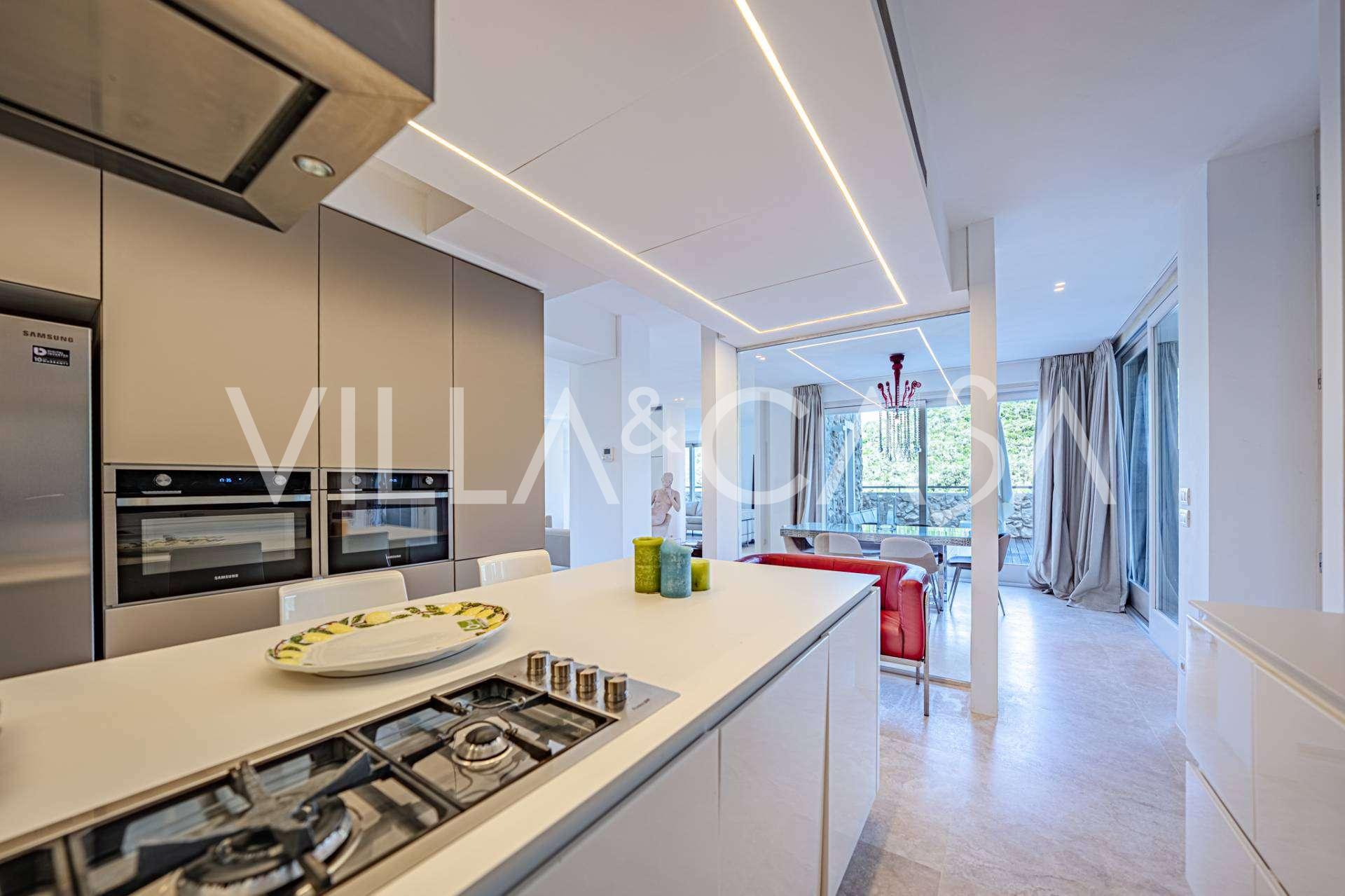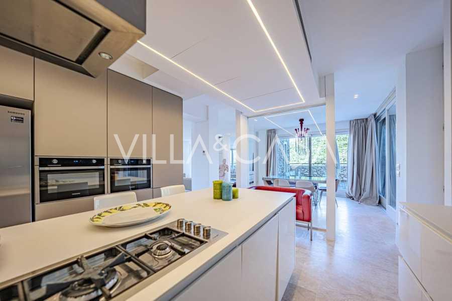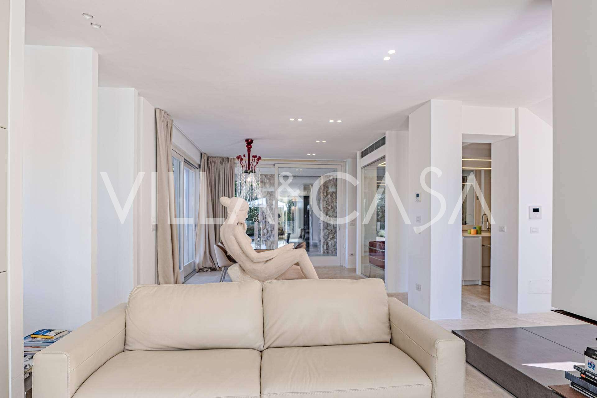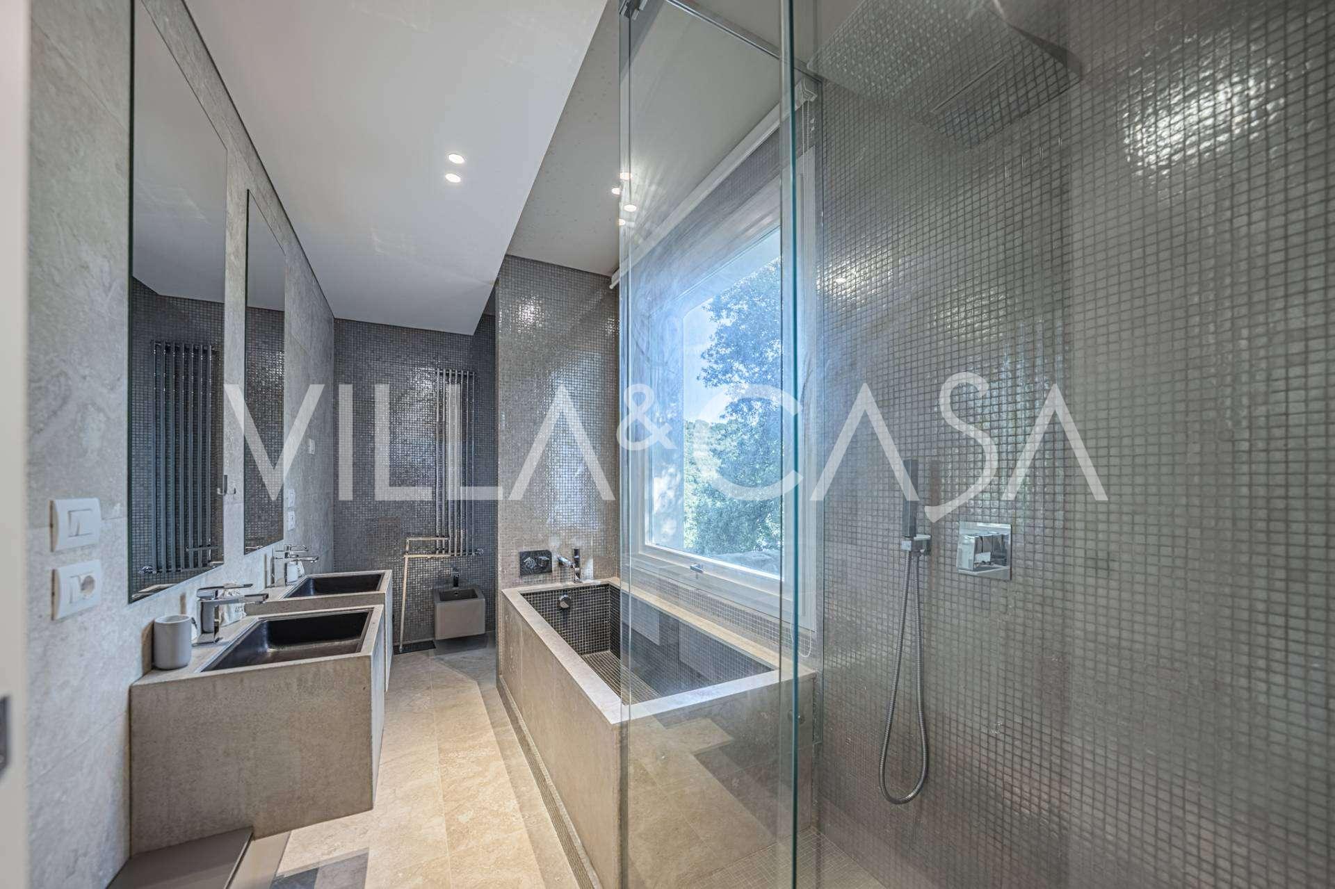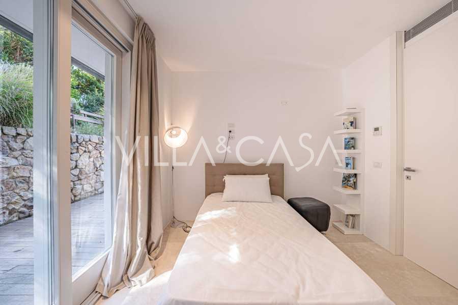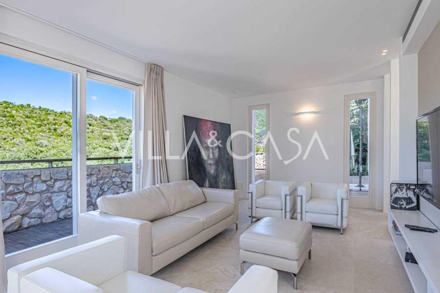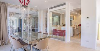 Recentemente completamente rinnovata e distribuita su quattro livelli, collegati da un ascensore interno, la residenza dimostra una rara eleganza e una funzionalità raffinata. L'architettura con le sue linee impeccabili e le facciate in vetro crea un'armonia tra gli spazi interni e le affascinanti terrazze. La villa è circondata da un curato giardino terrazzato di 500 m², offrendo ai proprietari privacy e tranquillità, dove si nasconde anche un'elegante area relax con piscina.