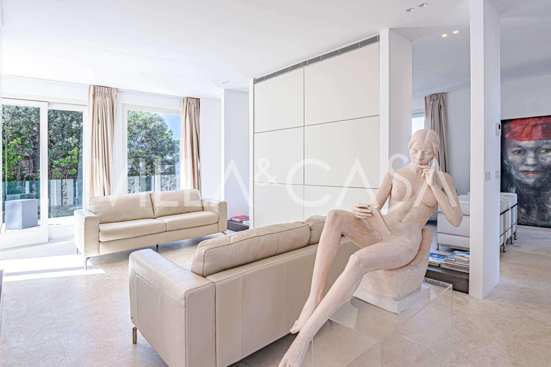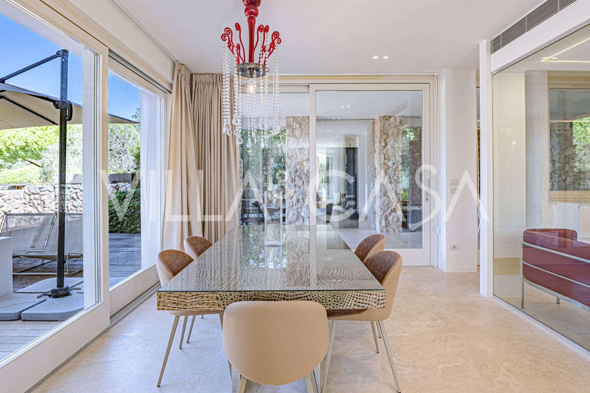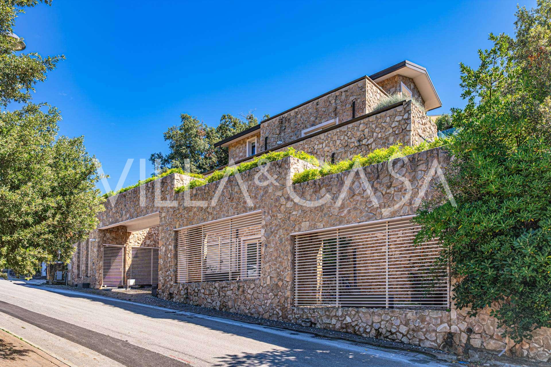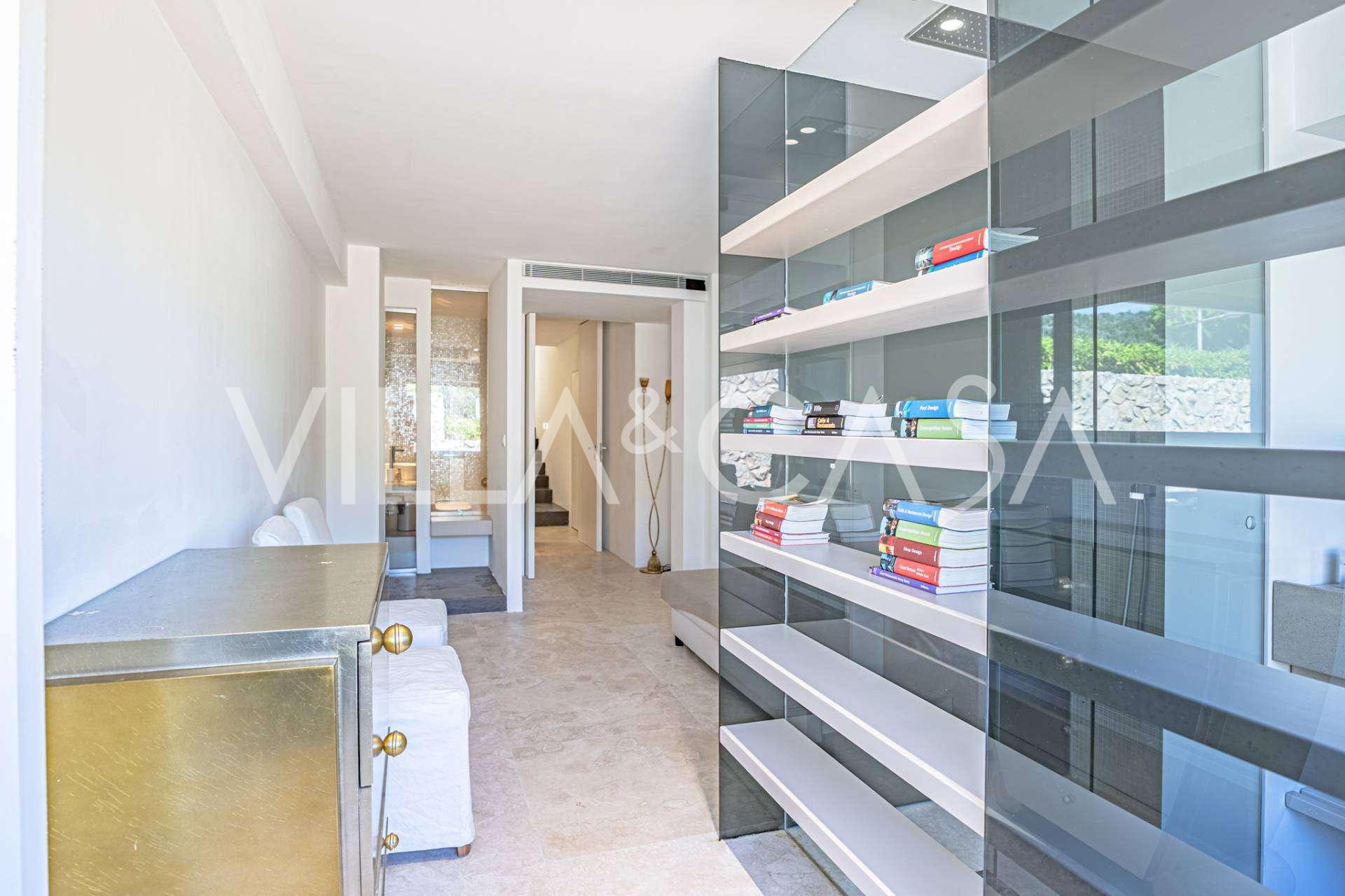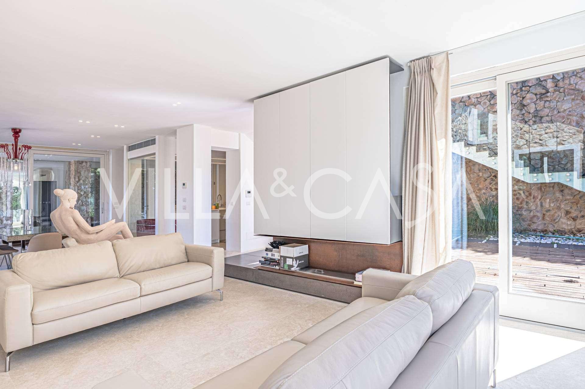 Recentemente completamente rinnovata e distribuita su quattro livelli, collegati da un ascensore interno, la residenza dimostra una rara eleganza e una funzionalità raffinata. L'architettura con le sue linee impeccabili e le facciate in vetro crea un'armonia tra gli spazi interni e le affascinanti terrazze. La villa è circondata da un curato giardino terrazzato di 500 m², offrendo ai proprietari privacy e tranquillità, dove si nasconde anche un'elegante area relax con piscina.
