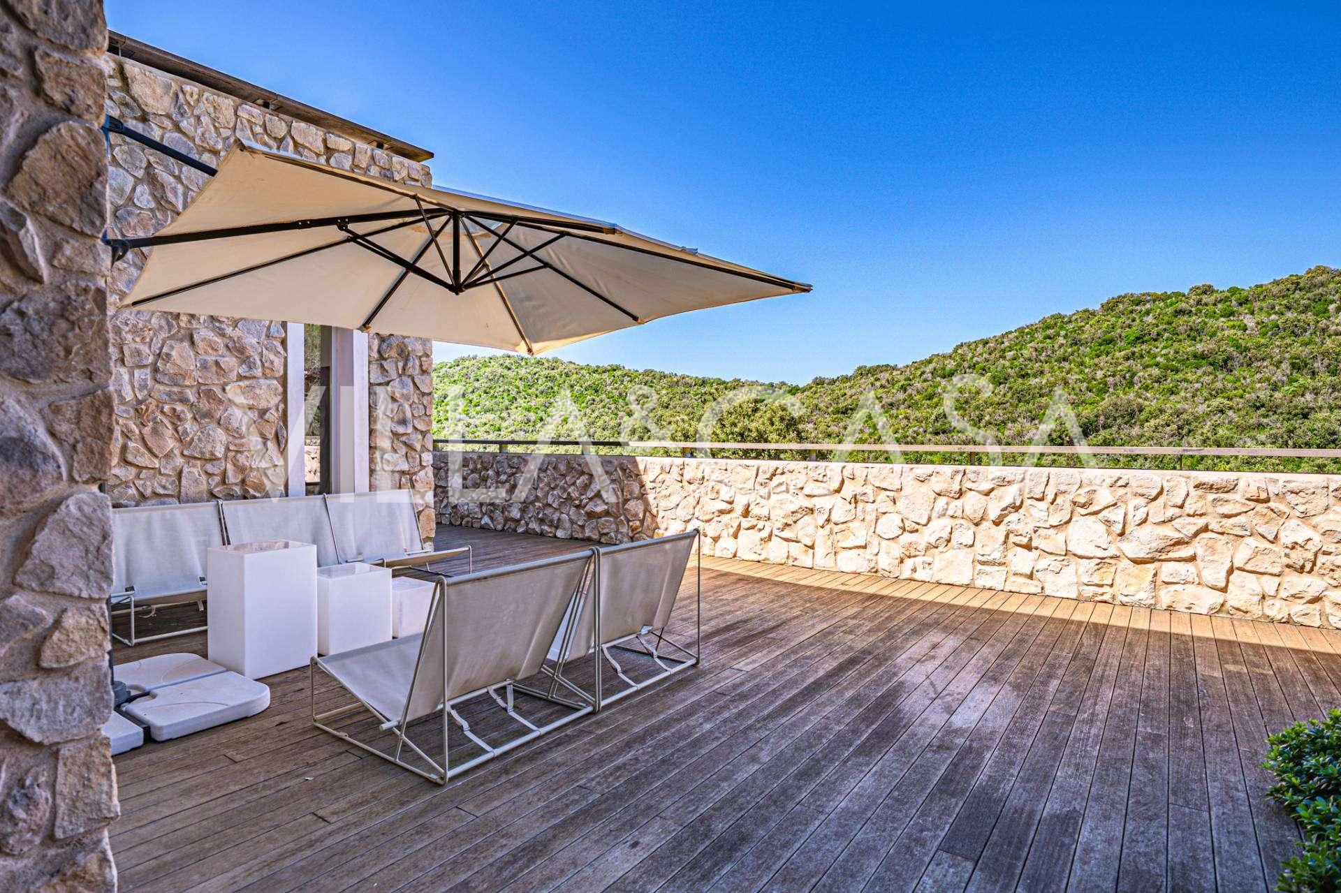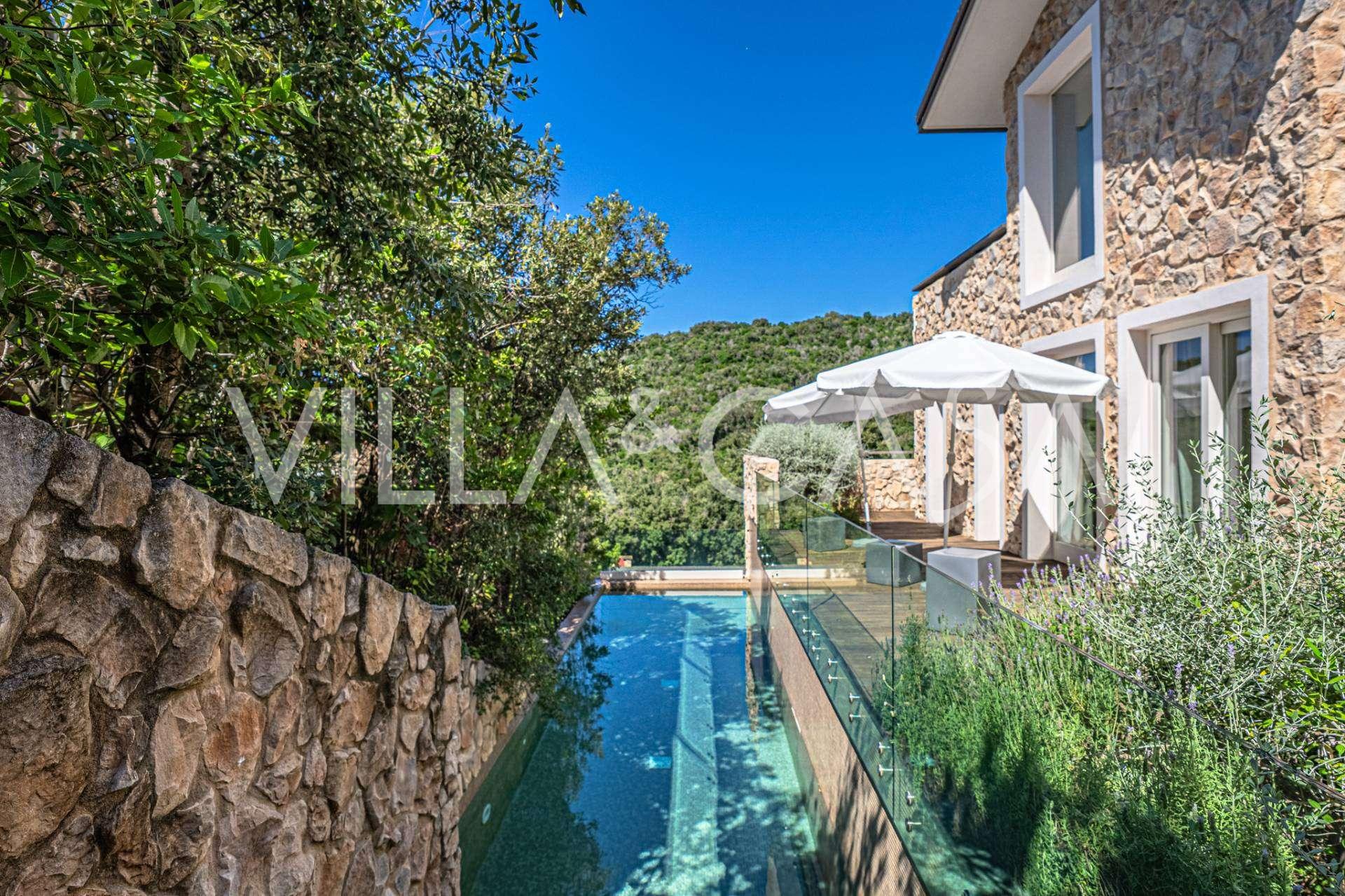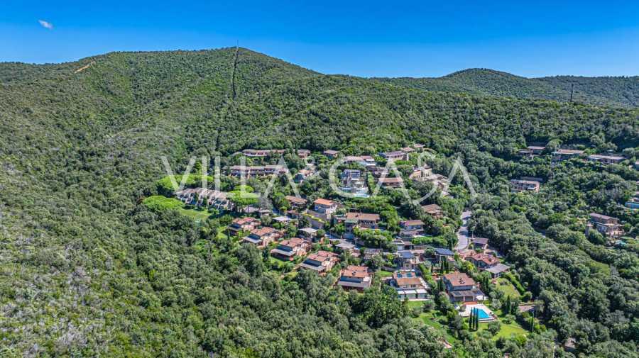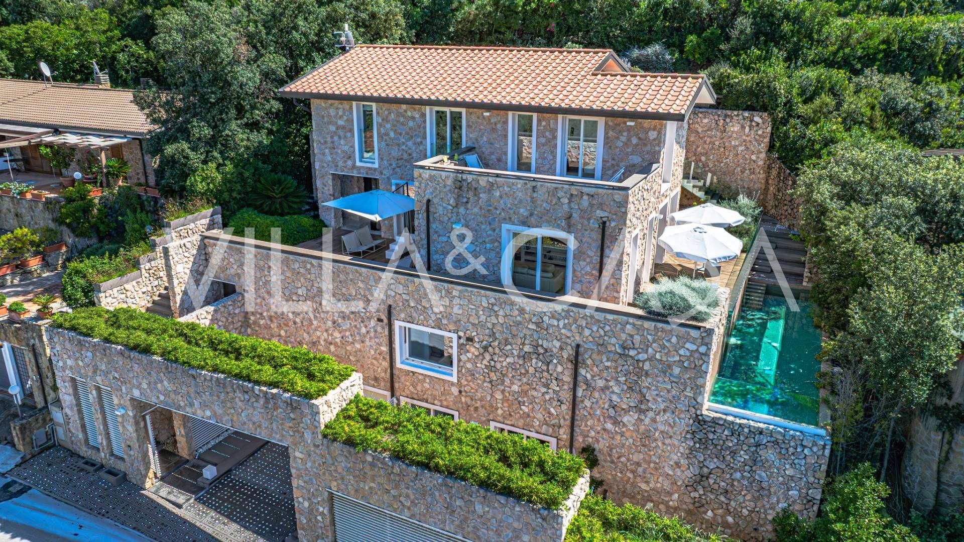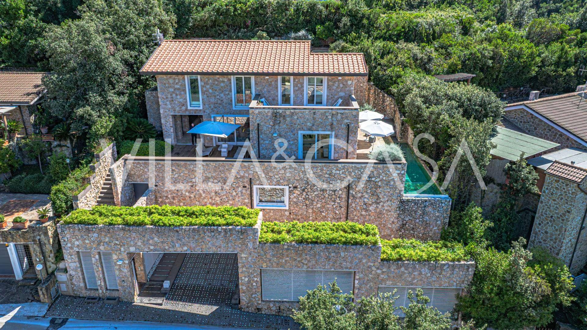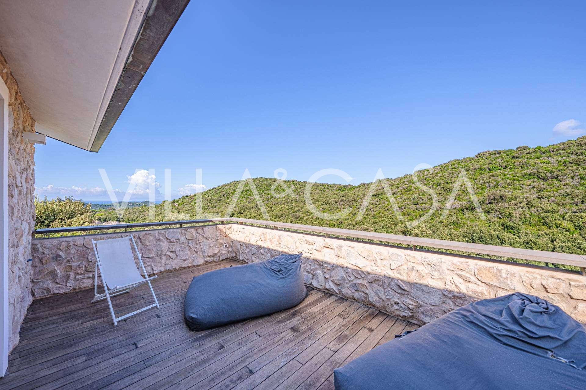 Sulle prime colline di Punta Ala, da cui si apre una vista impressionante sulla costa di Castiglione della Pescaia con le sue sfumature di smeraldo e le morbide linee dei paesaggi toscani, si erge maestosamente questa straordinaria villa di lusso, che riflette lo stile contemporaneo e il massimo comfort.