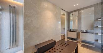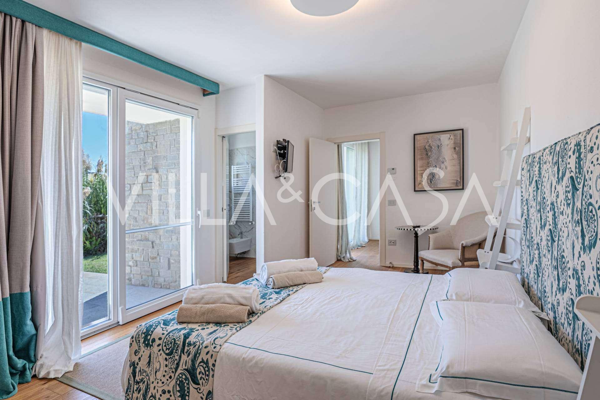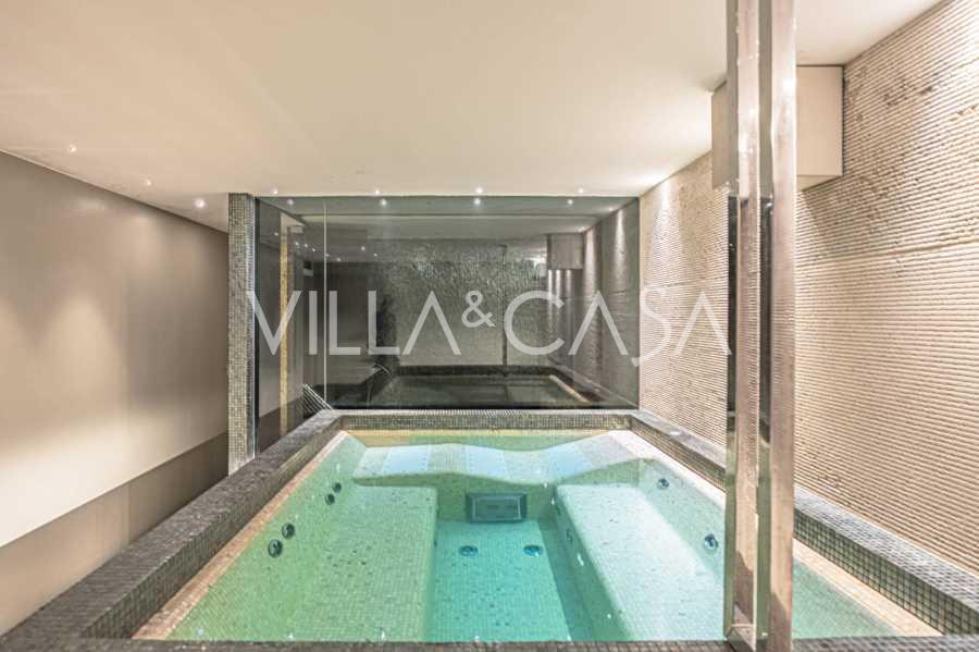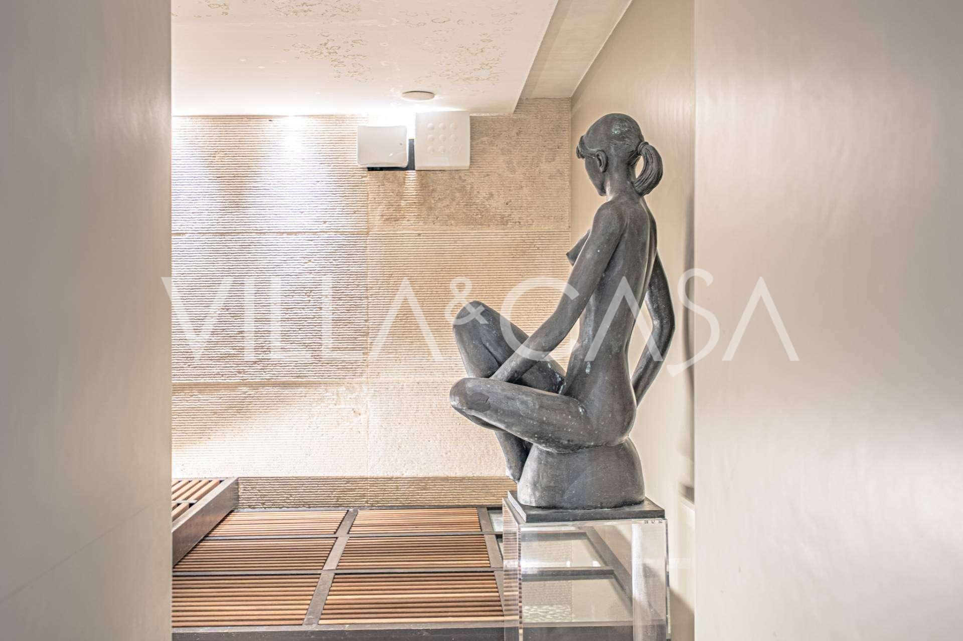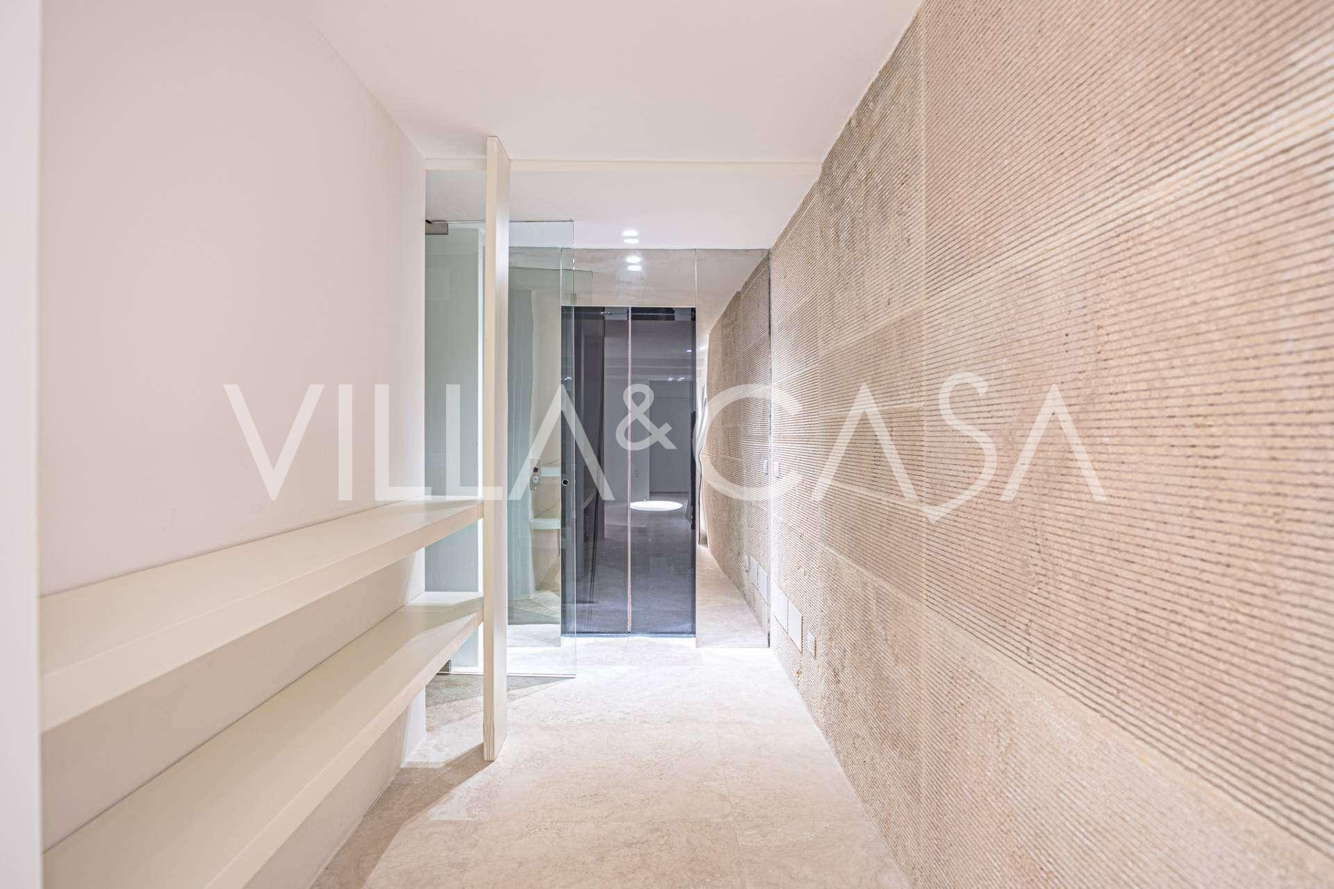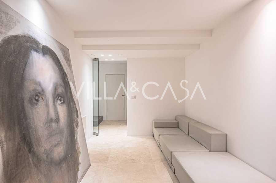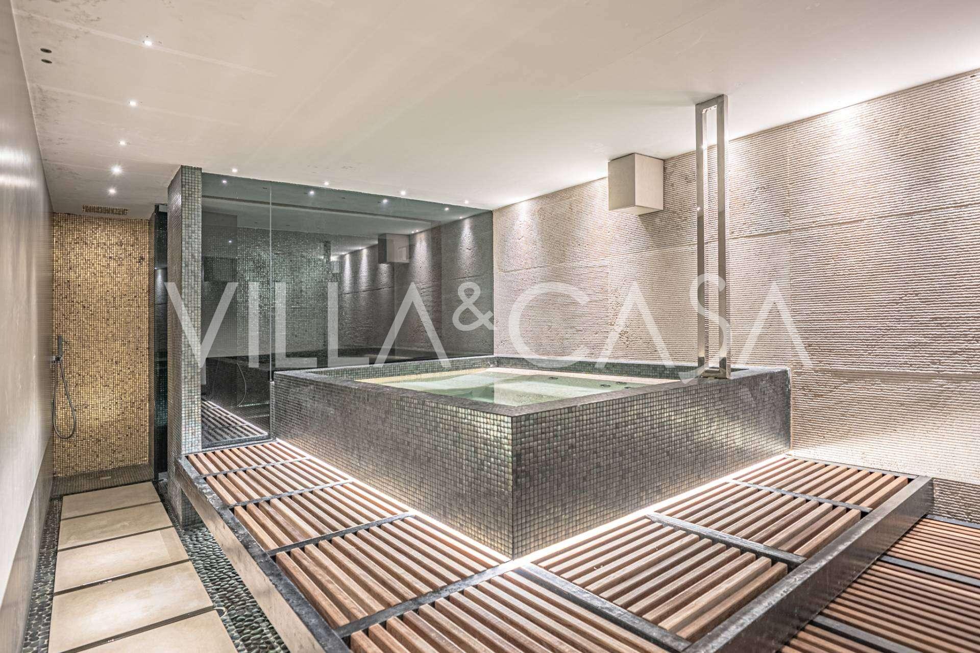A livello del giardino c'è un appartamento separato con ingresso indipendente, ideale per ospiti o personale. Nella parte seminterrata della villa si trova una magnifica area wellness: una spaziosa vasca idromassaggio, un hammam turco, una stanza privata per il relax, oltre a una camera da letto aggiuntiva con bagno en-suite e locali di servizio, compresa una cantina.