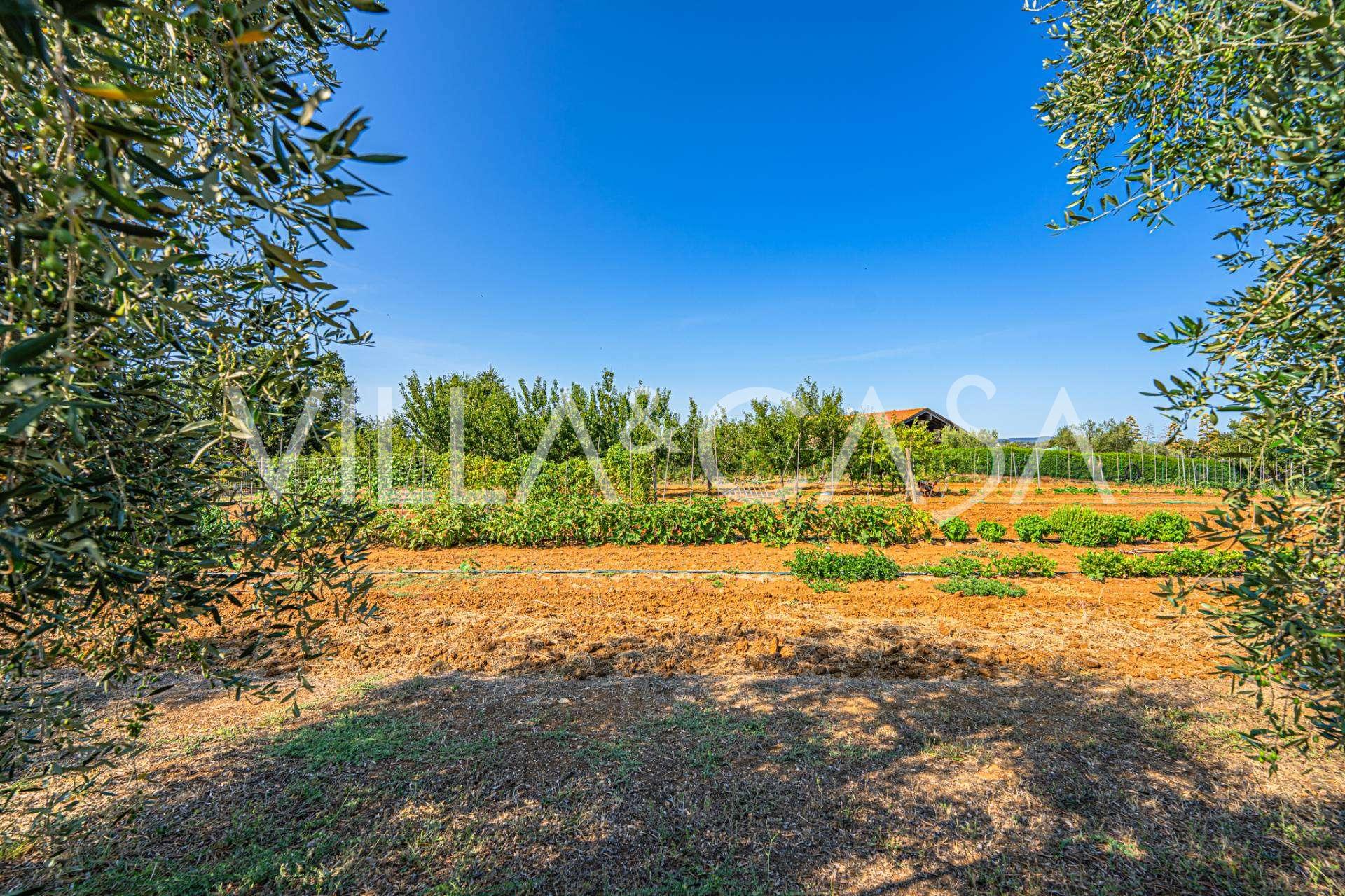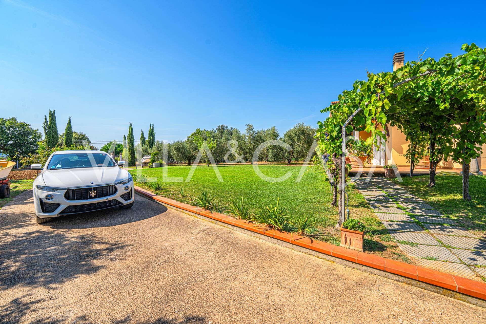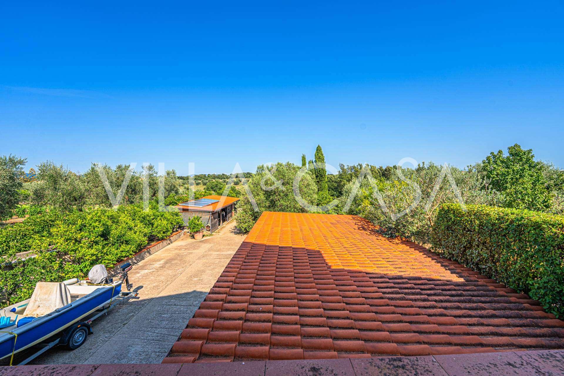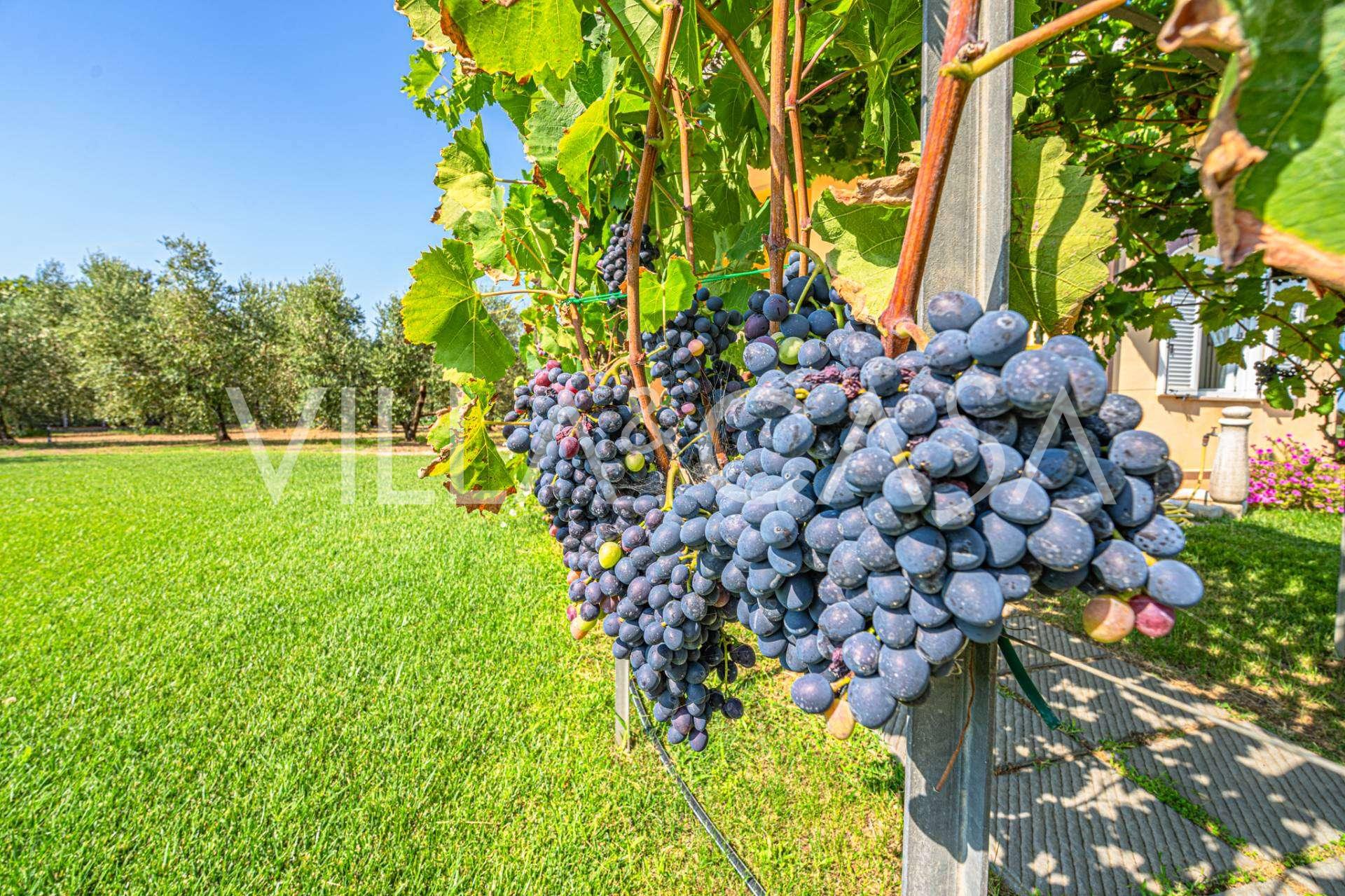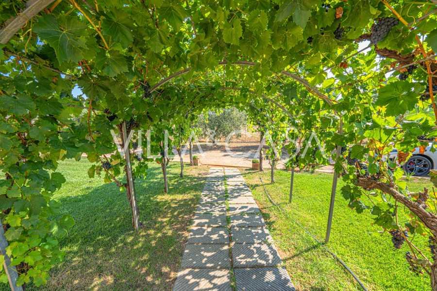 La villa è in ottime condizioni, circondata da un terreno privato di 13.000 m². Sul terreno si trova un giardino curato con ulivi, vigneto, alberi da frutto e un orto, che creano un'atmosfera di comfort e armonia con la natura.