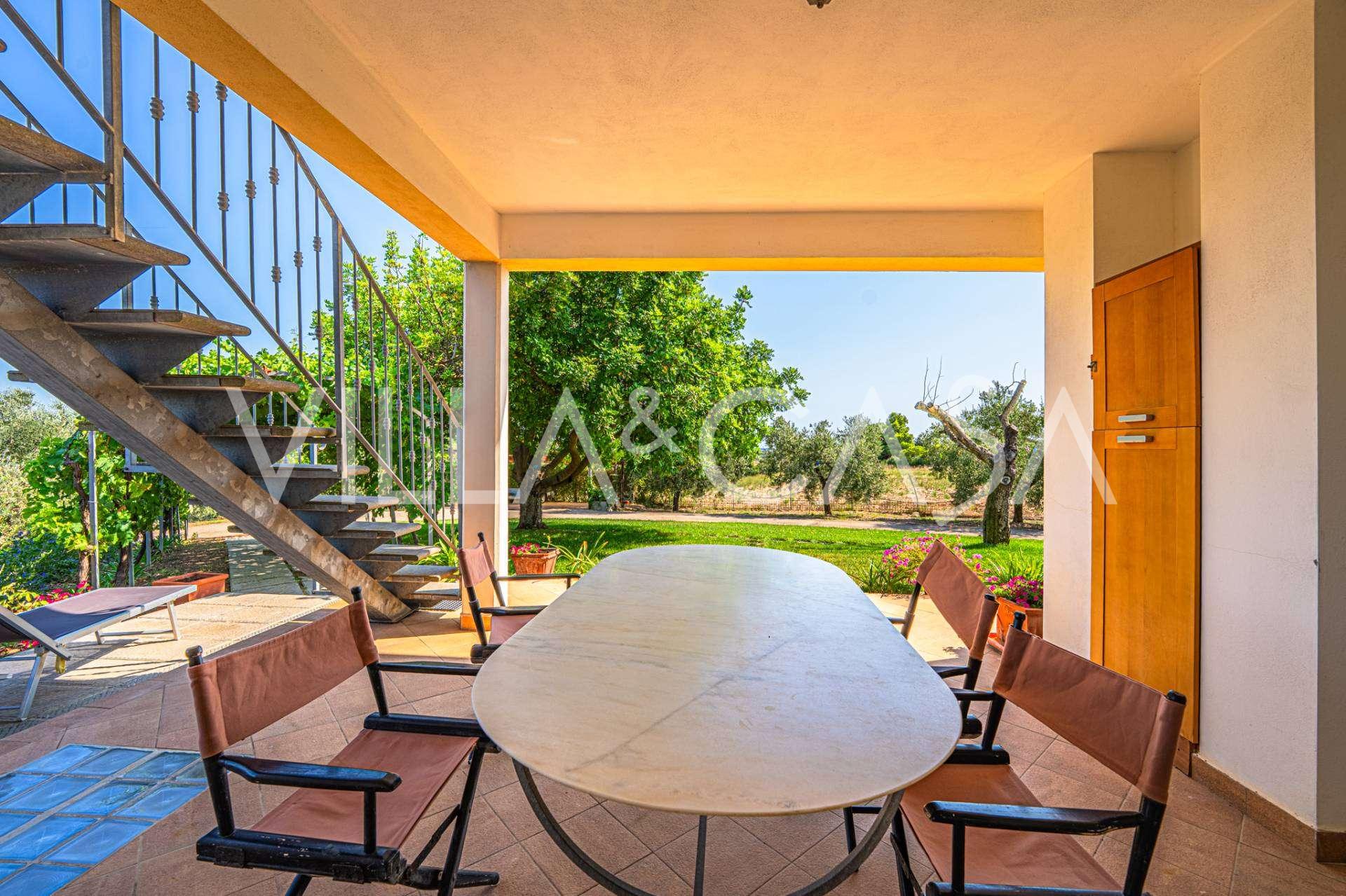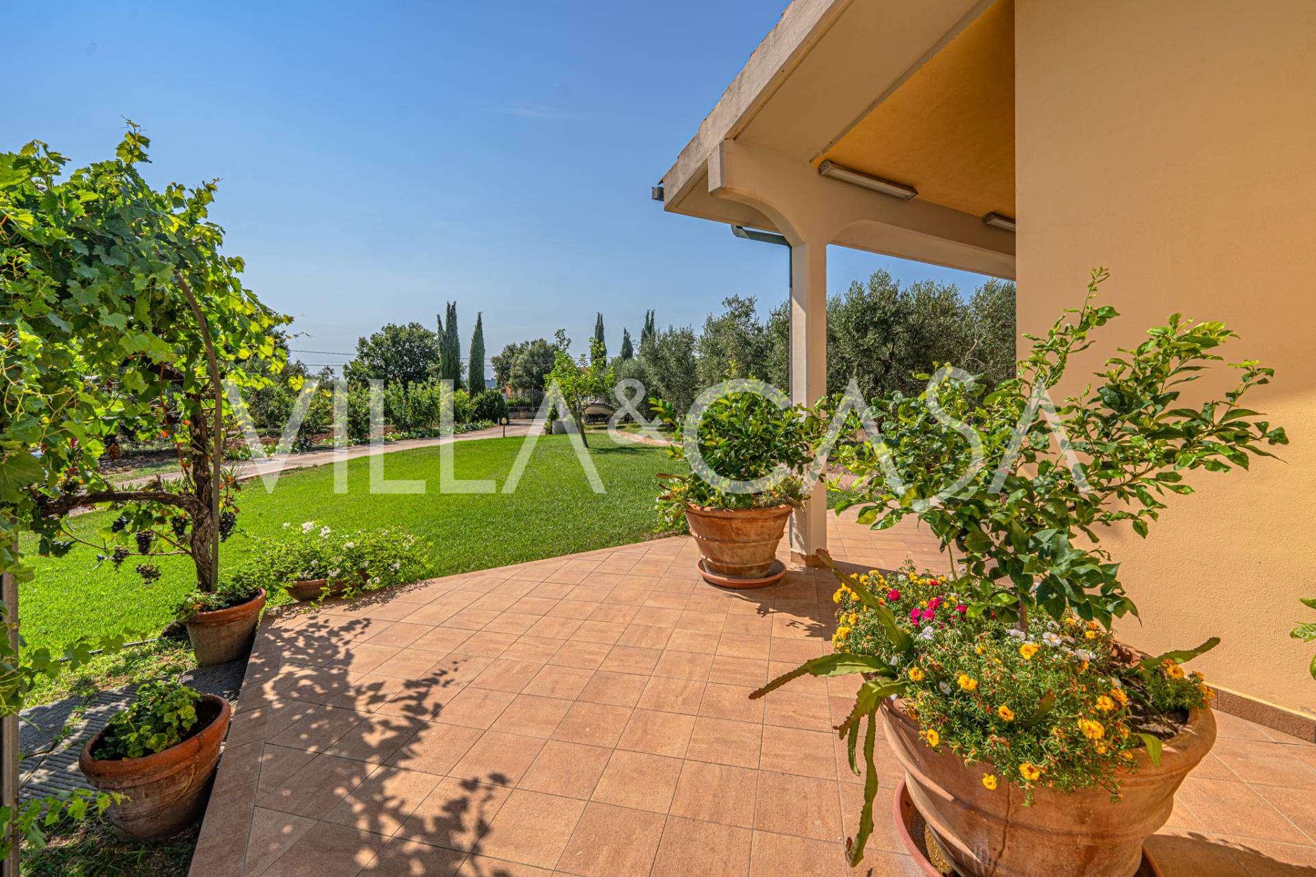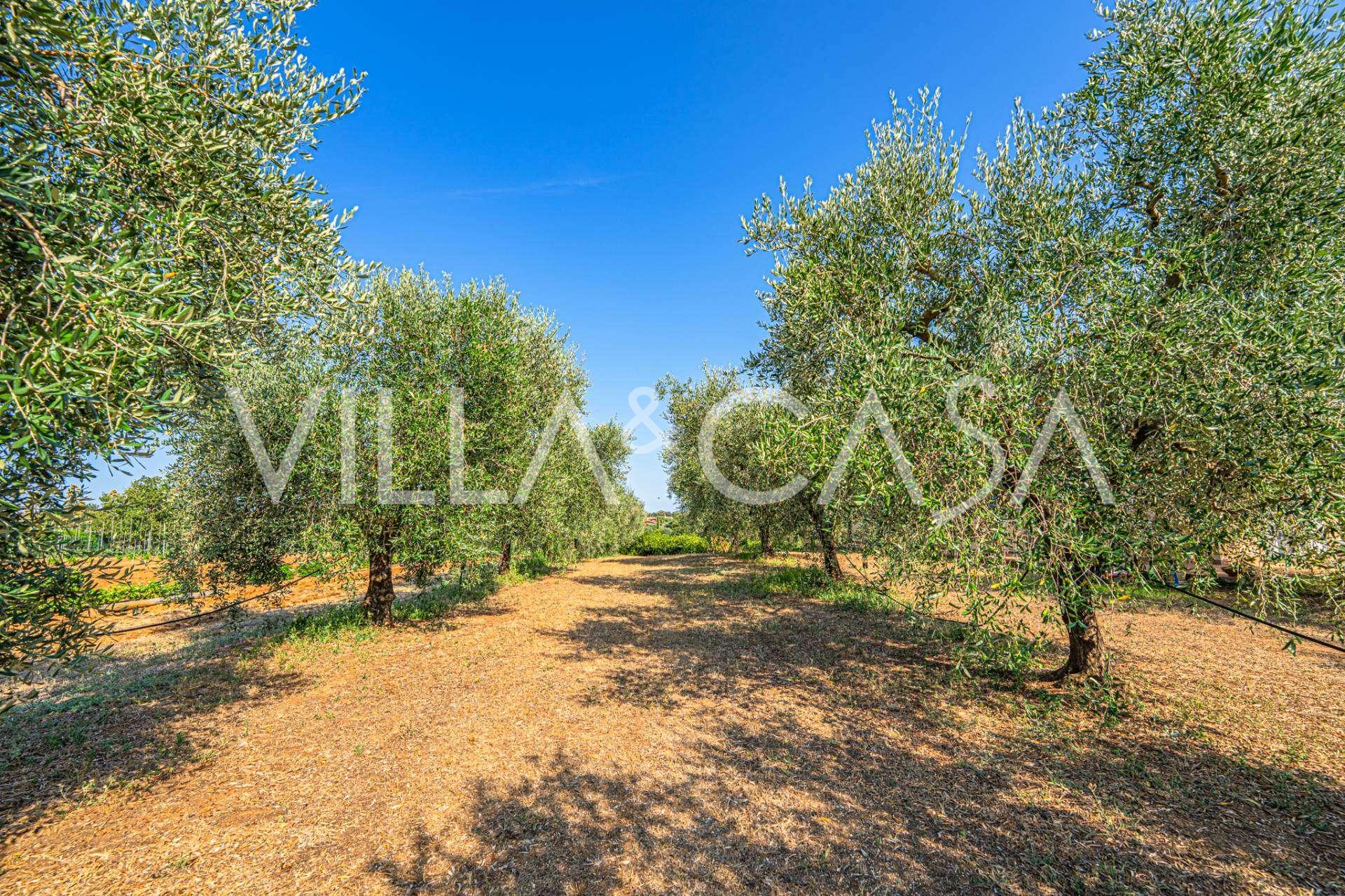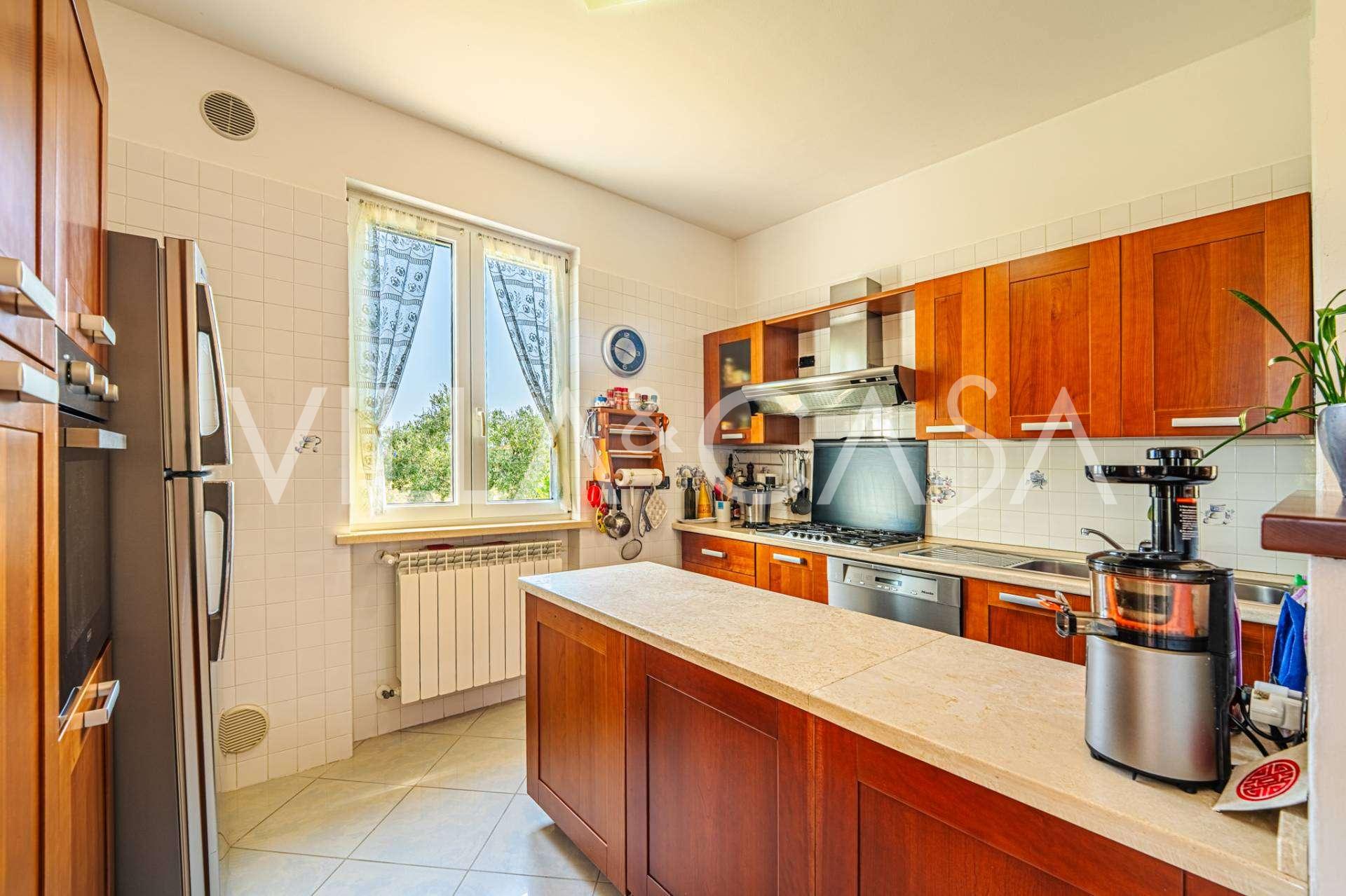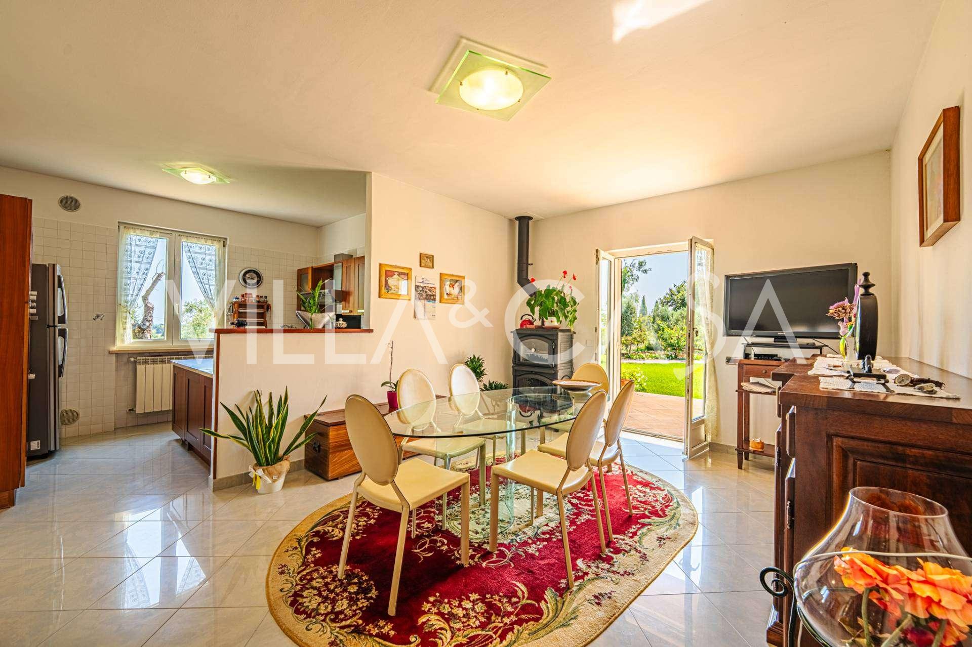 La villa è in ottime condizioni, circondata da un terreno privato di 13.000 m². Sul terreno si trova un giardino curato con ulivi, vigneto, alberi da frutto e un orto, che creano un'atmosfera di comfort e armonia con la natura.