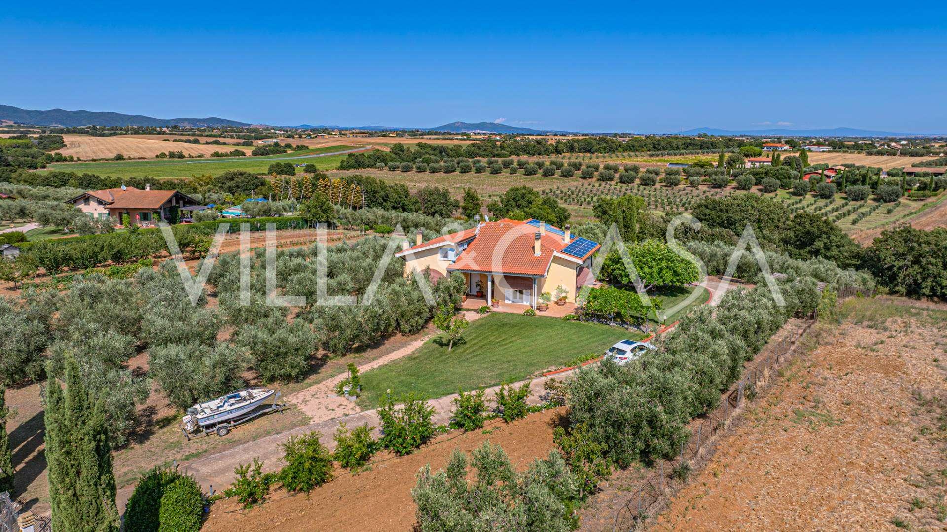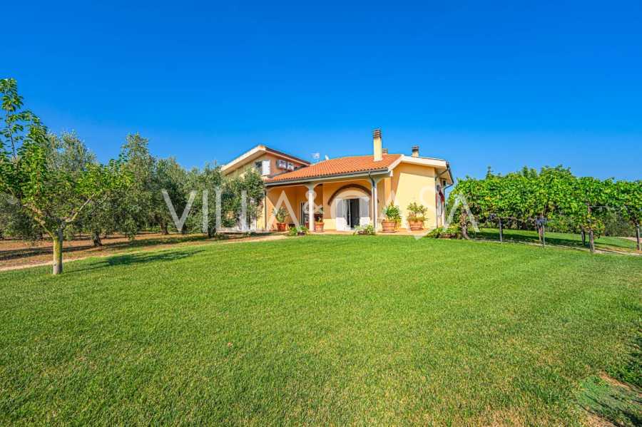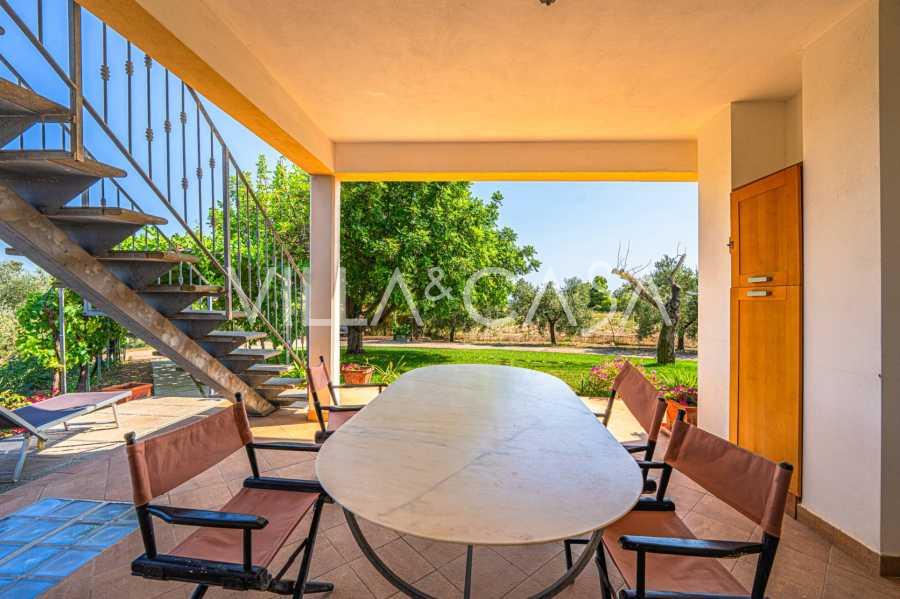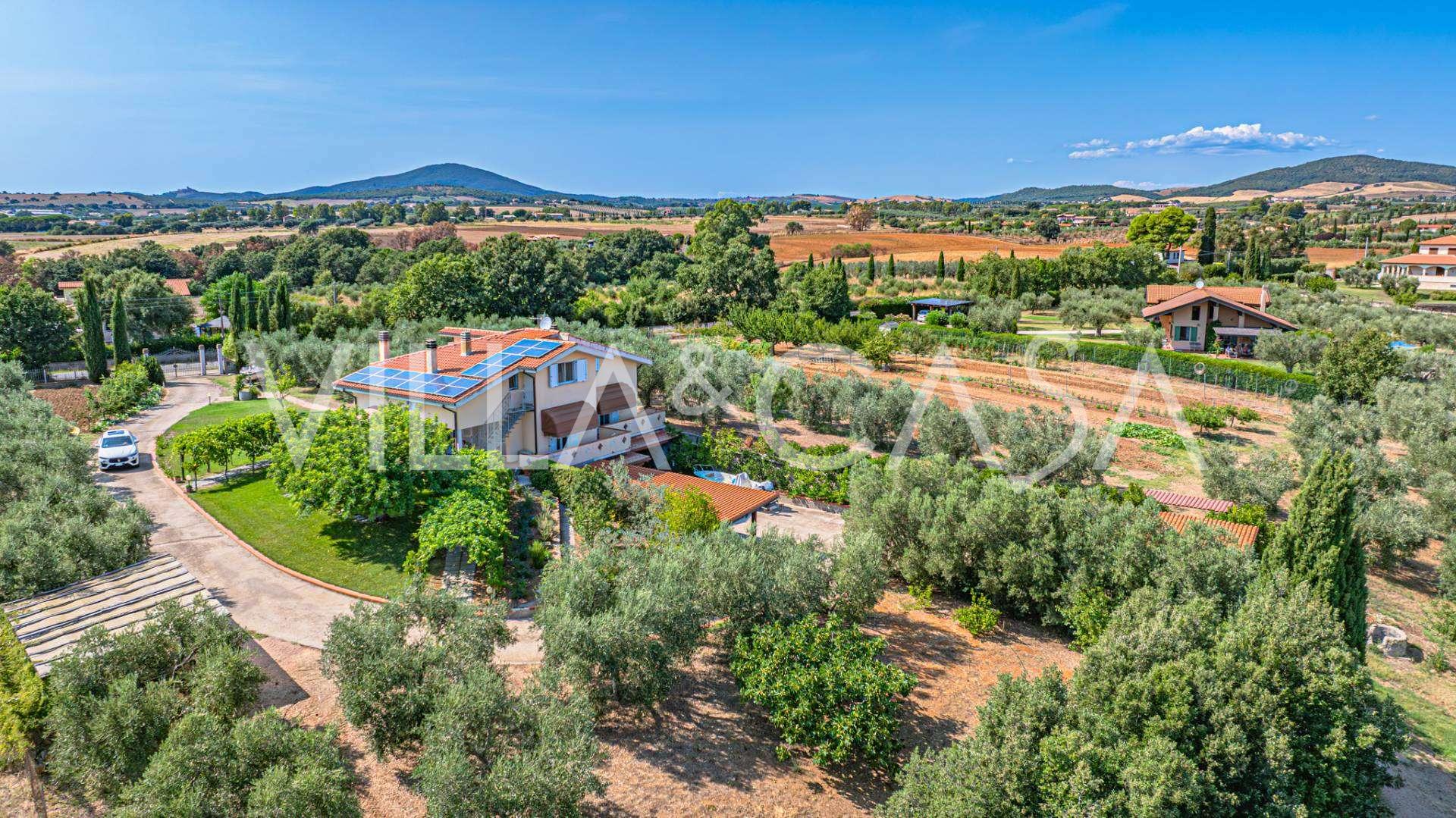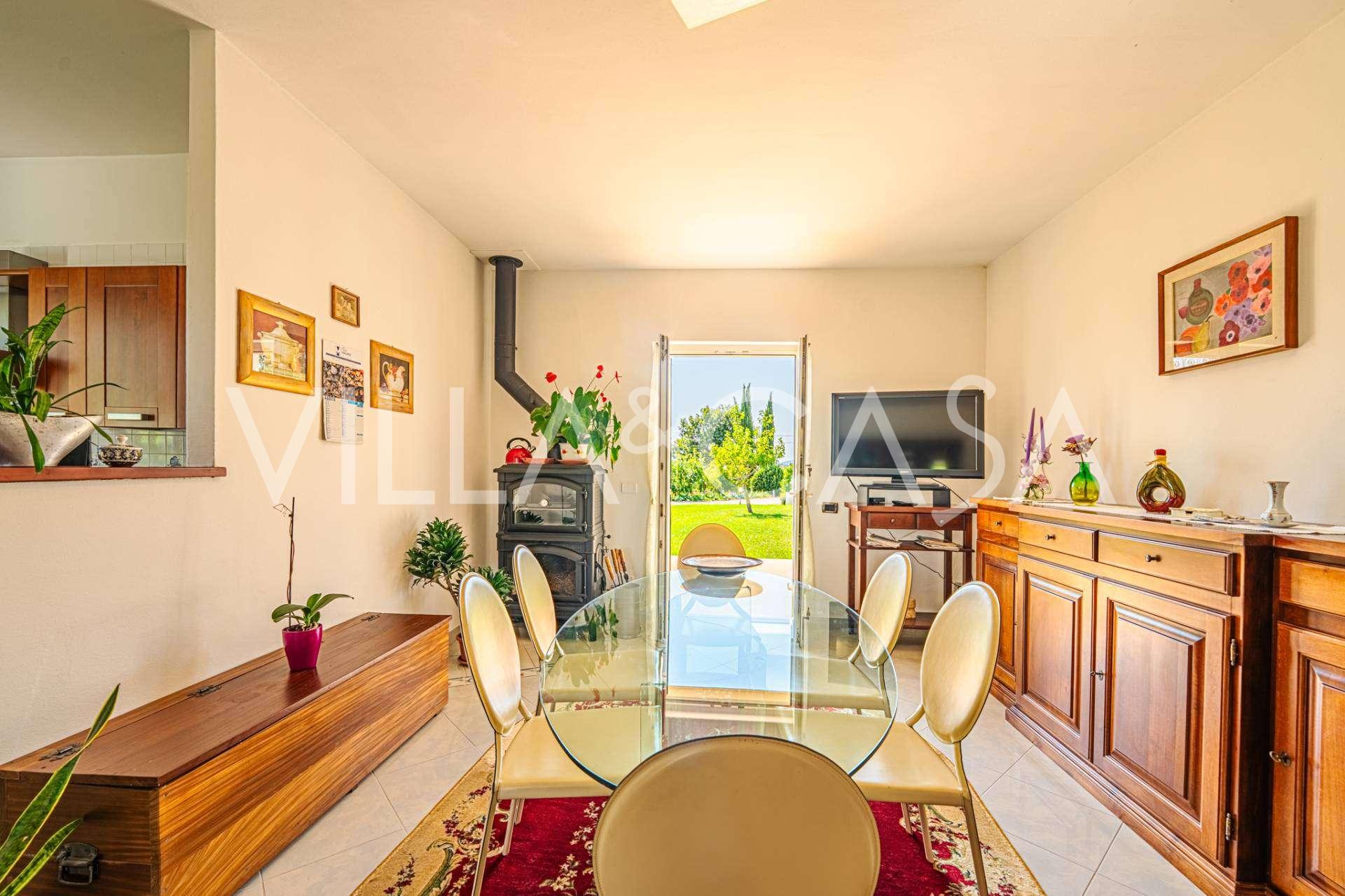 La villa è in ottime condizioni, circondata da un terreno privato di 13.000 m². Sul terreno si trova un giardino curato con ulivi, vigneto, alberi da frutto e un orto, che creano un'atmosfera di comfort e armonia con la natura.
